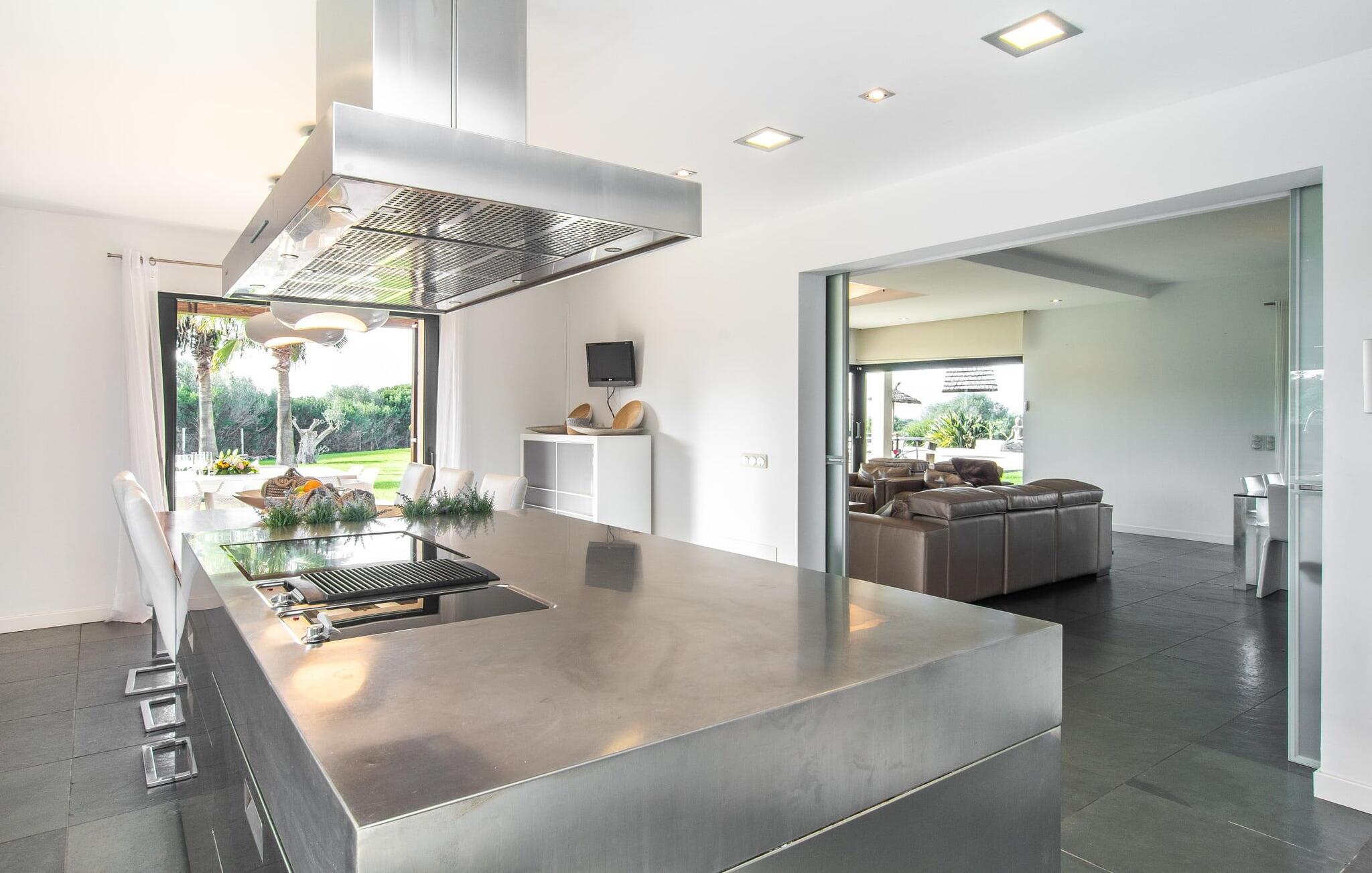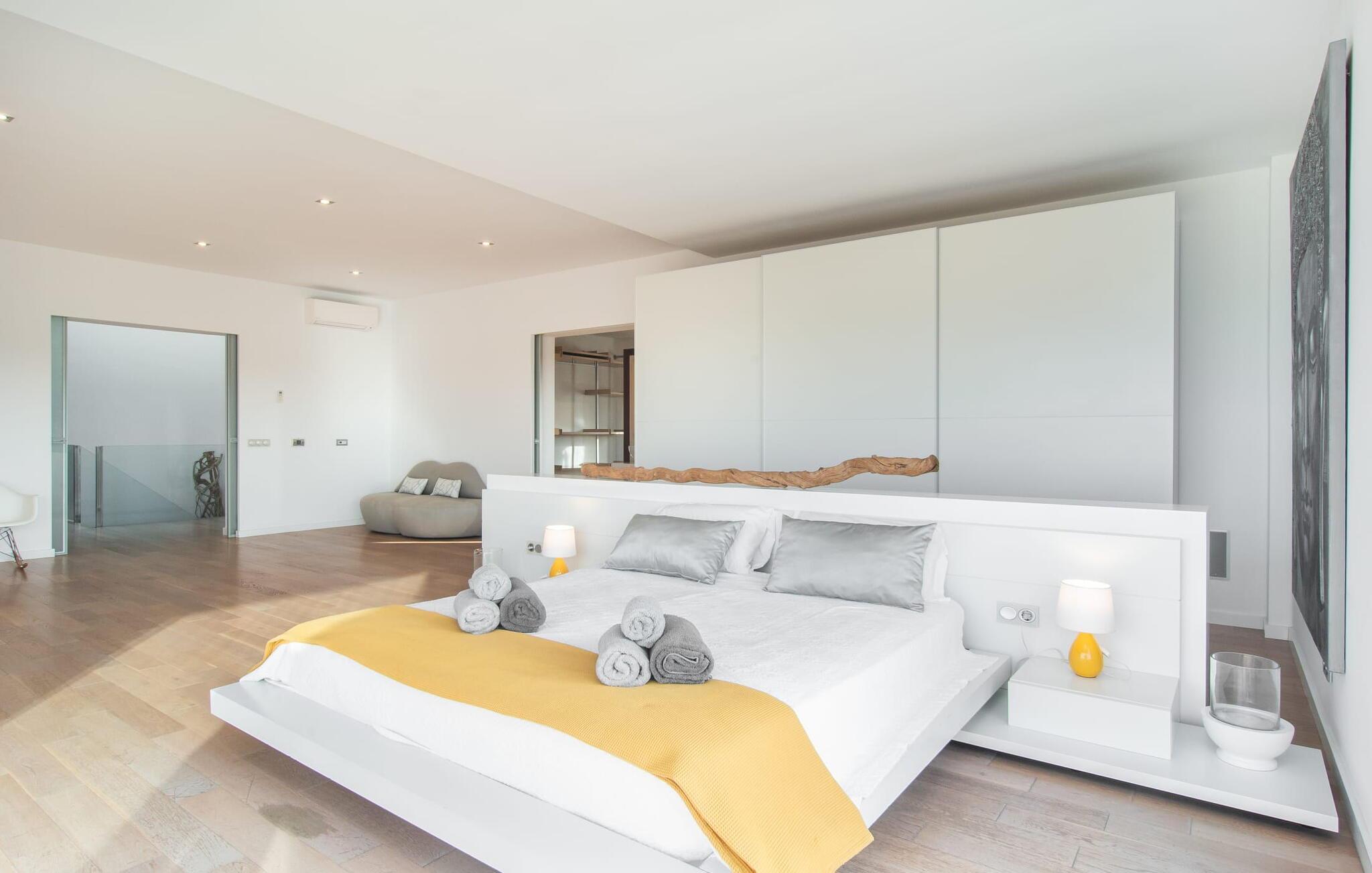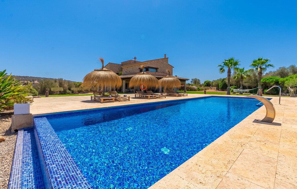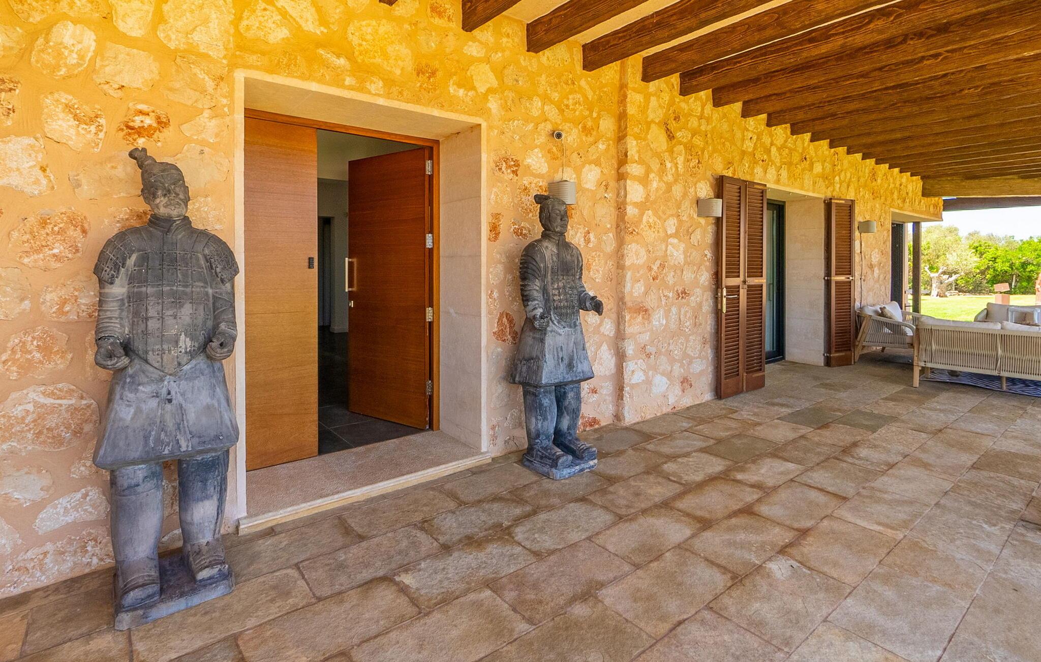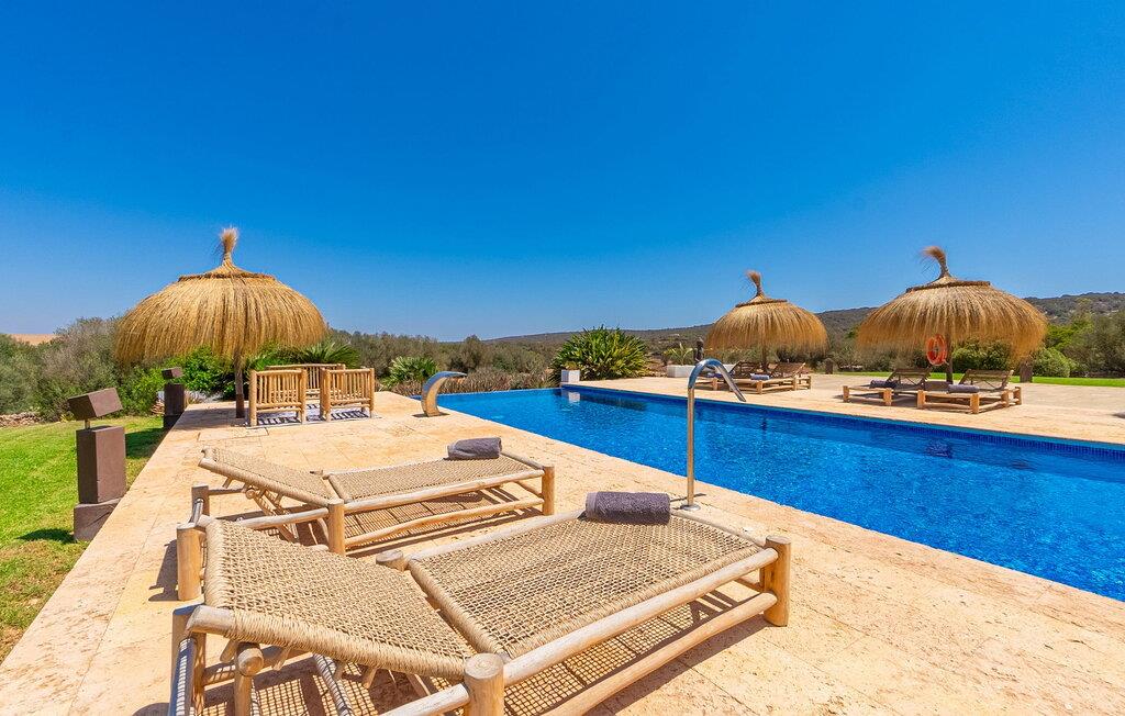 Stuehuset "Flor de Sal a Sa Canoveta" er perfekt til feriegæster med designkrav. Den rummelige ejendom er en drømmeagtig middelhavsoase fuld af palmer, frugt- og oliventræer, rummelige græsplæner og fænomenal udsigt. Midt i haven ligger den klorfri pool i XL-format og afslappet infinity-stil. En udendørs bruser med varmt vand og en hydromassagebruser i poolen fuldender luksusen. De komfortable designer liggestole på den omkringliggende solterrasse tilbyder også maksimal afslapning. Både unge og gamle kan nyde et socialt samvær ved bordtennisbordet eller på de overdækkede terrasser ved huset. Der kan grillen tilberedt på murstensgrillen nydes til middag. Det højkvalitets loungehjørne på den anden overdækkede terrasse giver jer mulighed for at fejre Mallorcas livskvalitet langt ud på natten. Mens bygningen fremstår typisk mallorcansk-rustik med dens klassiske stenbrud, vil du, når I træder ind i huset, blive overrasket af et strejf af luksus med en betagende smuk indretning i et puristisk design. De store gulv-til-loft vinduer lader den rummelige og åbne opholds- og spiseafdeling skinne. Downlights skaber den rigtige atmosfære i dette smarte bondehus. Møblerne af høj kvalitet, den gennemgående hvide stil og værelsernes rummelighed perfektionerer den postmoderne boligatmosfære fuld af ro. Det fuldt udstyrede køkken-alrum med ekstra siddepladser lader intet tilbage at ønske. Når I ser de klimatiserede soveværelser, hver for to personer, vil I opdage rummelige værelser med direkte adgang til terrassen eller balkonen, nogle med eget badeværelse, i eksklusivt design. I dette skønne feriehus for familier og venner finder børn og unge deres egen plads i fjerde og femte soveværelse med to enkeltsenge. "Flor de Sal a Sa Canoveta" står for mallorcanske ferier i perfektion og lethed, som I forventer hele året rundt. Luksusgårdhuset "Flor de Sal a Sa Canoveta" imponerer med en perfekt have med en klorfri XL-pool og fremragende møblerede terrasser. Den spektakulære smukke ejendom ligger i den sydlige del af øen mellem Campos og Colònia de Sant Père. I de omkringliggende landsbyer kan I shoppe eller besøge gode restauranter. Drømmestranden Es Trenc ligger kun 9 minutter væk i bil. Bemærk venligst, at denne ejendom ikke accepterer ungdomsgrupper eller polterabender. En ungdomsgruppe på denne ejendom består af personer på 25 år eller derunder. Book ikke denne ejendom, hvis I er en ungdomsgruppe eller polterabend, da jeres reservation vil blive afvist, når den er booket, hvilket også kan være tilfældet ved ankomst til ejendommen eller under jeres ophold, og I vil ikke modtage en refusion