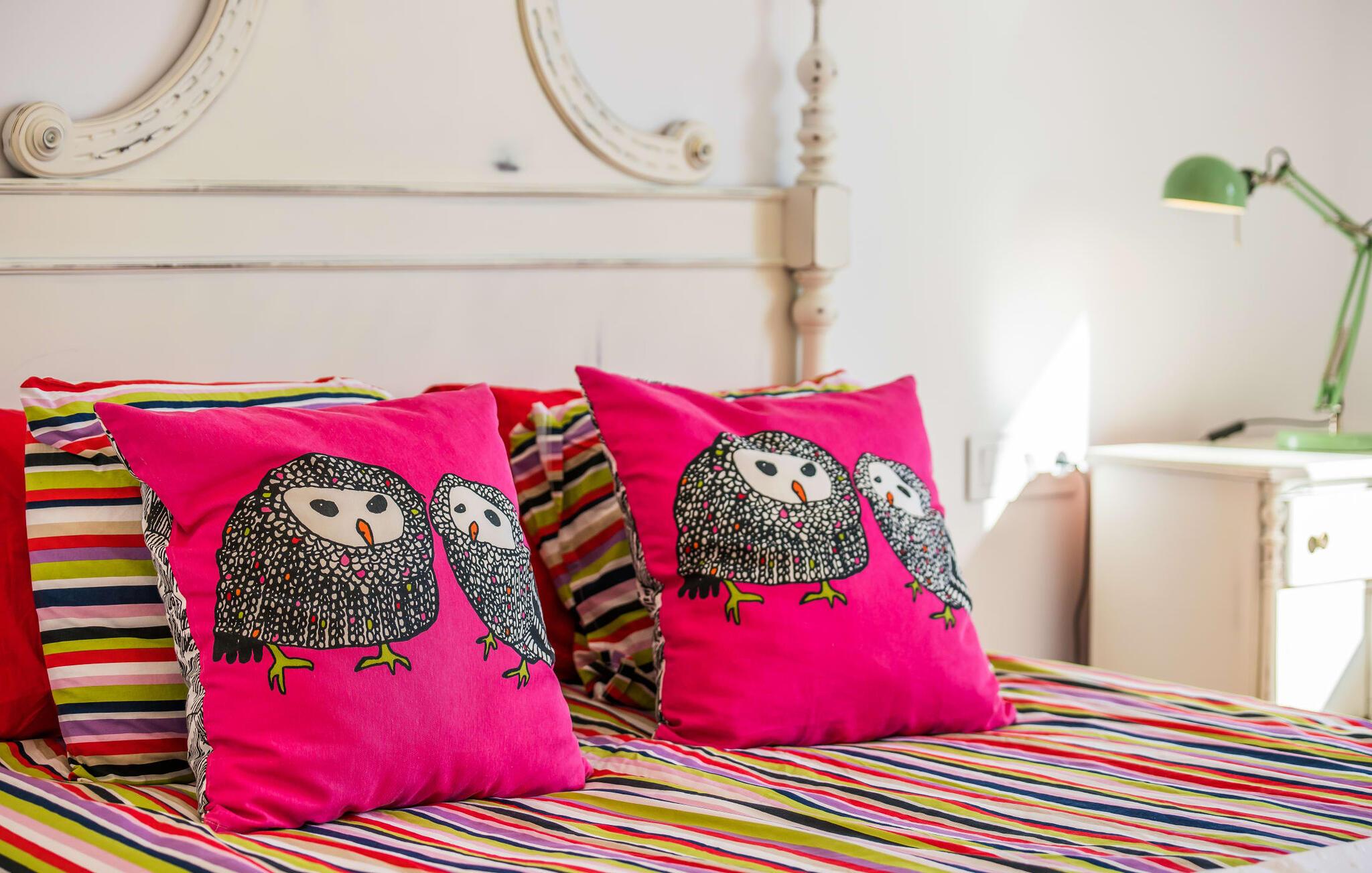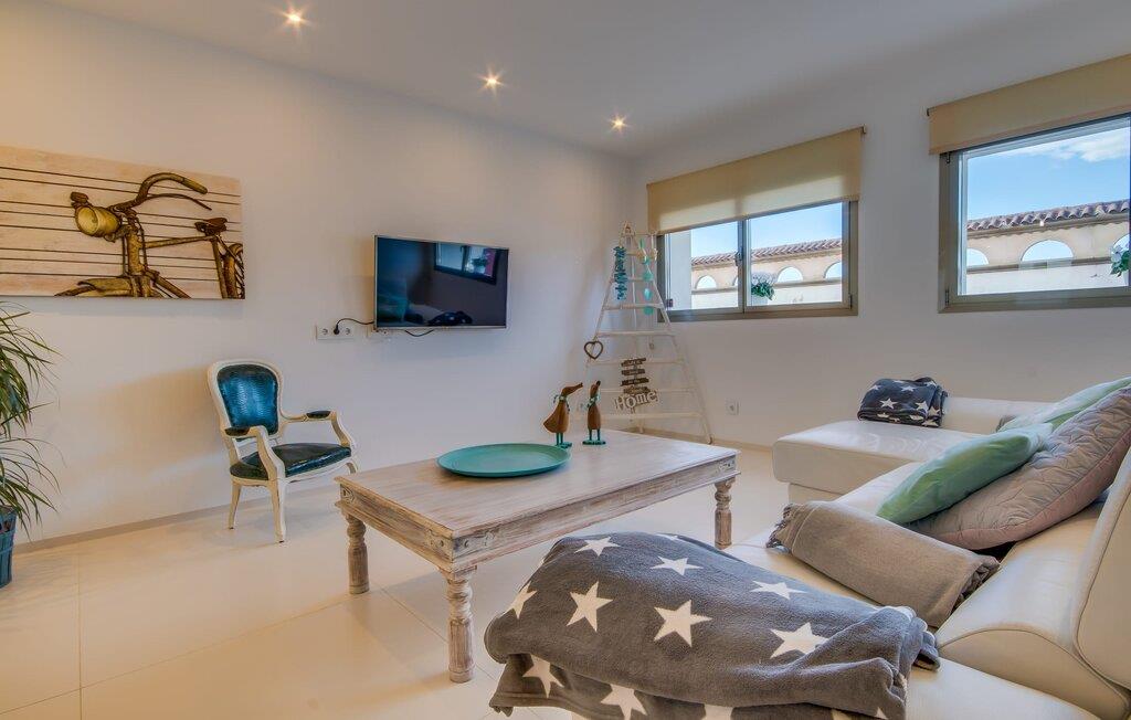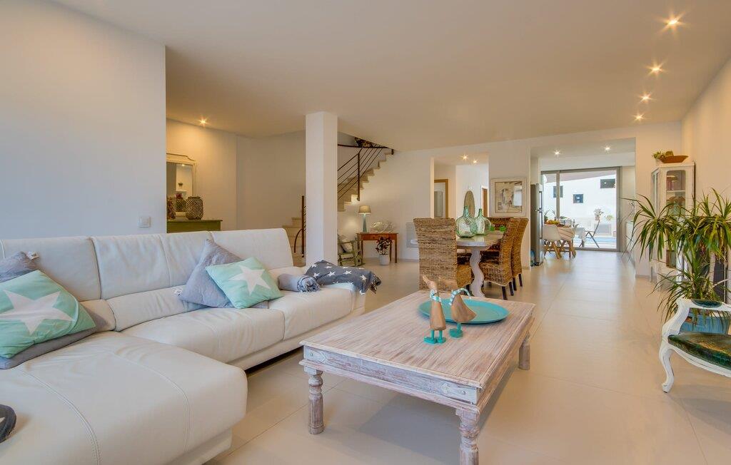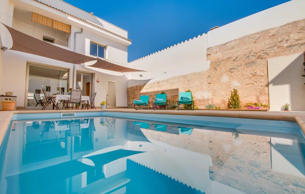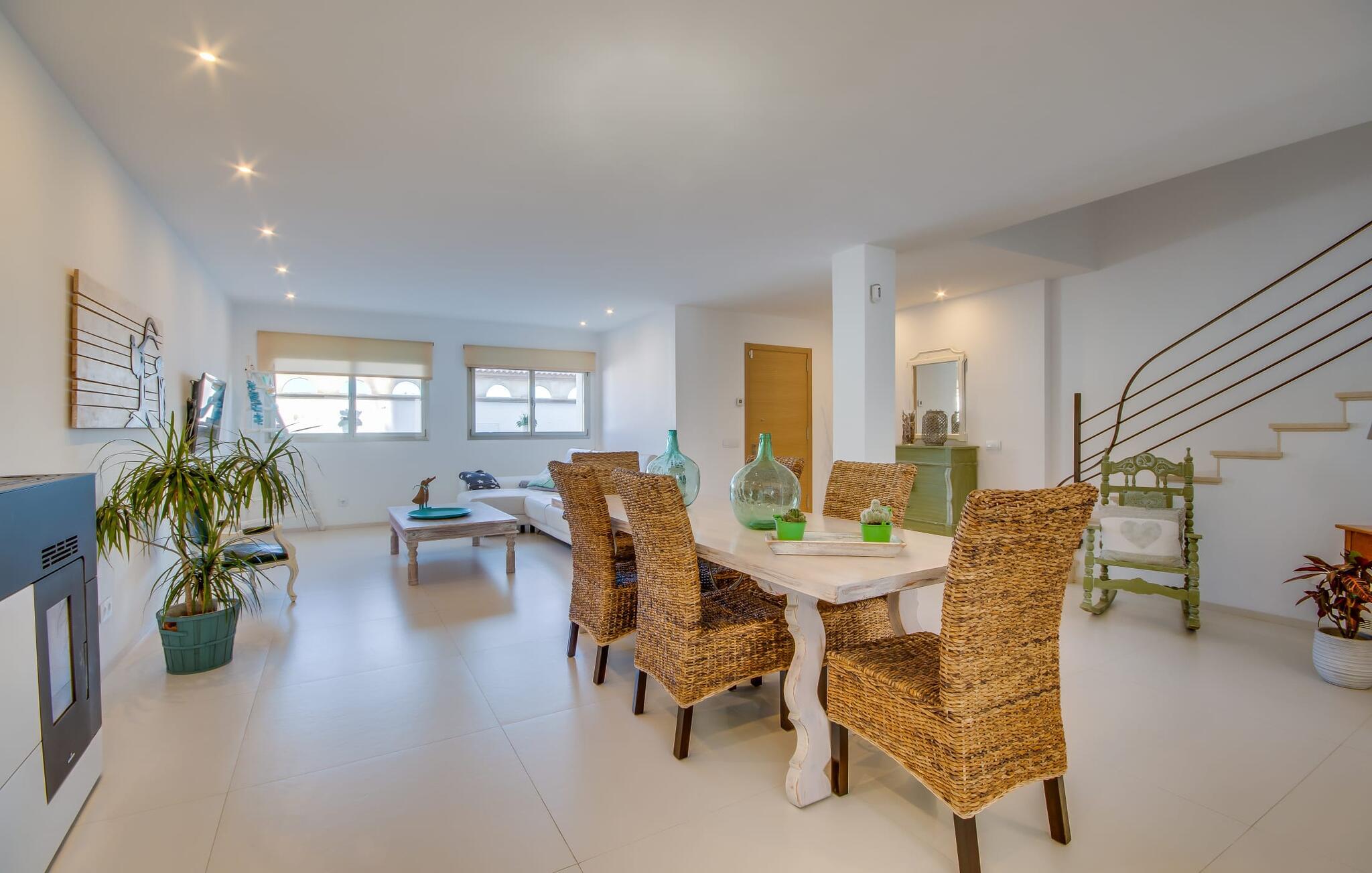 Kunne I tænke jer at holde ferie på Mallorca, men er hverken begejstret for hoteller eller det rolige landliv i en afsondret villa? Så har vi det helt rigtige midlertidige hjem til jer med det smukke rækkehus "Foners Mallorquins"! Dette lyse og hvide drømmehus ligger midt i den rustikke, charmerende landsby Muro på den nordlige del af Mallorca. Efter at have kørt fra lufthavnen kan I parkere jeres lejebil direkte på gaden ved huset og derefter fordybe jer i øens autentiske stress og jag. Det velholdte rækkehus er ikke kun et perfekt udgangspunkt, men også et vidunderligt afslappende tilflugtssted. På terrassen, som er delvist overdækket med skyggefulde markiser, finder I spisebord og stole samt indbydende liggestole. Perfekt til solbadning, men også til at finde et behageligt skyggefuldt sted at læse en god bog. I kan til enhver tid tage en forfriskende svømmetur i jeres afsondrede pool, skjult for naboernes udsigt og indrammet af en stilfuld brolagt terrasse med et puristisk design og rustik naturstensvæg, udendørs bruser og kærligt dekoreret plantebed. "Foners Mallorquins" er også en sand perle indefra. Takket være de store vinduespartier og det moderne lyssystem med mange små, integrerede loftslamper er alt lyst på alle tider af døgnet Den meget muntre, velholdte og stilrene atmosfære er blandt andet takket være den hyggelige interiør, som er præget af et design med stor kærlighed til detaljer og en særlig flair. Stueetagen er meget åben: Store glasdøre fører fra terrassen direkte ind i det stilfulde køkken, som er udstyret med førsteklasses hårde hvidevarer. Køkkenet har et stort spisebord og mange siddemuligheder. Om morgenen kan I få en afslappet morgenmad; Senere på dagen kan I tilberede kulinariske lækkerier til en udendørs middelhavsmiddag på terrassen. I kan også nyde jeres middag sammen i husets tilstødende opholds- og spiseområde. Der finder I endnu et stort bord med smukke kurvestole med et naturligt look - til at nyde overdådige måltider og udveksle gode historier. Blot et par skridt videre indbyder en lys hvid hyggelig sofa med talrige puder og tæpper jer til at tilbringe en hyggelig aften med at se tv. I finder også et smart badeværelse i stueetagen af "Foners Mallorquins". Når I er behageligt træt efter en lang, solrig dag, kan I bare gå forbi den smukke limegrønne vippe og op ad den elegante stentrappe. Soveværelserne er placeret i to etager og har en kærlig, individuel indretning - i hvidt, med farverige detaljer, der umiddelbart skaber en glad stemning. De smukke, delvist kunstfærdigt udskårne senge er et blikfang, og der er rummelige garderobeskabe i alle rum til jeres feriegarderobe. Det ene soveværelse, uden dør, er skjult på 3. sal i huset og kan nås direkte via trappen, mens de to andre soveværelser - hvoraf det ene har direkte udgang til en hyggelig lille altan - er i en sal med to soveværelser og meget moderne badeværelser med bruser i gulvniveau. "Foners Mallorquins" er et lysfyldt rækkehus midt i den rustikke landsby Muro på den nordlige del af øen - og tilbyder en masse privatliv. Takket være den centrale beliggenhed er alt i gåafstand - uanset om I vil shoppe eller besøge en af restauranterne. Men så snart I lukker jeres hoveddør, befinder I jer i jeres eget lille stykke paradis. I den private, afsondrede pool kan I forfriske jer i vidunderlig fred og ro, mens strande som C'an Picafort eller Alcúdia-bugten kun ligger omkring 14 km væk.