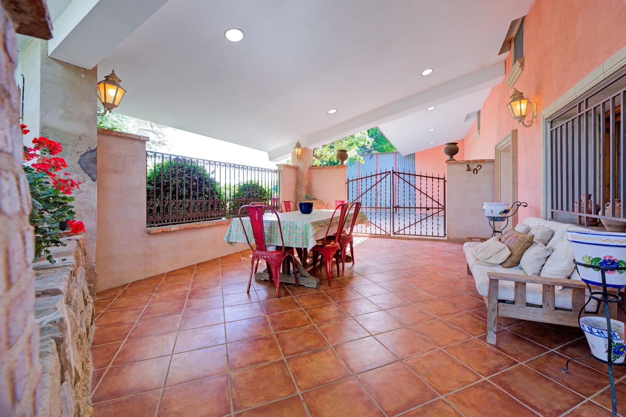 Stueetage: (Stue(Fjernsyn, spisebord, sofahjørne), Køkken(mikrobølgeovn, køle-fryseskab), badeværelse(bruser, håndvask, toilet), bruser, klimaanlæg, grill) På 1. etage: (soveværelse(dobbeltseng), soveværelse(enkeltseng, enkeltseng, enkeltseng), soveværelse med gennemgang(dobbeltsovesofa), klimaanlæg) pejs, kaffemaskine, opvaskemaskine , vaskemaskine, patio, varme, terrasse, have, havemøbler, solstole, parkering, swimmingpool(privat, opened from 1/2 Jun upto and including Aug), strygebræt