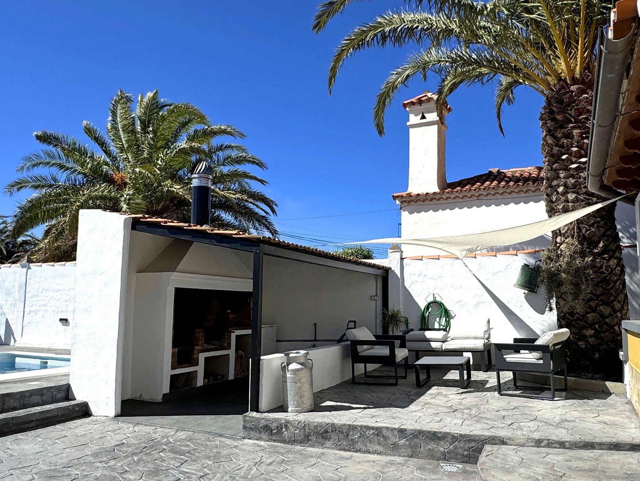 Der mittels Wärmepumpe beheizbare Pool und die großzügige Poolterrasse laden zum Entspannen ein. Zahlreiche Sonnenliegen und eine gemütliche Sitzgruppe mit Loungemöbeln unter einer Palme bieten perfekte Erholung im Freien.Der abgetrennte Außenbereich garantiert, dass Sie hier ungestört Ihren Urlaub genießen können. Der große Außengrill sorgt für unvergessliche Grillabende. Neben der Dusche für den Pool gibt es eine separate Toilette für diesen Bereich.