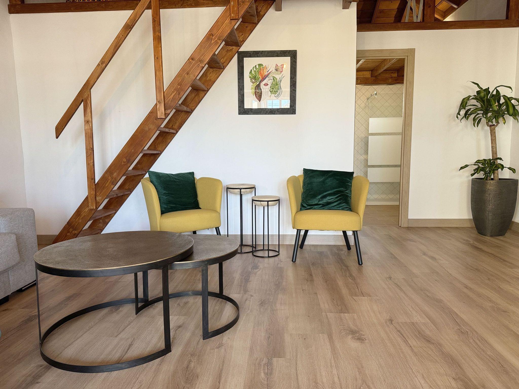 • Salon mit großer Couch, 2 Sesseln, Beistelltische
