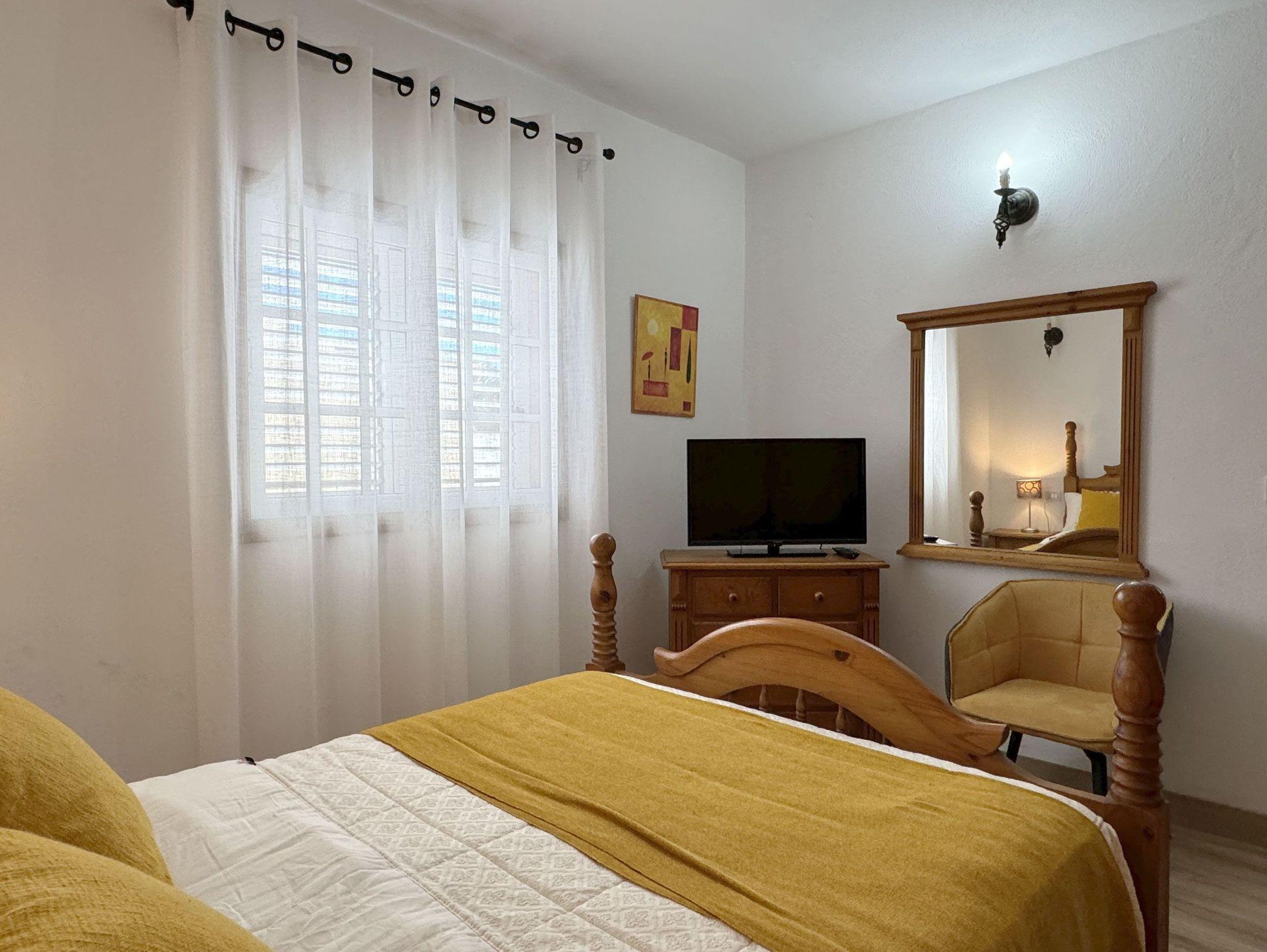 1. Der ältere Teil des Hauses verfügt über zwei gemütliche Schlafzimmer im spanischen Stil, ein modernes Badezimmer und eine voll ausgestattete Küche.