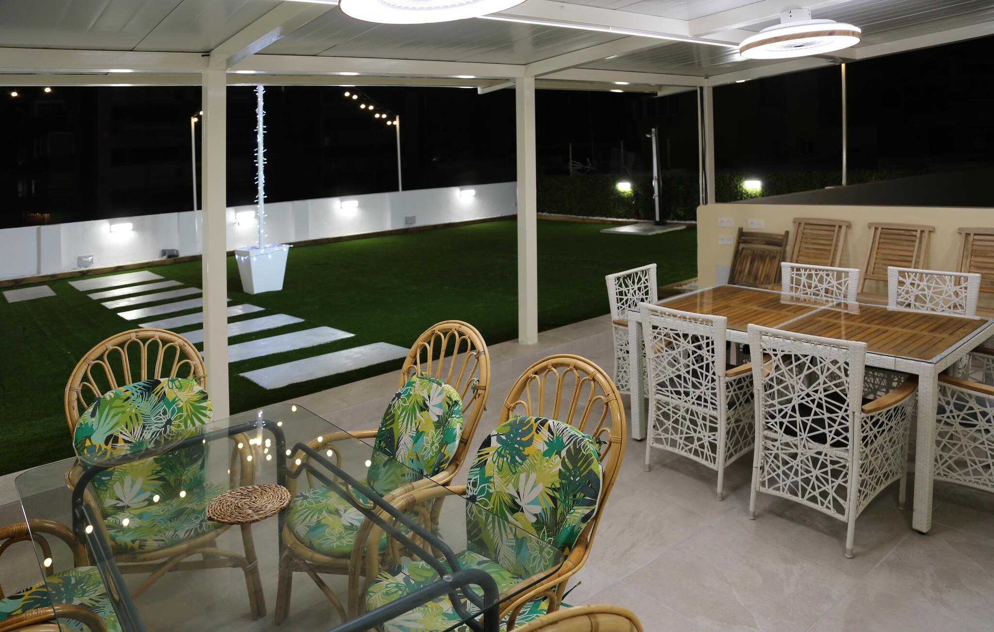 - Åben og overdækket terrasse