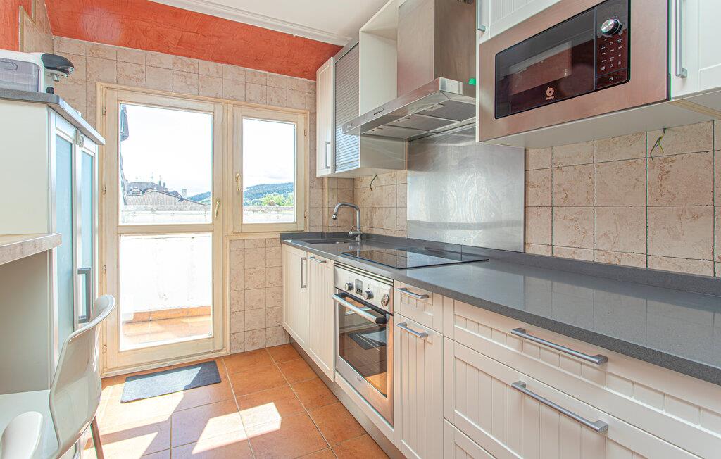 En ferie med fred, ro og masser af skøn natur er, hvad der venter jer i denne dejlige lejlighed. I bor her i et roligt kvarter på tredje sal, og lejligheden er nydeligt indrettet med festlige farver, velholdte klinkegulve- og vægge og gode faciliteter, der gør det nemt for jer at slappe af og bare nyde. Tilbered jeres livretter i det veludstyrede køkken, slap af den lyse stue og smid en god film på tv'et, mens I lægger planer for de kommende dage.