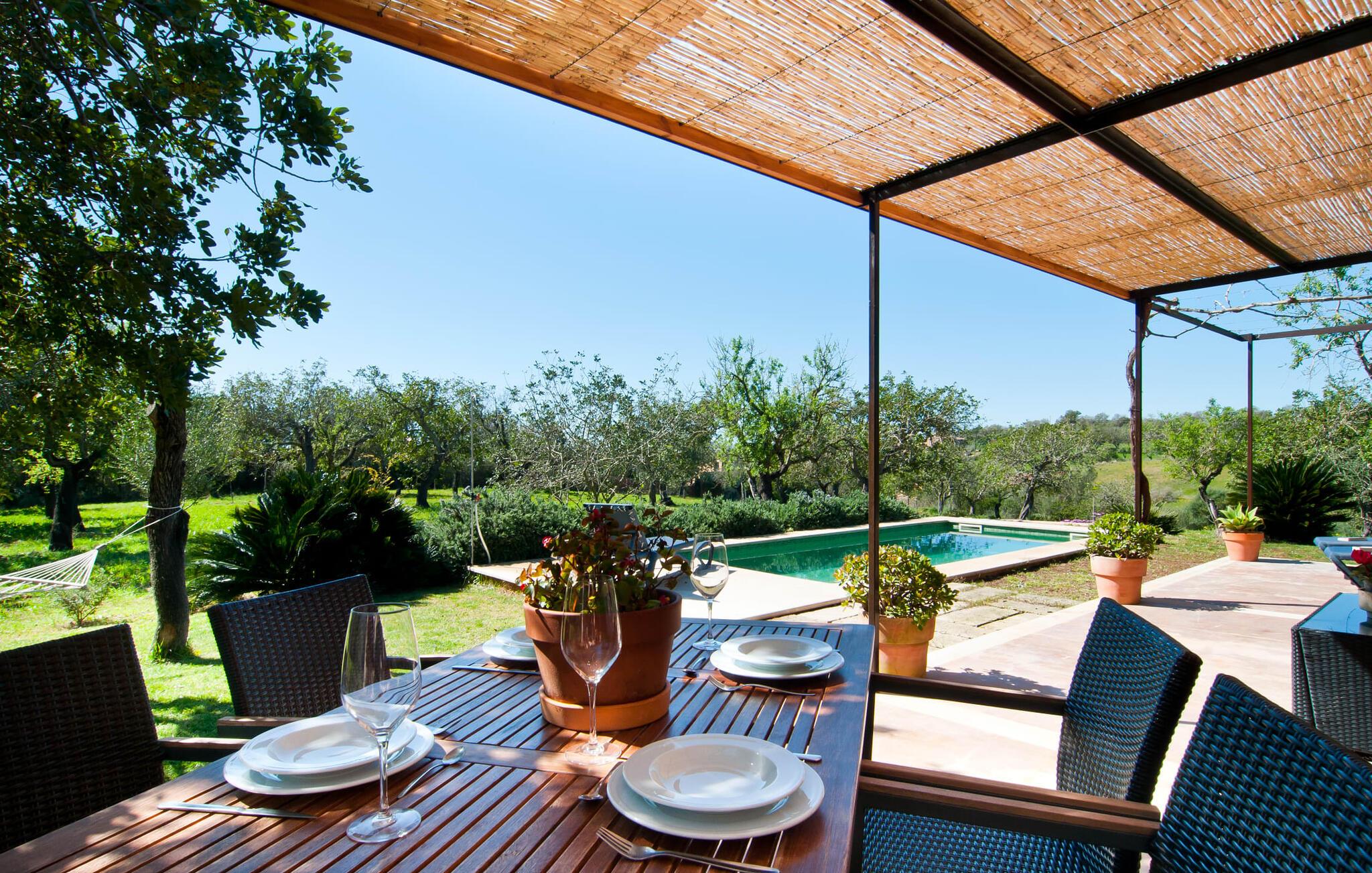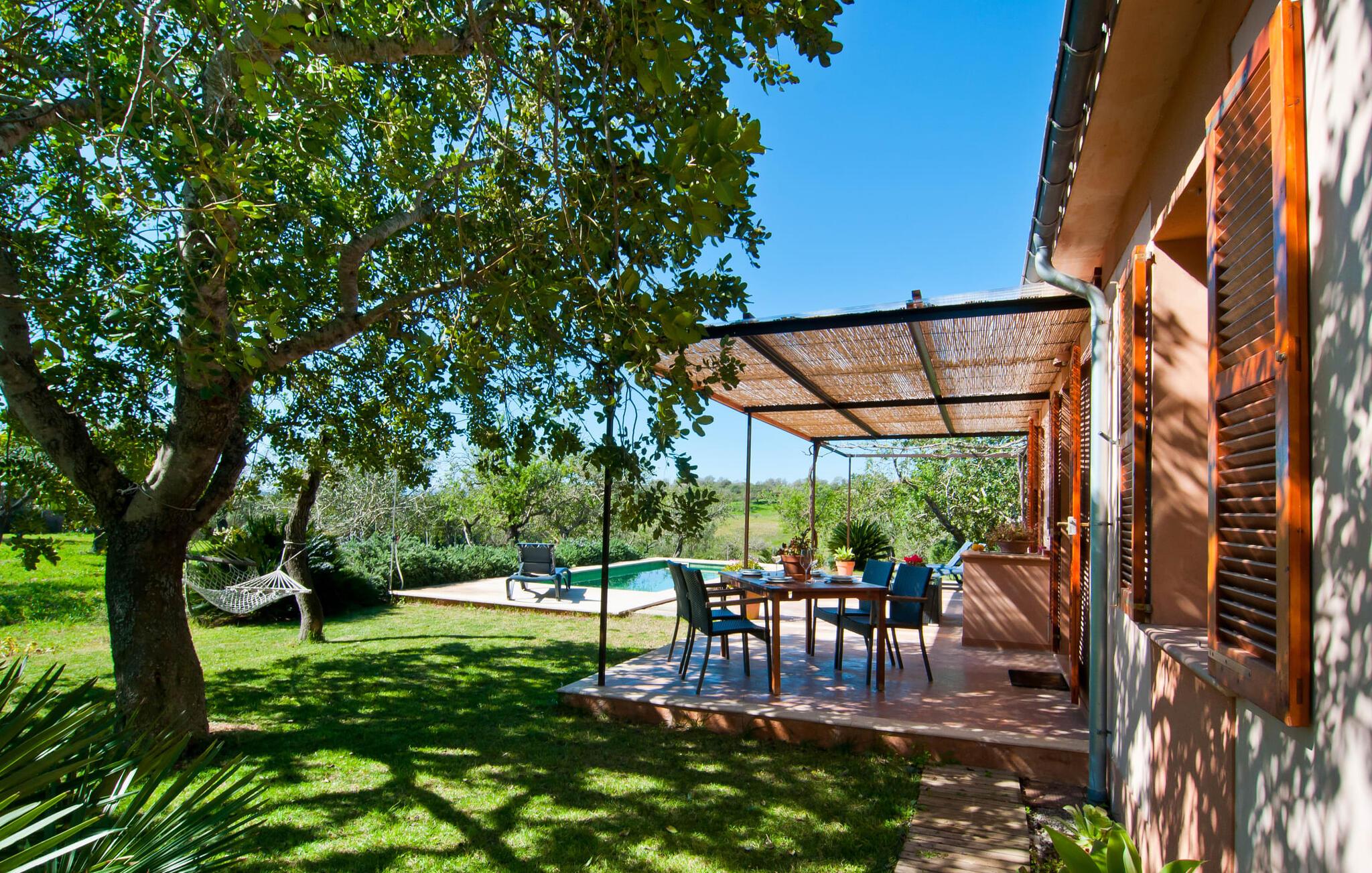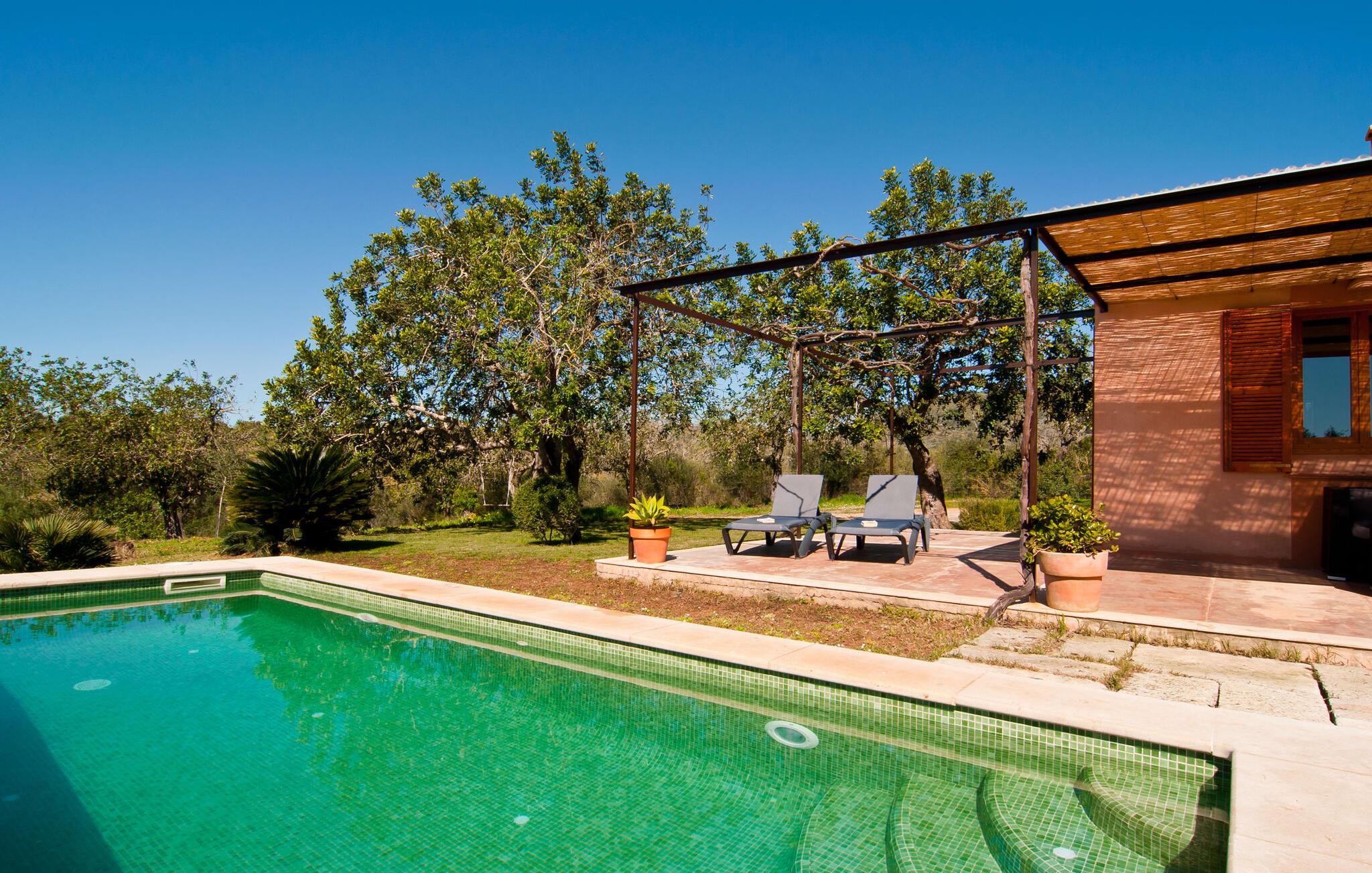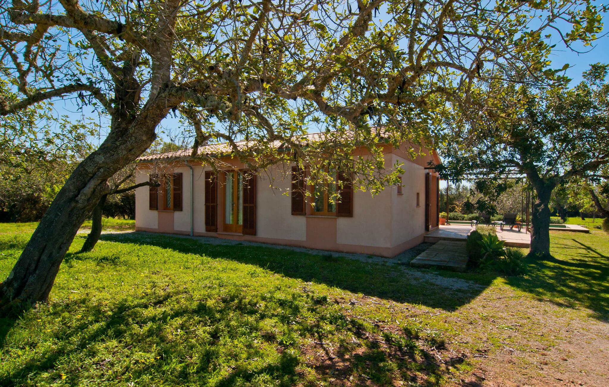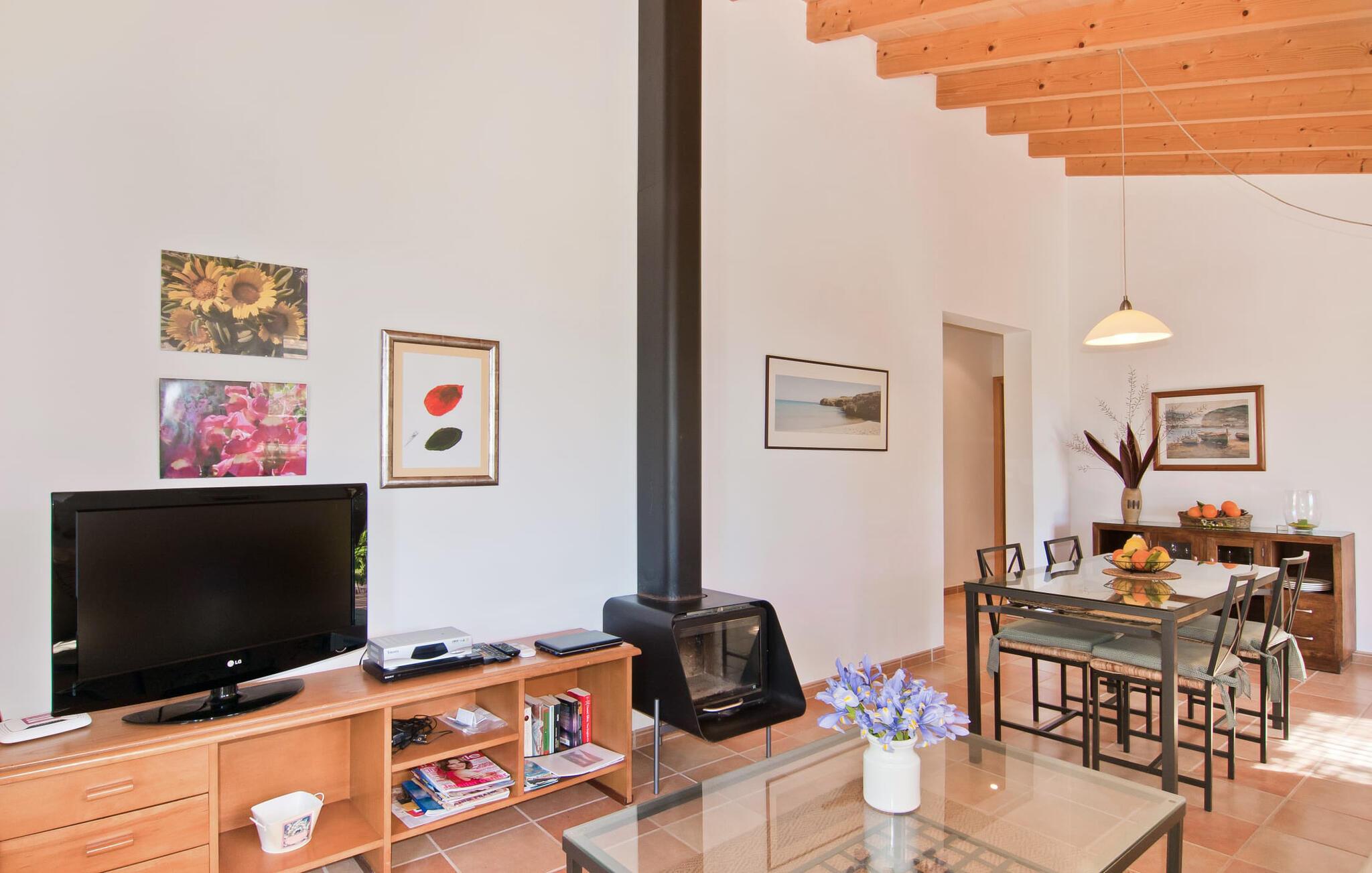 Dette særligt smukke feriehus er en fortryllende oase af fred, omgivet af natur og bekvemt beliggende nær Sant Llorent. Et område omgivet af frugttræer byder gæsterne hjerteligt velkommen og byder på udsigt over de idylliske haver med terrasser og græsplæner. Udendørsområdets højdepunkt er gemt i dets hjerte: den dekorativt flisebelagte swimmingpool. Til jeres afslapning er der to smukke små liggestole ved den 24 m² store pool, som kan nås via trapper. En udendørs bruser er også tilgængelig. Møblerne på den smagfuldt indrettede, lyse, bambusoverdækkede terrasse inviterer jer til at blive hængende og slappe af - og er også perfekt til en forfriskende drink. Det smukke spisebord i nærheden inviterer jer til at spise udenfor og nyde den landlige udsigt. Om aftenen vil I elske at sidde på dette attraktive lille sted og have en kulinarisk BBQ og nyde de friske lokale delikatesser, I købte dagen før. Ejendommens interiør fremstår rustikt og kærligt og byder på en fantastisk og hyggelig stemning. Terrassen fører til den kombinerede stue/spisestue, og køkkenet ligger på højre side. En dør fører lige ud til en gang, hvorfra I kan få adgang til soveværelserne. To af dem er dobbeltværelser, hvoraf det ene har eget badeværelse. Det andet badeværelse og enkeltværelset er også placeret her. Den behagelige atmosfære i dette hus understreges af dets smukke individuelle møbler og den harmoniske ramme af lette vægge, trælofter og terracotta fliser. På kølige aftener fremtryller den moderne pejs i stuen en hjemlig atmosfære og hyggelig varme, mens satellit-tv'et giver mulighed for at se en god film i den komfortable beige sofa. Køkkenet byder med sine markante grønne vægfliser og den smukke udsigt over det omkringliggende område alt hvad I behøver til hverdagsbrug - keramisk kogeplade, ovn, køleskab, mikroovn, elkedel og kaffemaskine. I de smukt møblerede soveværelser (hvoraf to har aircondition) er I garanteret en afslappende nat, og I vil være i stand til at komme jer bæredygtigt. Der er to senge, der måler 1,5 x 1,9 m og yderligere 0,9 x 1,9 m til rådighed. To lyse og fuldt funktionelle badeværelser fuldender interiøret. Praktisk talt kan landsbyens butikker hurtigt nås. Attraktive destinationer i nærheden af villaen er Manacor (12 km) og Artà (11 km). I disse to byer finder I alt, hvad I har brug for til jeres daglige behov. De tilbyder også et godt udvalg af restauranter med meget godt mallorcansk køkken. Flere strande i denne østlige del af øen er nemme at nå - som Cala Millor, Cala Bona og Sa Marjal. Cala Rajada er omkring 20 km væk i nordøst. Den lille villa "Garriga Nova" er et smukt indrettet og typisk mallorcansk feriehus. Det er i et virkelig roligt område, kun omkring fem minutters kørsel fra Sant Llorenc. Der er bageri, supermarked, apotek og restauranter. Nogle af de særligt smukke lokale strande kan nås hurtigt i bil.