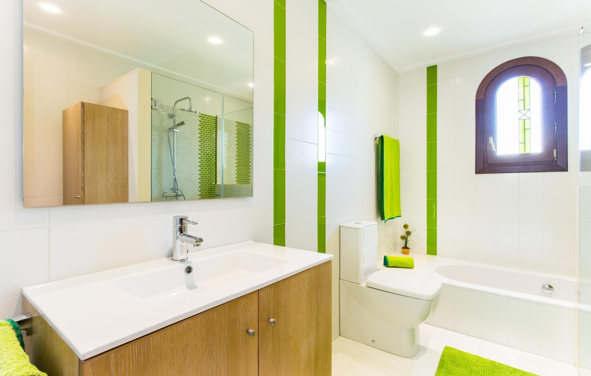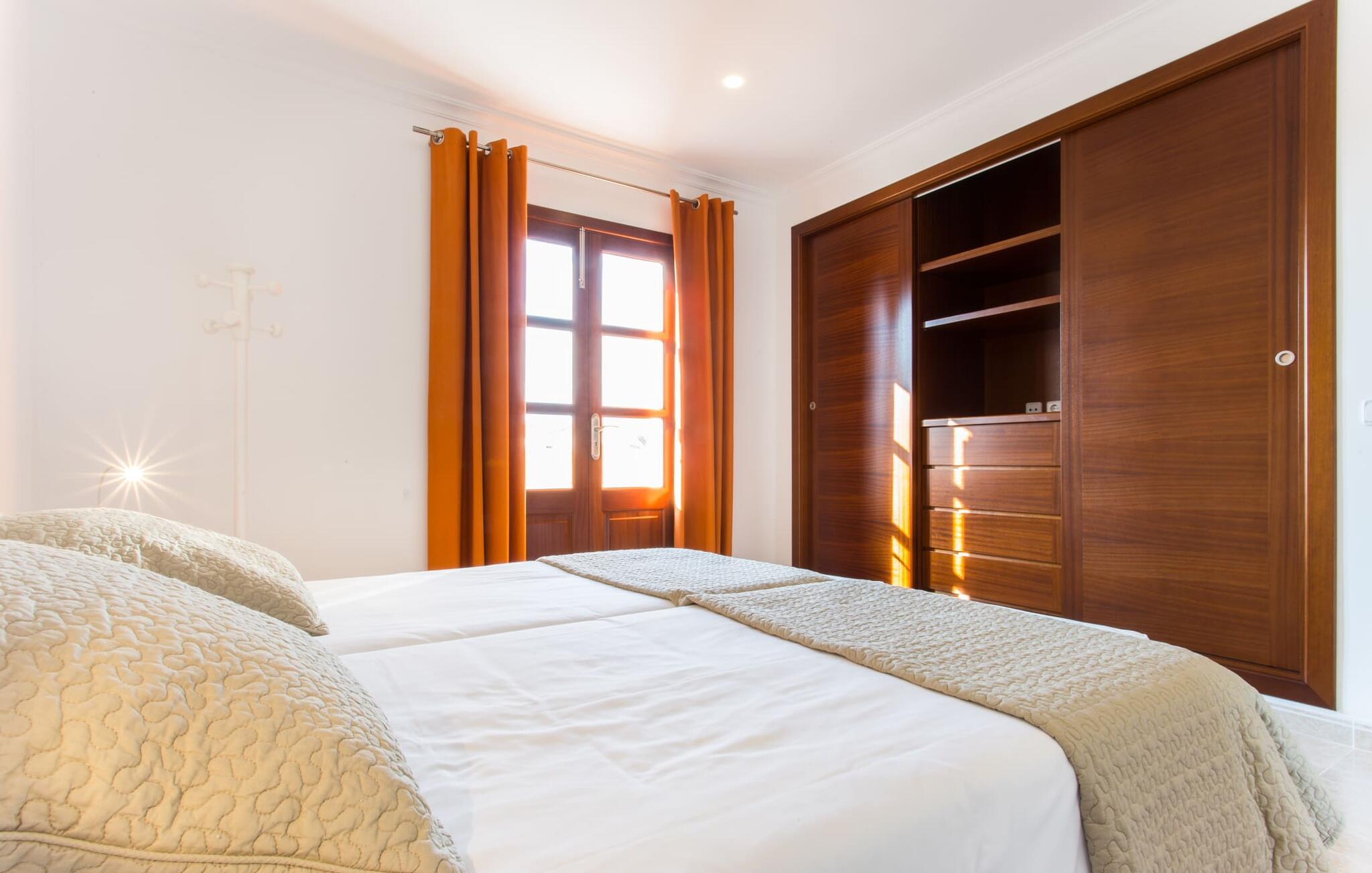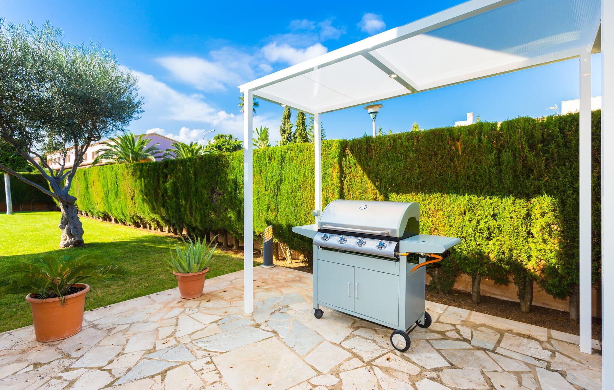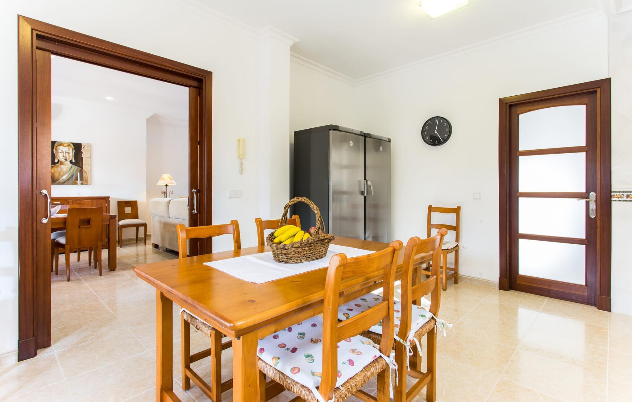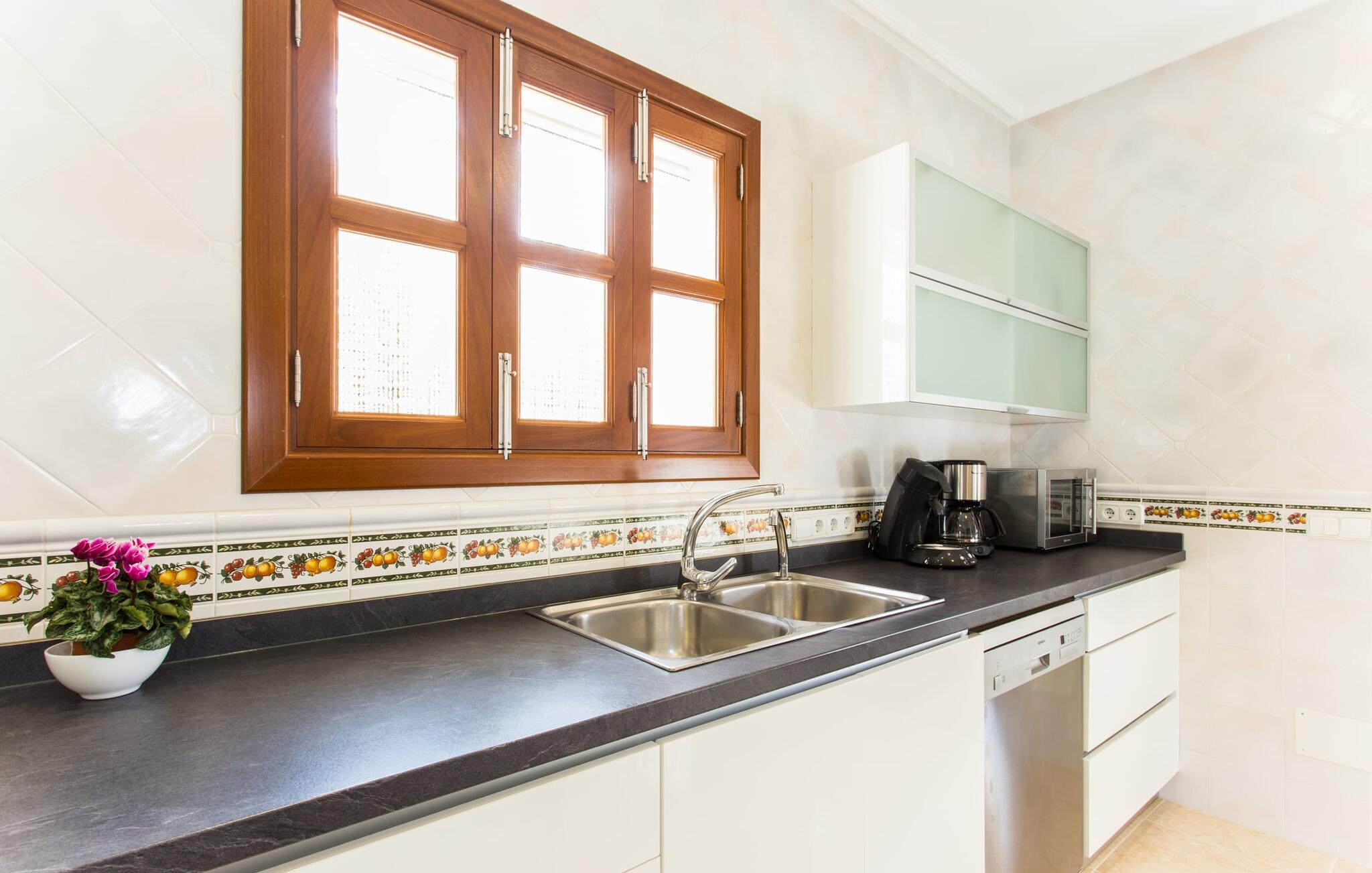 Den markante villa "Gatoses" er præget af helt jordnær elegance og tidløshed, hvor I kan føle jer hjemme. Så snart man træder ind i denne lille, men smukke ejendom, bliver omsorgen for de venlige ejere tydelig: Det starter med den smukke, velholdte have, som har store græsplæner fyldt med blomster. jeres privatliv er garanteret af en tyk grøn hæk, der grænser op til ejendommen. Der er talrige terracotta krukker på den vidunderligt skyggefulde veranda, og selve huset er smukt dekoreret med blomster og buske. Den overdækkede terrasse har udsigt over en pool med en kurve i den ene ende, der angiver, hvor pooltrinene begynder, og en bugtende mosaik rundt om kanten. Slap af i en af liggestolene og nyd solen på plænen eller naturstensterrassen. Hvide søjler understøtter taget over den rummelige terrasse, hvor denne farve også optræder på skodderne, hvilket skaber en smuk, skarp kontrast til selve rækkehusets jordfarver. Der er god plads til sidde- og spisepladserne med udendørsmøbler af høj kvalitet, også lavet af polyrattan. Start jeres dag med morgenmad sammen, spis en let frokost og tag hjem om aftenen - hvor premium gasgrillstationen venter på jer under et oplyst fortelt og gør hver dag i jeres ferie speciel. Dobbelte terrassedøre fører fra terrassen ind til stuen og spisestuen på fincaen. Møblerne er harmoniske i enhver henseende: et lyst stengulv, hvide vægge, mørke massive trædøre og højkvalitets møbler i massivt træ med et strejf af eksklusivitet, sammen med nøje udvalgte dekorative genstande og samtidskunst på væggene, sørger for noget bestemt. Et smukt harmonisk rum, hvor I kan føle jer hjemme. Fra stuen fører en dobbelt skydedør ind i det hyggelige, veludstyrede køkken. Med en hvid højglans køkkendel med gaskomfur og kogeplader, amerikansk køle/fryseskab i rustfrit stål, opvaskemaskine, mikroovn og meget mere bliver selvforplejning ikke nemmere! Og med en dør, der fører til den udendørs spiseplads, er det lige så praktisk at spise udendørs som at blive indendørs. Med to dobbeltværelser og et tredobbeltværelse kan villaen rumme op til syv personer. Tredobbeltværelset er særligt velegnet til forældre til et barn, der allerede er vokset nok og har brug for egen seng. Ved siden af soveværelset i stueetagen er der et badeværelse i beige toner med moderne bruseniche. Det andet badeværelse er tilgængeligt via gangen i de to soveværelser på øverste etage. Dette er et stilfuldt hvidt værelse med bambusgrønne accenter og et komfortabelt badeværelse. Også ovenpå er en romantisk altan med et opholdsområde, hvor I kan sidde og se nattehimlen og lytte til havets brusen. Intet andet end fint, let sand under fødderne, blåt havvand, der strækker sig til horisonten... En gåtur på den nærliggende strand, som er næsten 890 m lang, er et paradis for alle. Og gæster i "Gatoses"-rækkehuset kan komme dertil på ingen tid, da huset ligger kun 700 meter fra vandet og lige i hjertet af kystbyen Sa Coma, hvilket betyder, at mange attraktioner og faciliteter er kun en kort gåtur væk . Da beliggenheden midt i byen ikke altid er den mest rolige, er villaen perfekt til alle, der leder efter eget midlertidigt hjem i en noget mere travl beliggenhed, der giver mulighed for mange oplevelser også uden bil. Når I går langs promenaden, når I til sidst den nærliggende by S'Illot. Der er talrige sports- og fritidsmuligheder og endda en minigolfbane. Børn vil også elske et besøg i safariparken i den nordlige del af byen. Her er noget for enhver aldersgruppe - inklusive masser af muligheder for at slappe af og slappe af. Den attraktive byvilla "Gatoses" imponerer med sin stilfulde indretning og en perfekt beliggenhed nær den lille kystby Sa Coma nær Cala Millor. Shoppingmuligheder bugner rundt i byen, men på en søndag bør I tage til markedet i den berømte havneby Portocristo, kun få minutters kørsel væk. Smukke sandstrande med fremragende vandkvalitet som Sa Coma eller S'Illot er kun få minutters gang væk. De inviterer jer til at tage lange gåture på stranden.