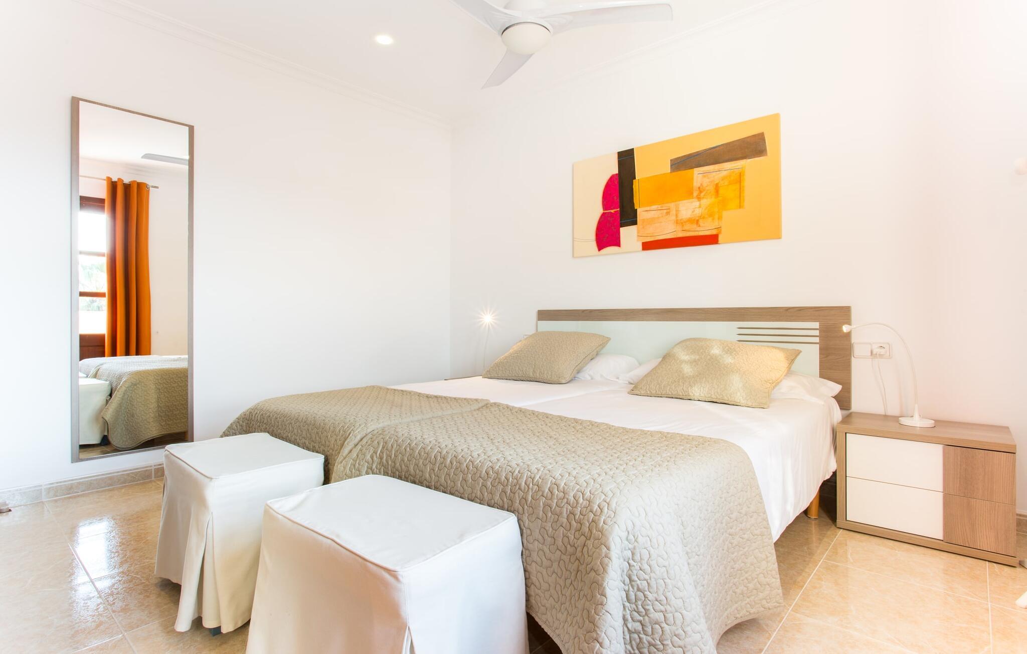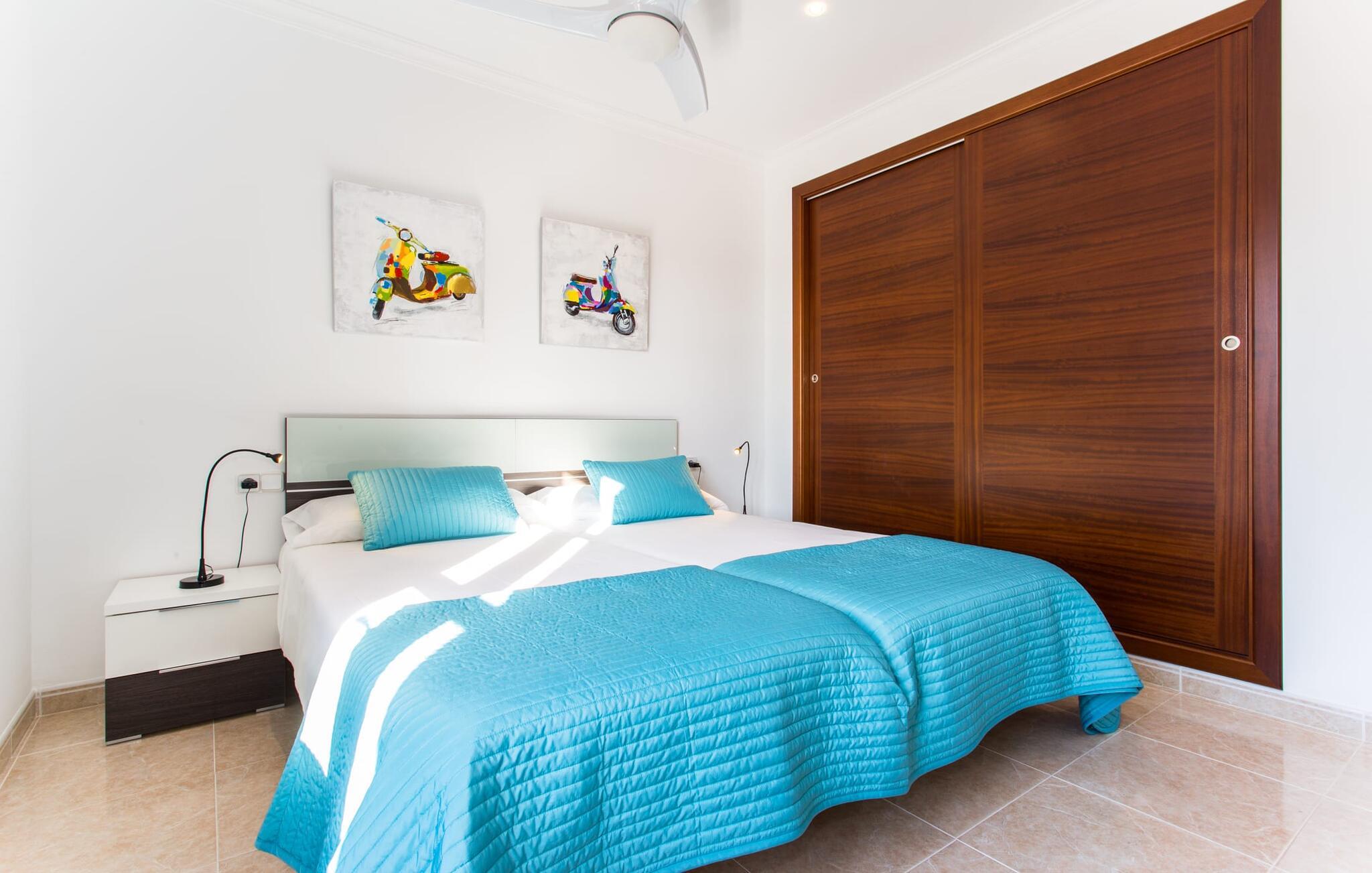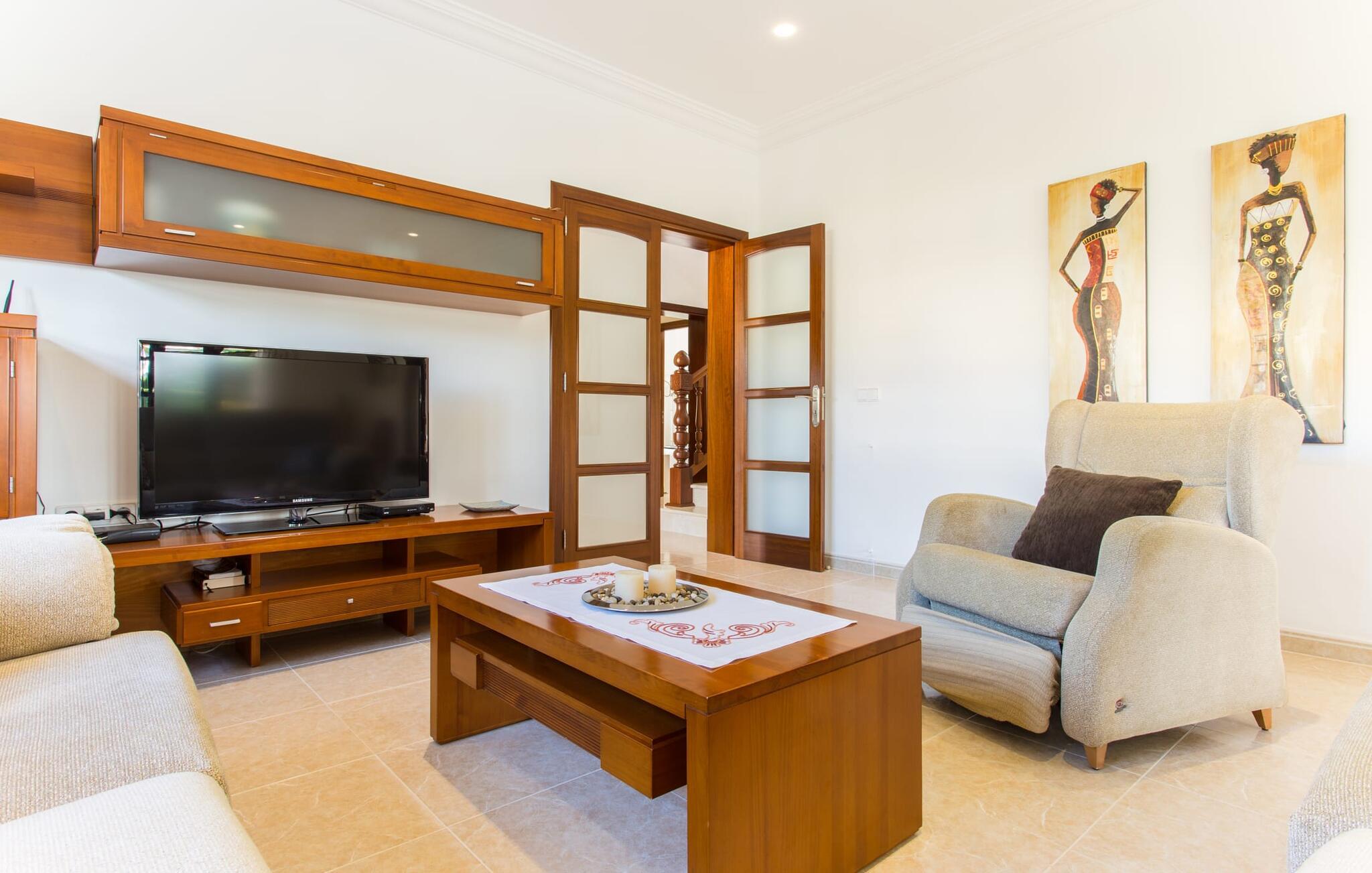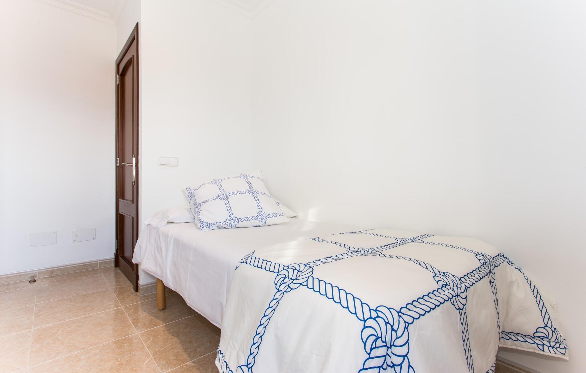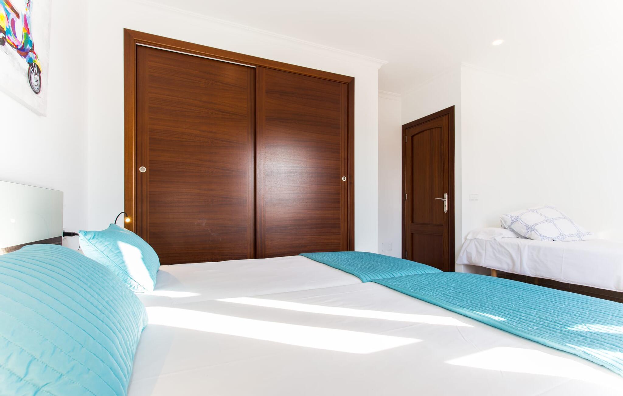 Den markante villa "Gatoses" er præget af helt jordnær elegance og tidløshed, hvor I kan føle jer hjemme. Så snart man træder ind i denne lille, men smukke ejendom, bliver omsorgen for de venlige ejere tydelig: Det starter med den smukke, velholdte have, som har store græsplæner fyldt med blomster. jeres privatliv er garanteret af en tyk grøn hæk, der grænser op til ejendommen. Der er talrige terracotta krukker på den vidunderligt skyggefulde veranda, og selve huset er smukt dekoreret med blomster og buske. Den overdækkede terrasse har udsigt over en pool med en kurve i den ene ende, der angiver, hvor pooltrinene begynder, og en bugtende mosaik rundt om kanten. Slap af i en af liggestolene og nyd solen på plænen eller naturstensterrassen. Hvide søjler understøtter taget over den rummelige terrasse, hvor denne farve også optræder på skodderne, hvilket skaber en smuk, skarp kontrast til selve rækkehusets jordfarver. Der er god plads til sidde- og spisepladserne med udendørsmøbler af høj kvalitet, også lavet af polyrattan. Start jeres dag med morgenmad sammen, spis en let frokost og tag hjem om aftenen - hvor premium gasgrillstationen venter på jer under et oplyst fortelt og gør hver dag i jeres ferie speciel. Dobbelte terrassedøre fører fra terrassen ind til stuen og spisestuen på fincaen. Møblerne er harmoniske i enhver henseende: et lyst stengulv, hvide vægge, mørke massive trædøre og højkvalitets møbler i massivt træ med et strejf af eksklusivitet, sammen med nøje udvalgte dekorative genstande og samtidskunst på væggene, sørger for noget bestemt. Et smukt harmonisk rum, hvor I kan føle jer hjemme. Fra stuen fører en dobbelt skydedør ind i det hyggelige, veludstyrede køkken. Med en hvid højglans køkkendel med gaskomfur og kogeplader, amerikansk køle/fryseskab i rustfrit stål, opvaskemaskine, mikroovn og meget mere bliver selvforplejning ikke nemmere! Og med en dør, der fører til den udendørs spiseplads, er det lige så praktisk at spise udendørs som at blive indendørs. Med to dobbeltværelser og et tredobbeltværelse kan villaen rumme op til syv personer. Tredobbeltværelset er særligt velegnet til forældre til et barn, der allerede er vokset nok og har brug for egen seng. Ved siden af soveværelset i stueetagen er der et badeværelse i beige toner med moderne bruseniche. Det andet badeværelse er tilgængeligt via gangen i de to soveværelser på øverste etage. Dette er et stilfuldt hvidt værelse med bambusgrønne accenter og et komfortabelt badeværelse. Også ovenpå er en romantisk altan med et opholdsområde, hvor I kan sidde og se nattehimlen og lytte til havets brusen. Intet andet end fint, let sand under fødderne, blåt havvand, der strækker sig til horisonten... En gåtur på den nærliggende strand, som er næsten 890 m lang, er et paradis for alle. Og gæster i "Gatoses"-rækkehuset kan komme dertil på ingen tid, da huset ligger kun 700 meter fra vandet og lige i hjertet af kystbyen Sa Coma, hvilket betyder, at mange attraktioner og faciliteter er kun en kort gåtur væk . Da beliggenheden midt i byen ikke altid er den mest rolige, er villaen perfekt til alle, der leder efter eget midlertidigt hjem i en noget mere travl beliggenhed, der giver mulighed for mange oplevelser også uden bil. Når I går langs promenaden, når I til sidst den nærliggende by S'Illot. Der er talrige sports- og fritidsmuligheder og endda en minigolfbane. Børn vil også elske et besøg i safariparken i den nordlige del af byen. Her er noget for enhver aldersgruppe - inklusive masser af muligheder for at slappe af og slappe af. Den attraktive byvilla "Gatoses" imponerer med sin stilfulde indretning og en perfekt beliggenhed nær den lille kystby Sa Coma nær Cala Millor. Shoppingmuligheder bugner rundt i byen, men på en søndag bør I tage til markedet i den berømte havneby Portocristo, kun få minutters kørsel væk. Smukke sandstrande med fremragende vandkvalitet som Sa Coma eller S'Illot er kun få minutters gang væk. De inviterer jer til at tage lange gåture på stranden.