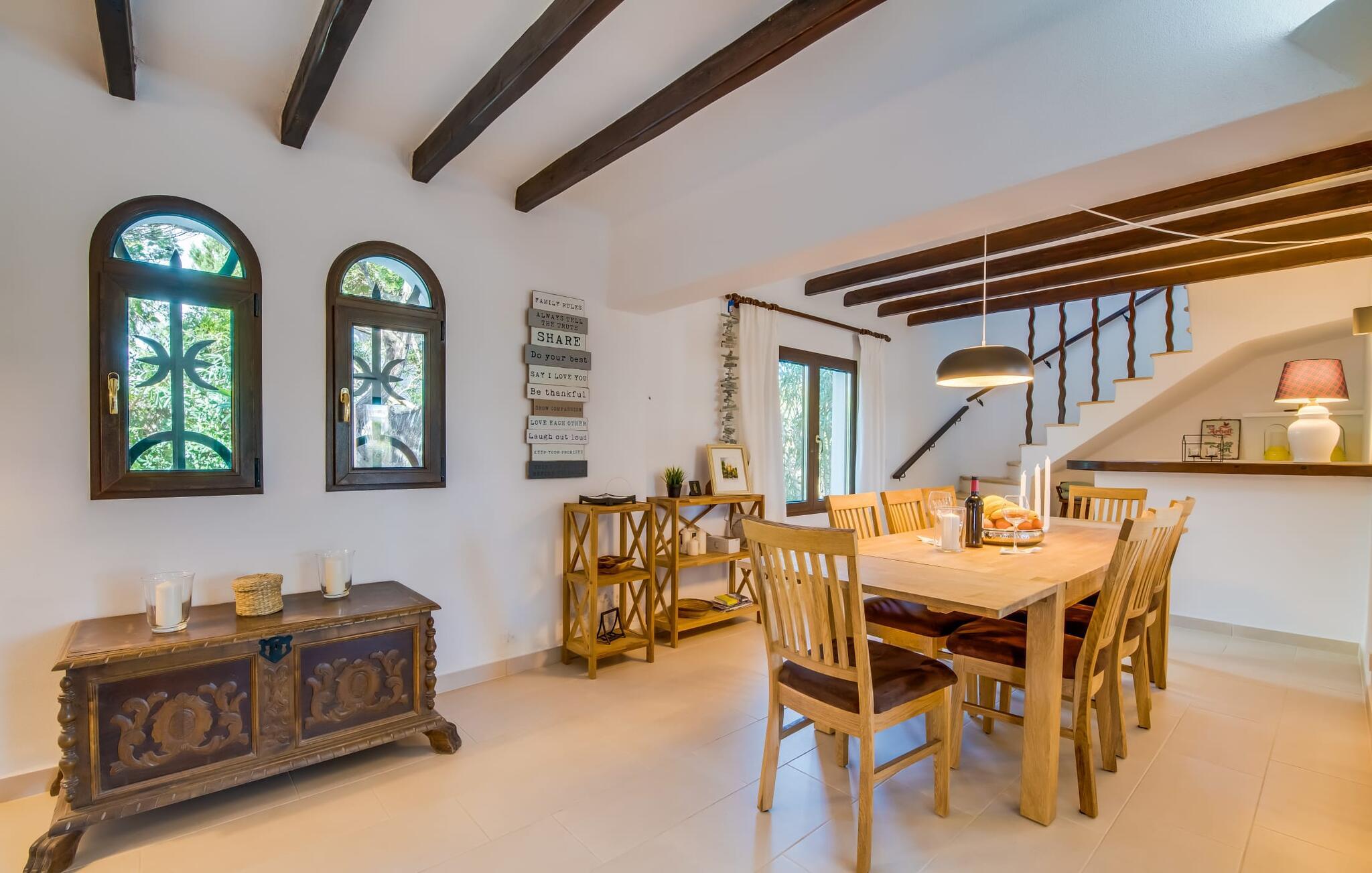 Mellem Cala Gran og Cala Esmeralda: Hvor hvide, kubeformede villaer i udkanten af Cala d'Or vender ud mod havet, og viftepalmer svajer i vinden, udstråler Mallorcas guldkyst lidt Ibiza-charme. Som familie er I også i gode hænder i den rolige sidegade til dette velholdte villakompleks med parkeringsplads. Villaen "Genin" strækker sig over tre plan med terrasser og altaner mod solen, men skærmer haven og poolen for naboernes øjne med en hæk. Her kan I altid stille jeres borde og liggestole i det bedste lys, overdækkede nicher er ideelle til pauser i skyggen og til de roligere timer på dagen. Den smukkeste udsigt kan nydes fra taget. Ikke for langt væk, en af de turkise badebugter, der får øens sydøstkyst til at glitre i solen. Absolut strandklar med klinkegulve og masser af plads! Cala d'Or Villa imponerer med sin gennemtænkte indretning, som er ideel til to familier. Babysæt er tilgængelige - bare spørg! To hyggelige dobbeltværelser med separate badeværelser og private badeværelser (tre brusere, en brusebakke) deler et værelse. I stueetagen til venstre for indgangen er der en seng til op til fire gæster. De øvrige kan fordeles over hele førstesalen med egen tv-stue og balkon med havudsigt. I kan sidde sammen ved pejsen eller spise ved det lange spisebord, stuen er opdelt af elegante arkader og der er plads til endnu en siddeplads under trappen. Det hvide, veludstyrede køkken er gerne med, men I kan også lukke døren når som helst, når komfur og opvaskemaskine er i brug. Det populære feriested og en række fritidsaktiviteter er inkluderet i jeres reservation! Den eksklusive lystbådehavn Cala d'Or med sine butikker, caféer og restauranter ligger kun 3 km fra Villa "Genin" - I kan nyde en aftentur efter en dag på stranden eller en tur til Portocolom og Santanyí. Der er bestemt ikke mangel på muligheder for vandsport i badebugterne. I højsæsonen transporterer et lille tog endda gæster fra den ene strand til den næste. Prøv det og find jeres personlige favorit, fra den store Cala Gran og de fine sandede søstre Serena, Ferrera og Esmeralda til den beskyttede dobbeltbugt i Parc natural de Mondragó. Den massive Es Fortí-fæstning fra 1700-tallet er bestemt et besøg værd, ideelt hvis I tager en tur sydpå. Typisk Cala d'Or: Det hvide hus i Ibiza-stil ligger i et velholdt villaområde nær Cala Gran og har udsigt til havet fra øverste etage. Der er ca. 1 km til bymidten, ca. 3 km til lystbådehavnen, og det nærmeste supermarked ligger også i gåafstand. En række forskellige bugter og strande kan nås på blot et par minutter i bil, men havnene Portopetro og Portocolom, Parc natural de Mondragó og det bakkede Santanyí er også fremragende udflugtsmål. Bemærk venligst, at denne ejendom ikke accepterer ungdomsgrupper eller polterabender. En ungdomsgruppe på denne ejendom består af personer under 30 år. Book ikke denne ejendom, hvis I er en ungdomsgruppe eller en polterabendgruppe, da jeres reservation vil blive afvist, når den er booket, hvilket også kan være tilfældet ved ankomst til ejendommen eller under jeres ophold, og I vil ikke modtage en refusion.