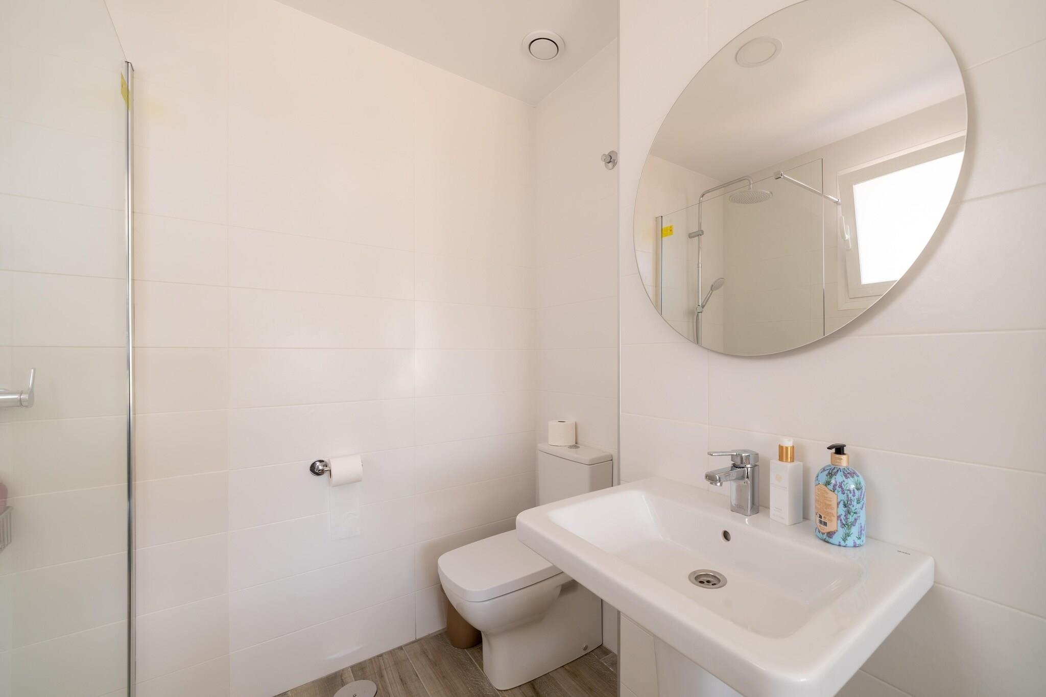Forfriskende privat pool Træd ind i din Gran Alacant-ferie med en privat swimmingpool perfekt til en morgendukkert eller en eftermiddag med solbadning. Villaen rummer komfortabelt op til 8 gæster fordelt på tre soveværelser, hvilket gør den ideel til to familier eller en gruppe venner. Udenfor inviterer den møblerede have dig til at nyde alfresco-måltider eller slappe af med en bog under solen. Aircondition holder villaen komfortabel, mens parkering er tilgængelig for nemheds skyld. Kysteventyr i nærheden Kun 5 km væk byder Carabassi Beach på blødt sand og klart vand til solbadning, svømning eller strandspil. Til hverdagens behov ligger et supermarked kun 900 meter væk, og en række lokale restauranter tilbyder lækre spanske retter og afslappet spisning. Santa Pola-stranden ligger 7,4 km derfra, perfekt til dagsture eller udforskning af kysten. Alicante lufthavn ligger kun 10 km væk, hvilket sikrer nem adgang for rejsende. Komfort og bekvemmelighed Indenfor har villaen et fuldt udstyret køkken, en stue med tv og vaskefaciliteter, herunder to vaskemaskiner. Soveværelserne har dobbeltsenge med aircondition, og barneseng og høj stol er tilgængelige for familier, der rejser med små børn. Med sin pool, have og nærhed til strande og spisesteder tilbyder denne villa et afbalanceret tilflugtssted, der kombinerer afslapning og bekvemmelighed, perfekt til at nyde livsstilen på Costa Blanca.