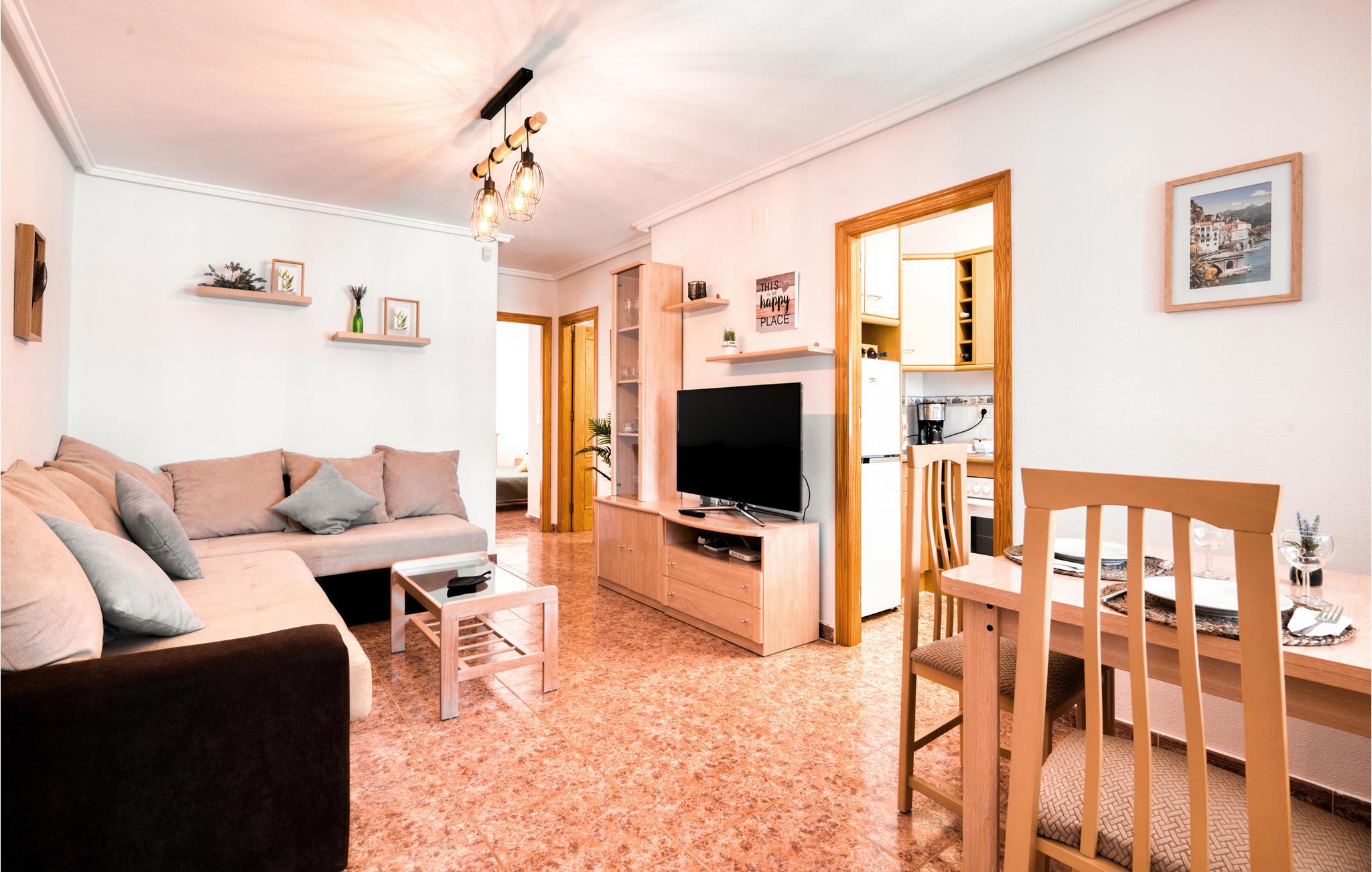 Tilbring en afslappende familieferie i denne hyggelige lejlighed i Gran Alacant med fælles pool. Sol, sand og hav, hvad mere kan man forlange? Denne hyggelige ferielejlighed tilbyder dig og din lille familie de ideelle betingelser for en vellykket ferie ved havet. Den smagfulde lejlighed tilbyder dig alt hvad du behøver for en ubekymret ferie. I kan nyde jeres måltider sammen på jeres overdækkede terrasse og derefter solbade på jeres solterrasse, mens jeres børn selv opdager den fælles pool. Nyd den fantastiske beliggenhed i kort afstand fra en af de smukkeste strande på Costa Blanca, Playa del Carabassi, med fint gyldent sand, dannet af et system af klitter og fyrreskove af stor geoøkologisk værdi. Her har du fundet et paradis, hvor du kan nyde lange gåture på stranden, vandsport og middelhavsgastronomi i strandbarerne. Vend frisk hjem og med mange oplevelser i bagagen!