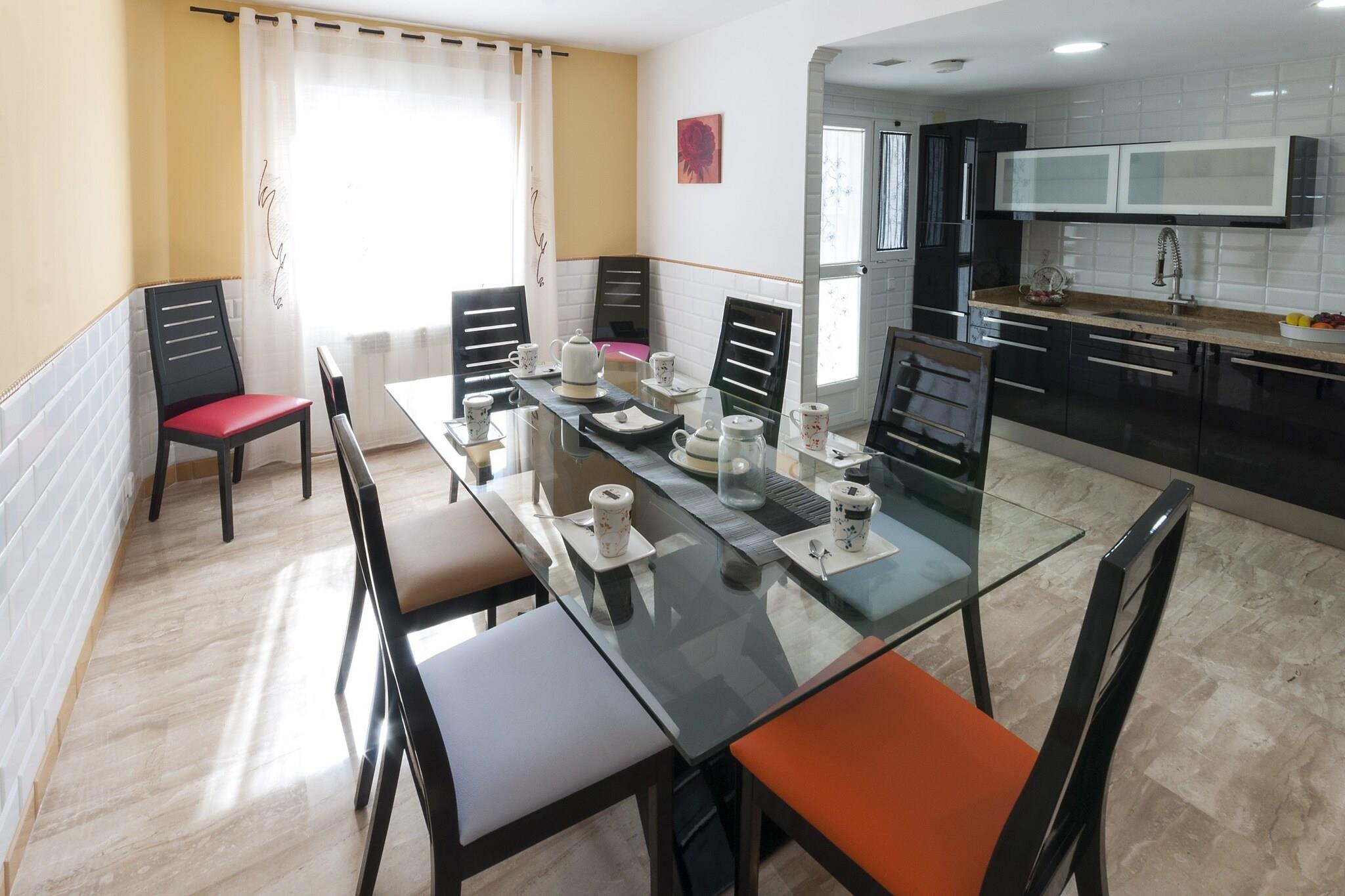 Het prachtige uitzicht over de urbanisatie en de bergen vanaf het privéterras is geweldig. Zij zorgen ervoor dat onze gasten even de tijd nemen voor een rustige koffie door het plan van de dag te organiseren. Dat is natuurlijk niets anders dan genieten van het strand of het fantastische verwarmde chloorzwembad van het gebouw, van ongeveer 10 x 5 meter en een diepte tussen 1 en 1,70 meter, dat tevens beschikt over een geïntegreerde jacuzzi die tot 30ºC verwarmt. Het appartement, gelegen op de derde verdieping met lift en van uitstekende kwaliteit, heeft een grote woonkamer, open naar de eetkamer, waar iedereen na een heerlijke maaltijd samen kan ontspannen tijdens het kijken naar een film of een interessante serie. De keuken, pure luxe, is voorzien van een inductiekookplaat, RVS apparatuur, veel opbergruimte en een tafel met stoelen voor het geval je hier liever eet. De wasruimte beschikt over een wasmachine, strijkijzer en strijkplank. Op dezelfde verdieping hebben ze een badkamer met douche en twee slaapkamers, één met twee eenpersoonsbedden en een kledingkast, en de andere met twee stapelbedden. Via de trap bereikt u de bovenverdieping waar zich nog drie slaapkamers bevinden met een tweepersoonsbed, kledingkast en toegang tot een prachtig terras. Eén ervan heeft een en-suite badkamer met een bubbelbad. Daarnaast is er nog een badkamer met een hydromassagedouche. Als u met een baby verblijft, zetten wij een kinderbedje en een kinderstoel voor u klaar. Wat de airconditioning betreft, deze is perfect voor elk moment van het jaar, aangezien er airconditioning via kanalen en centrale verwarming op gas aanwezig is. Het vissersdorp Grao de Gandía, gelegen nabij de haven, is het hele jaar door de ideale bestemming om langs de promenade te wandelen, 3 km parallel aan de kust, waarbij u kunt profiteren van het milde klimaat en het aantal winkels zoals ijssalons, restaurants, cafés en visrestaurants. Of u kunt van de gelegenheid gebruik maken om uw handdoek uit te spreiden op het fijne zandstrand en een lekker bad te nemen. Opmerking: deze huuraccommodatie accepteert geen klanten jonger dan 30 jaar, behalve in gevallen waarin het om een ??gezinsverblijf gaat. We hebben kopieën van het identiteitsbewijs van elke persoon nodig om de reservering te kunnen accepteren. Voor eventuele extra kosten kunt u contact opnemen met de adverteerder. Houd er rekening mee dat de sleutels voor toegang tot de accommodatie in een brievenbus bij een nabijgelegen tankstation liggen. Drie dagen voor aankomst ontvangt u de coördinaten van het tankstation en de mailboxgegevens. Wij accepteren geen huisdieren. Het vieren van evenementen is niet toegestaan. Afstanden Strand: 0,5 km - Platja de Gandia Luchthaven: 78,2 km - Valencia Golfbaan: 17,5 km - Oliva Nova Golf Stad: 0,01 km - Grao de Gandia Treinstation: 0,6 km - Grao de Gandia Bushalte: 0,2 km - Grao de Gandia Veerboot: 42 km - Denia Ziekenhuis: 4,8 km - Gandia Toeristenvergunning: AT-43588-V