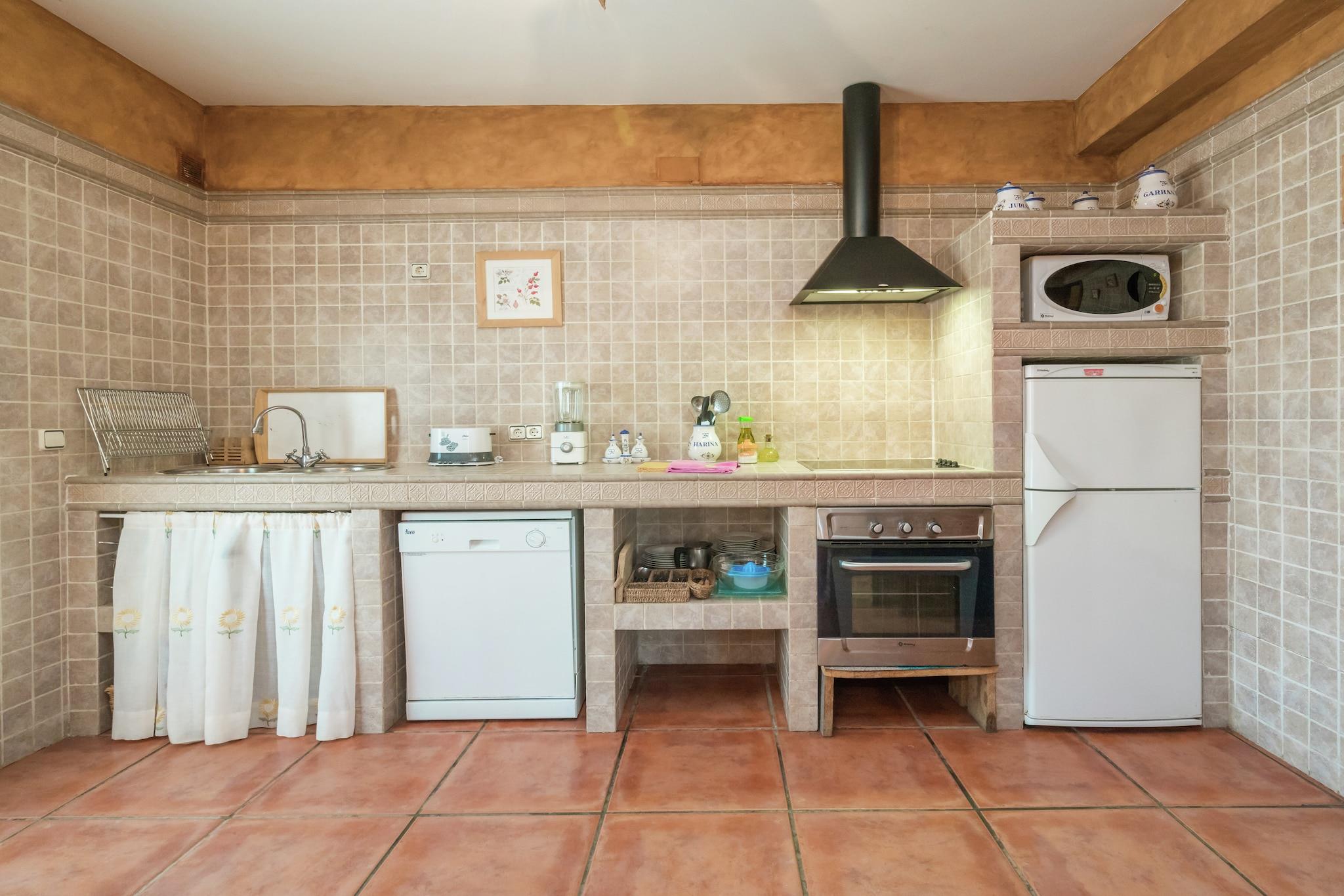 Stueetage: (Stue(Fjernsyn, spisebord, pejs), Køkken(komfur(glaskeramisk), mikrobølgeovn, opvaskemaskine ), soveværelse(dobbeltseng), soveværelse(køjeseng), soveværelse(halvandenmandsseng), soveværelse(dobbeltseng, badekar med bruser, håndvask, toilet, bidet), badeværelse(badekar med bruser, håndvask, toilet), badeværelse(håndvask, toilet)) varme(central), terrasse, have(deles med andre gæster), grill, swimmingpool(deles med andre gæster)