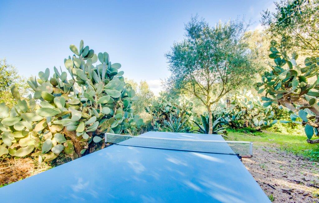 Vi præsenterer jer for den utroligt charmerende villa “Higo Chumbo”, som er særdeles velegnet til to vennepar eller en familie med et eller to større børn. Det omhyggeligt renoverede feriehus er omgivet af marker og skove og har en magisk have med utallige middelhavstræer, lavendel, fyrretræer, cypresser, urter og sukkulenter. De skaber en unik, hyggelig og harmonisk stemning - og tilbyder perfekt komfort ved ankomsten. Efter en enkeltrejse fra lufthavnen vil I hurtigt føle jer hjemme og 100 % godt tilpas. Som man siger, "Hjem er, hvor jeres hjerte er." I vil hurtigt miste jeres hjerte til dette virkelig vidunderlige hus. Villaen har en lang 2m dyb pool med en kontinuerlig strøm af forfriskende vand, der strømmer ned fra en lille pool ovenover. I kan spille et par spil med to eller fire spillere ved bordtennisbordet midt i haven. De selvfremstillede liggestole lavet af træpaller er et behageligt sted for en eftermiddagslur eller at læse en spændende roman. I kan hver dag nyde lækker grillmad på grillpladsen, som alle kan spise sammen på den overdækkede terrasse. En lille væg blev til en bænk, der passer perfekt til det vintage spisebord og de komfortable loungemøbler. I kan nyde jeres dag efter jeres personlige smag, enten med et glas mallorcansk vin eller en forfriskende "cerveza". I særlige tilfælde kan ejerne stille og respektfuldt benytte det lille udhus på den omfattende ejendom. Haven og brugen af poolen er naturligvis udelukkende tilgængelig for gæster. Selvom det typisk milde mallorcanske klima giver lyst til at tilbringe dagene udenfor i den smukke have, skal indersiden af den renoverede villa heller ikke forsømmes. Indretningen er en spændende blanding af autentiske mallorcanske bygningselementer og moderne purisme. Designrenoveringen er udført minutiøst, hvilket forklarer, hvorfor alt passer så godt sammen - fordi bygningen har "udviklet sig". De tidligere små rum er blevet udvidet til et stort rum, hvor opholdsstuen støder op til det smarte hvide spisebord og det åbne køkken. Diskrete og overvejende lyse møbler, køkkenskabe i sten og en hyggelig pejs er i fokus i fællesrummet. Terracotta gulvfliser, fritlagte stenvægge, træbænke og lyse rum giver bygningen dens moderne karakter. I vil ofte finde et par trin mellem hvert rum. Disse lidt forskellige niveauer understreger interiørets individuelle karakter. Det er også meget praktisk, at der er et badeværelse i tilknytning til begge soveværelser. Begge soveværelser har en god størrelse og har masser af opbevaringsplads. Et af badeværelserne er moderne og har bruseniche. Det andet badeværelse er ren luksus. Her blev de forskellige niveauer brugt til at placere et designerbadekar i den øverste del af trappen. Badeværelset har også et stort bruseniche og to tilstødende håndvaske. Badeværelset har en dør, der fører jer direkte ud af huset. Men det er også tilgængeligt fra begge soveværelser, så begge soveværelser er en suite. Indretningen af denne villa er også helt fantastisk. Takket være varme og pejs, som er særligt anvendelige om vinteren, kan villaen lejes hele året rundt. Økologisk er denne finca et skridt foran: al elektricitet kommer fra solceller (systemet blev nyinstalleret i 2018). En generator er tilgængelig i nødstilfælde. Takket være dens beliggenhed i trekanten Montuïri, Vilafranca de Bonany og Porreres, har I det perfekte sted at udforske den autentiske side af Mallorca på egen hånd. Landvillaen ligger tæt på den travle MA15, som forbinder den østlige del af øen med den vestlige del. Det betyder, at I kun har en kort køretur til, hvor I vil hen. Den charmerende lille by Montuïri er en af de ældste byer på Mallorca. Da byen ligger på en bakke, er der en vidstrakt udsigt over det omkringliggende landskab. Vilafranca repræsenterer på den anden side Mallorcas landbrugsside, da det er det centrale knudepunkt for frugtproduktion, fra meloner og abrikoser ("Albercocs" på catalansk) til søde aromatiske vintomater og krydrede pimientos. Porreres er også en del af det "andet Mallorca". I vil være omgivet af lokalbefolkningen på bondemarkedet tirsdag morgen. At nippe til en cortado (espresso med mælk) til lyden af en guitar på kanten af travlheden er ikke bare en feriefølelse, men en ægte livskvalitet. Den nænsomt renoverede villa "Higo Chumbo" kombinerer mallorcansk tradition perfekt med puristisk, moderne design og giver straks lyst til at besøge Mallorca. Huset er omgivet af en idyllisk naturhave og ligger i trekanten mellem Porreres, Montuïri og Vilafranca de Bonany. Alle byer ligger ca. 10 km væk og er gode til dagligvareindkøb. Der er kun omkring en halv time til de smukke strande i syd, herunder den naturlige strand Es Trenc.