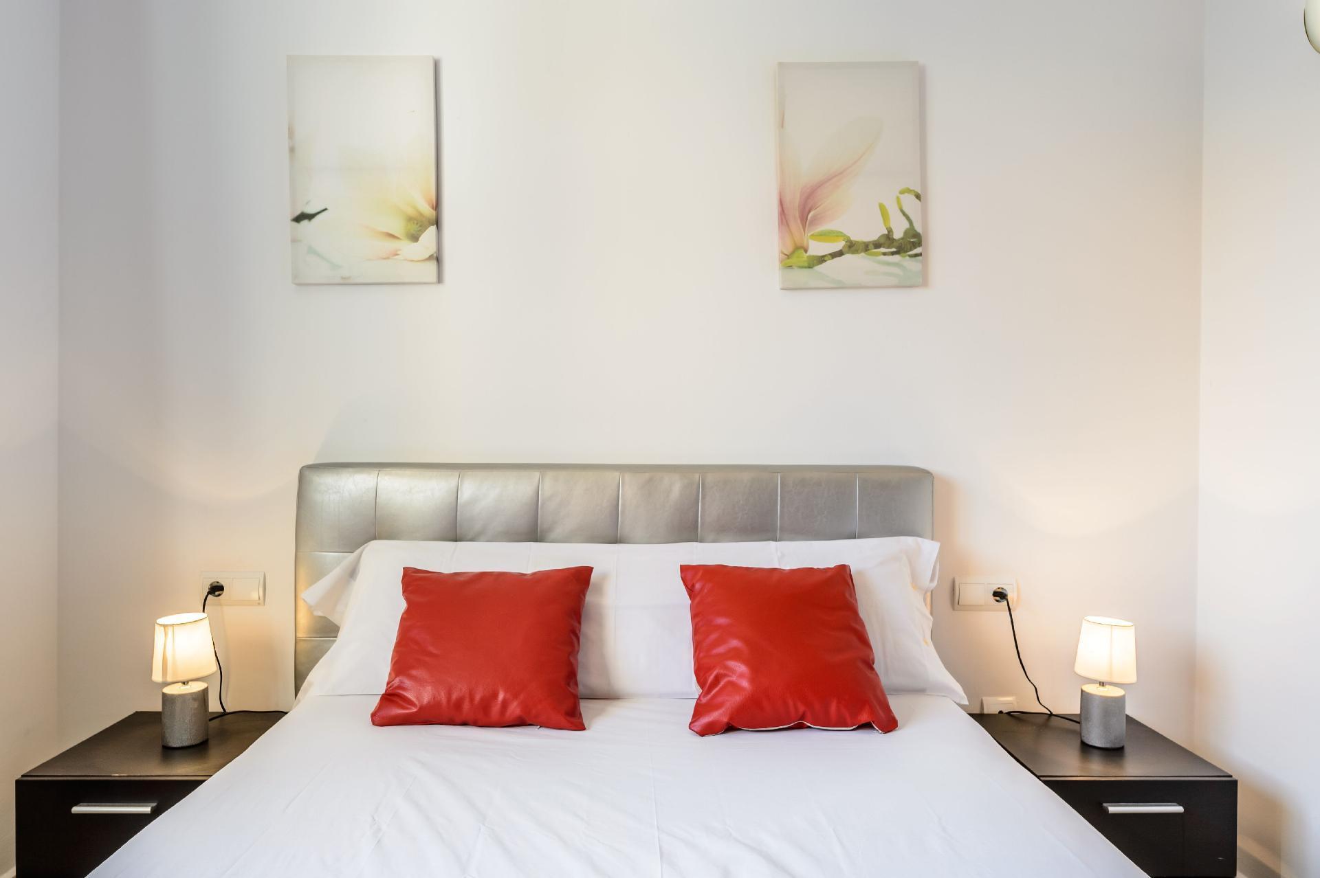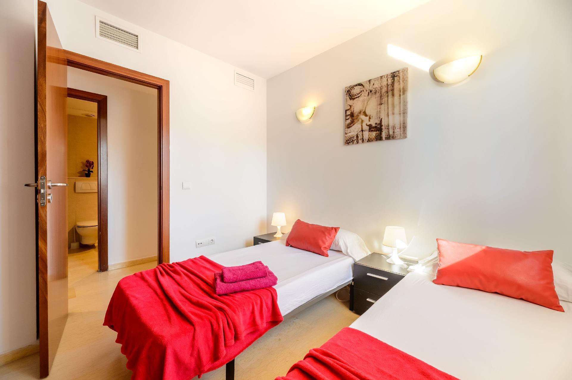 This 3 bedroom, 2 bathroom flat is located in a beautiful part of Ibiza in Playa den Bossa. The flat is on the second row, the beach is 100 metres away. You have 2 double beds, 3 single beds and a sofa. It has 2 modern bathrooms and a fully equipped kitchen. The living area has a sofa and a plasma TV. Dining area for 6 people. Fully air-conditioned, swimming pool and new furniture. Shops, bars, restaurants and of course Ushuaia, Hi, Nassau, Sankeys, Bora Bora and all the amenities of Playa den Bossa are within easy walking distance. 5 minutes walk to the ferry pier that takes you to Ibiza town and the marina.