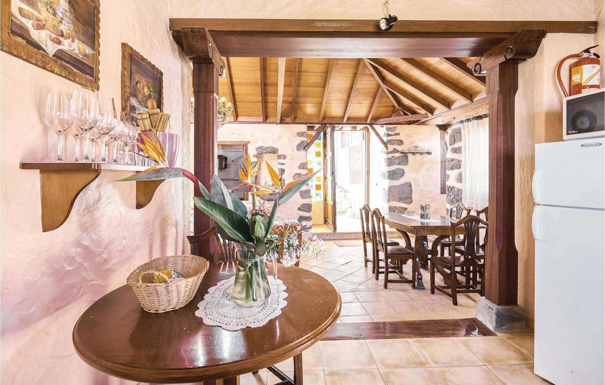Nær Icod de Los Vinos på den solforkælede ferieø Tenerife, ligger dette originale feriehus af sten, hvis indre er robust indrettet, har stengulve, smukke rå mure og frilagt træloft. Fra terrassen er der flot udsigt over de typiske bananmarker og vandet og I haven er der smukke mediterrane planter. Der er 600 m til nærmeste restaurant, hvor fisk og skaldyr fylder meget på menuen og ca. en km til nærmeste butik. Den nærmeste by er Icod de Los Vinos, 1,5 km væk, hvor I kan se verdens ældste dragetræ. Tenerife er en lille ø, med utallige seværdigheder, med en rig historie og en helt speciel natur.