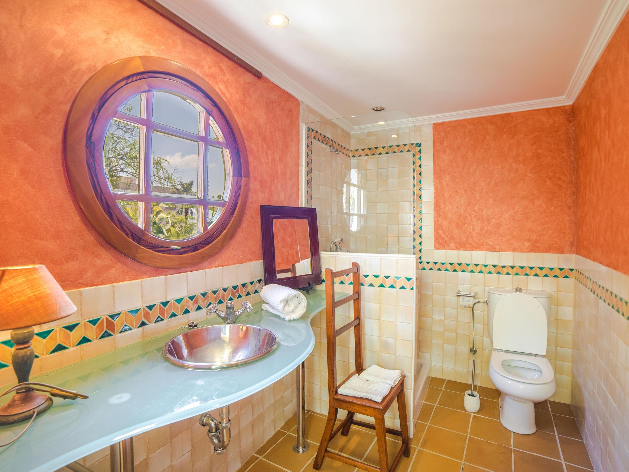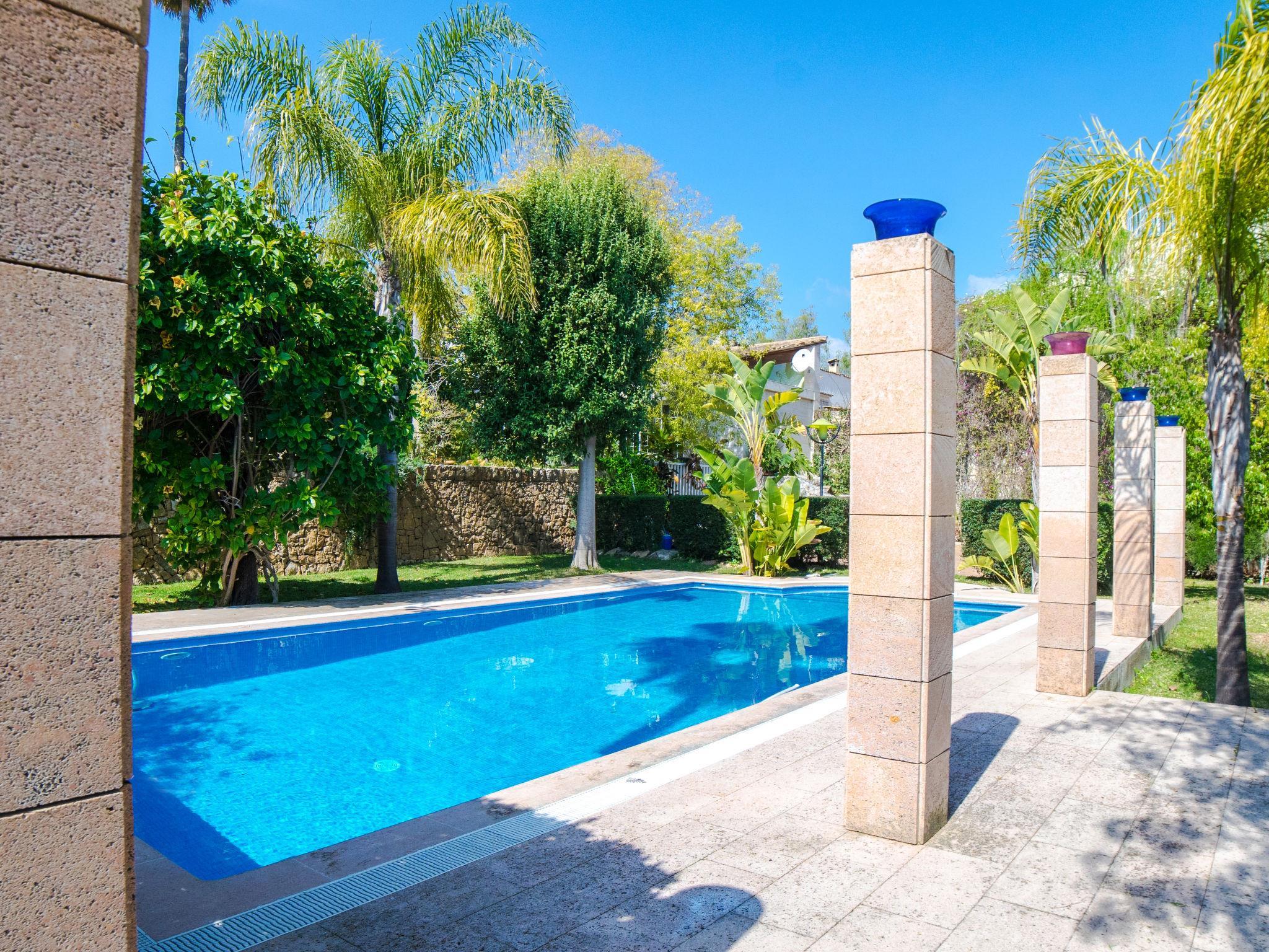Inca: Very large, beautiful, luxurious villa "Villa Can Mandol", 2 storeys. In the resort Inca, in a sunny position, 22 km from the sea, 22 km from the beach. Private: large, beautiful, well-kept garden with lawn and trees, swimming pool angular (10 x 5 m, depth 200 cm, seasonal availability: 01.Jan. - 31.Dec.). Outdoor shower, pool house with fridge, shower, WC and cooking stove, patio, arbour, pergola, garden furniture, barbecue, barbecue house. In the house: internet access, WiFi, central heating system, air conditioning, washing machine. Parking at the house on the premises. Shop, grocery, supermarket 500 m, restaurant, bar 10 m, bakery 200 m, café, internet café, pub garden 10 m, bus stop "Inca" 2 km, railway station "Inca" 2 km, sandy beach "Port Alcúdia" 25 km, shingle beach "Alcanada Alcúdia" 27 km. Sports harbour 25 km, marina 25 km, golf course (18 hole) 27 km. Please note: suitable for families, suitable for seniors. Object suitable for 8 adults groups of teenagers on request only. Loading and unloading of baggage is possible at the holiday house. Airfield 40 km from the property.