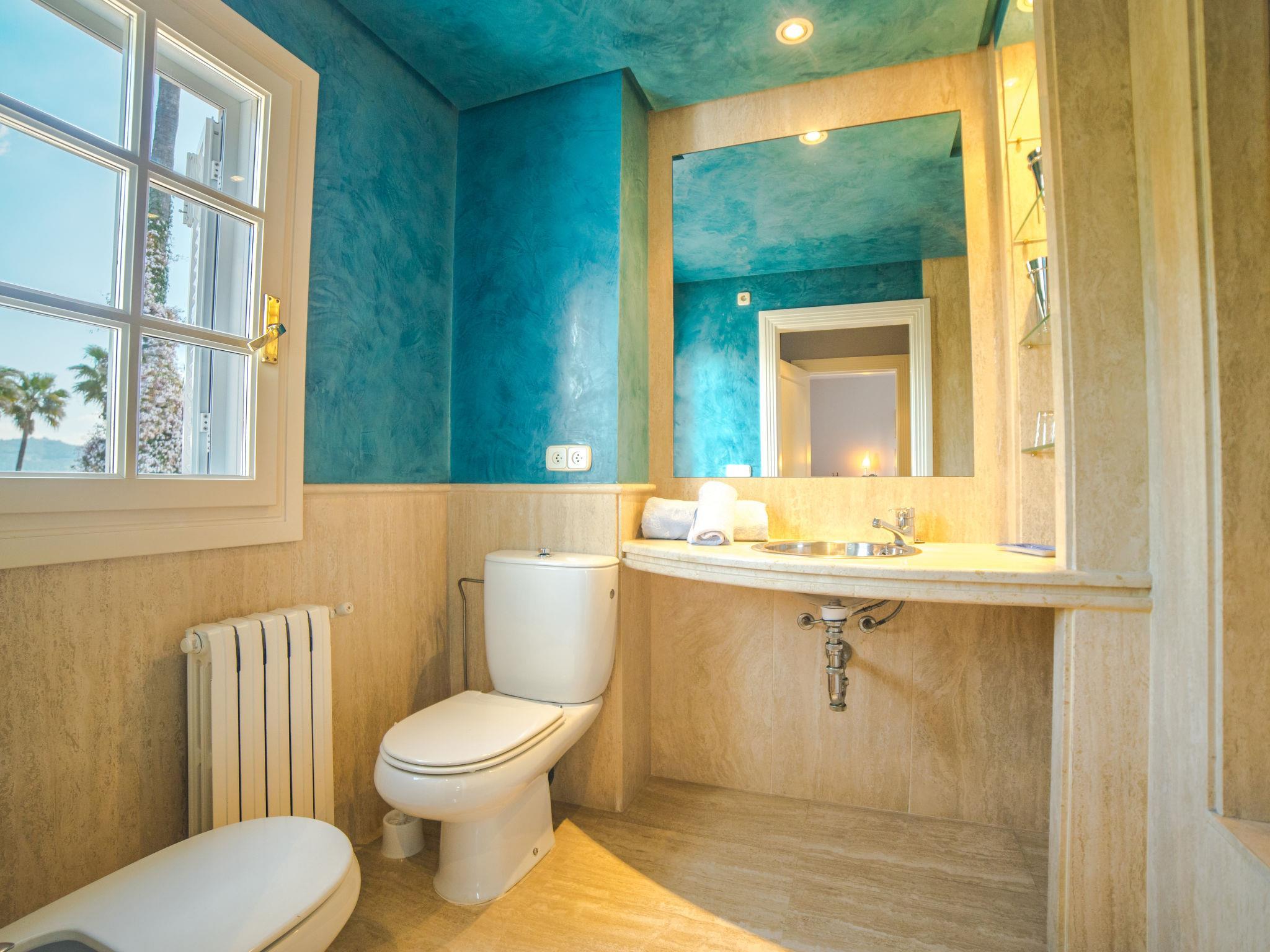 "Villa Can Mandol", 8-room villa 580 m2 on 2 levels. Object suitable for 8 adults. Spacious, very beautiful and luxurious furnishings: large living room with panoramic window with TV (flat screen), air conditioning and forced-air heating. Exit to the patio, to the swimming pool. Large dining room with curtain panoramic window with dining table, air conditioning and forced-air heating. Exit to the patio, to the swimming pool. 1 large double bedroom with panoramic window Dressing room with 1 double bed (200 cm, length 200 cm), bath/shower/WC, double hand-basin, TV, flat screen, air conditioning and forced-air heating. 1 large double bedroom with panoramic window with 2 beds (90 cm, length 200 cm), bath/shower/WC, air conditioning and forced-air heating. Entrance hall with panoramic window. Large kitchen-/living room (oven, dishwasher, microwave, freezer, electric coffee machine, cooking island). Exit to the loggia, to the patio. Bath or shower/WC. Upper floor: 1 large double bedroom with panoramic window with 1 french bed (200 cm, length 200 cm), bath/shower/WC, air conditioning and forced-air heating. 1 large double bedroom with panoramic window with 1 french bed (150 cm, length 200 cm), bath/shower/WC, air conditioning and forced-air heating. Large patio, porch. Terrace furniture, barbecue, deck chairs (8), covered balcony, sitting area. Of the swimming pool, the garden and the resort. Facilities: washing machine, iron, hair dryer. Internet (WiFi, free). Parking (fenced) at the house. Please note: suitable for families. Non-smoking house. ETV/6207 // Reg. Nr.: ESFCTU00000701100012723200000000000000000000ETV/62075