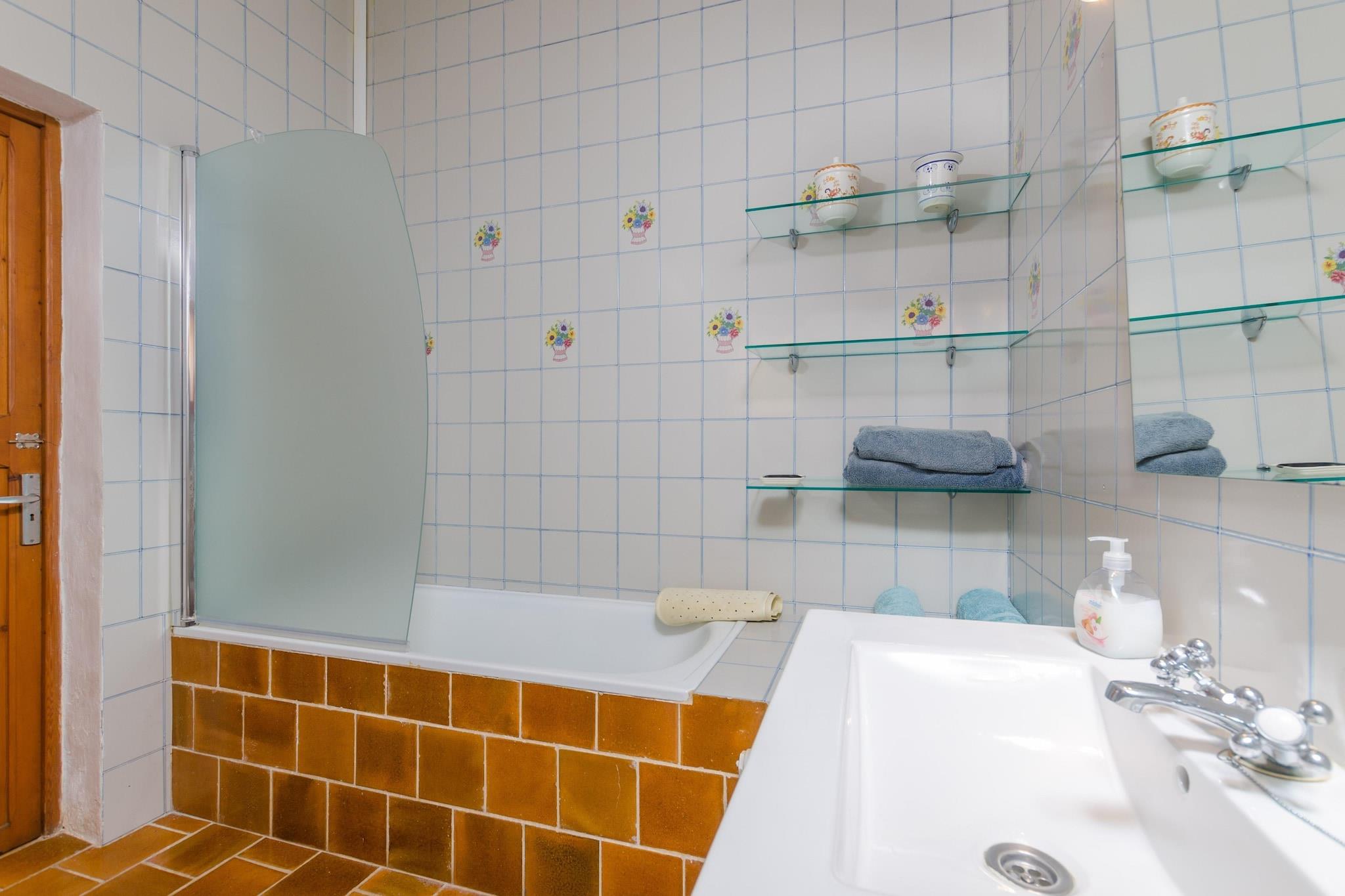 De buitenkant van dit pand is indrukwekkend. De echte ster is naast een majestueus bouwwerk het privé zoutbad van 7 x 3 m en 1 tot 1,7 m diep, waar u na het zonnebaden heerlijk kunt afkoelen. Vervolgens nodigt het terras u uit om heerlijke barbecues te bereiden en de middag door te brengen met kletsen en genieten van het uitzicht. Het huis beschikt over 2 verdiepingen. Vanaf het terras heeft u toegang tot een prachtige, met glas omgeven woon-eetkamer, perfect om tijdens het eten of ontspannen het prachtige uitzicht te bewonderen. Vervolgens komt u in de keuken, traditioneel van stijl en uitgerust met een gasfornuis, die uitkomt op een andere woonkamer, waar u satelliettelevisie kunt kijken of naar muziek kunt luisteren. Deze kamer is voorzien van airconditioning en open haard. De wasruimte beschikt over een wasmachine, strijkijzer en strijkplank. Er is een badkamer met ligbad op deze verdieping en een andere met douche op de bovenverdieping, waar zich ook de 3 slaapkamers met kledingkast bevinden. Twee bieden een tweepersoonsbed en de derde een eenpersoonsbed. Een dubbele biedt airconditioning. Er zijn 11 radiatoren in huis. Er zijn 2 kinderbedjes en 2 kinderstoelen. Het huis draait op zonne-energie. De villa ligt op 4,5 km van Inca, een klein stadje met alles wat u nodig heeft, zoals bars, restaurants, supermarkten, allerlei soorten winkels, enz. Elke donderdagochtend wordt hun traditionele markt gehouden. Omdat ze vrij centraal op het eiland liggen, hebben ze gemakkelijke en snelle toegang in elke richting. Het dichtstbijzijnde strand, Puerto de Alcúdia, ligt op 21,7 km afstand of ongeveer 25-30 minuten rijden. De WIFI heeft een downloadlimiet. Voor eventuele extra kosten kunt u contact opnemen met de adverteerder. Wij accepteren geen huisdieren. Het vieren van evenementen is niet toegestaan. Er is buiten parkeergelegenheid voor 5 auto's. Afstanden Strand: 21,7 km - Puerto de Alcúdia Luchthaven: 41 km - Son Sant Joan Golfbaan: 19,7 km - Pollença Stad: 4,5 km - Inca Treinstation: 4,7 km - Inca Bushalte: 4,7 km - Inca Veerboot: 25,5 km - Puerto de Alcúdia Ziekenhuis: 4,9 km - Inca Toeristenvergunning: ETV/966Bij de ingang dient u de Ecotasa (toeristenbelasting van de Balearen) contant te betalen. Het bedrag varieert tussen EURO 0,55 / per nacht per persoon in het laagseizoen en EURO 2,2 / per nacht per persoon in het hoogseizoen. Vanaf de negende dag wordt het met de helft verminderd. Personen onder de 16 jaar uitgesloten.