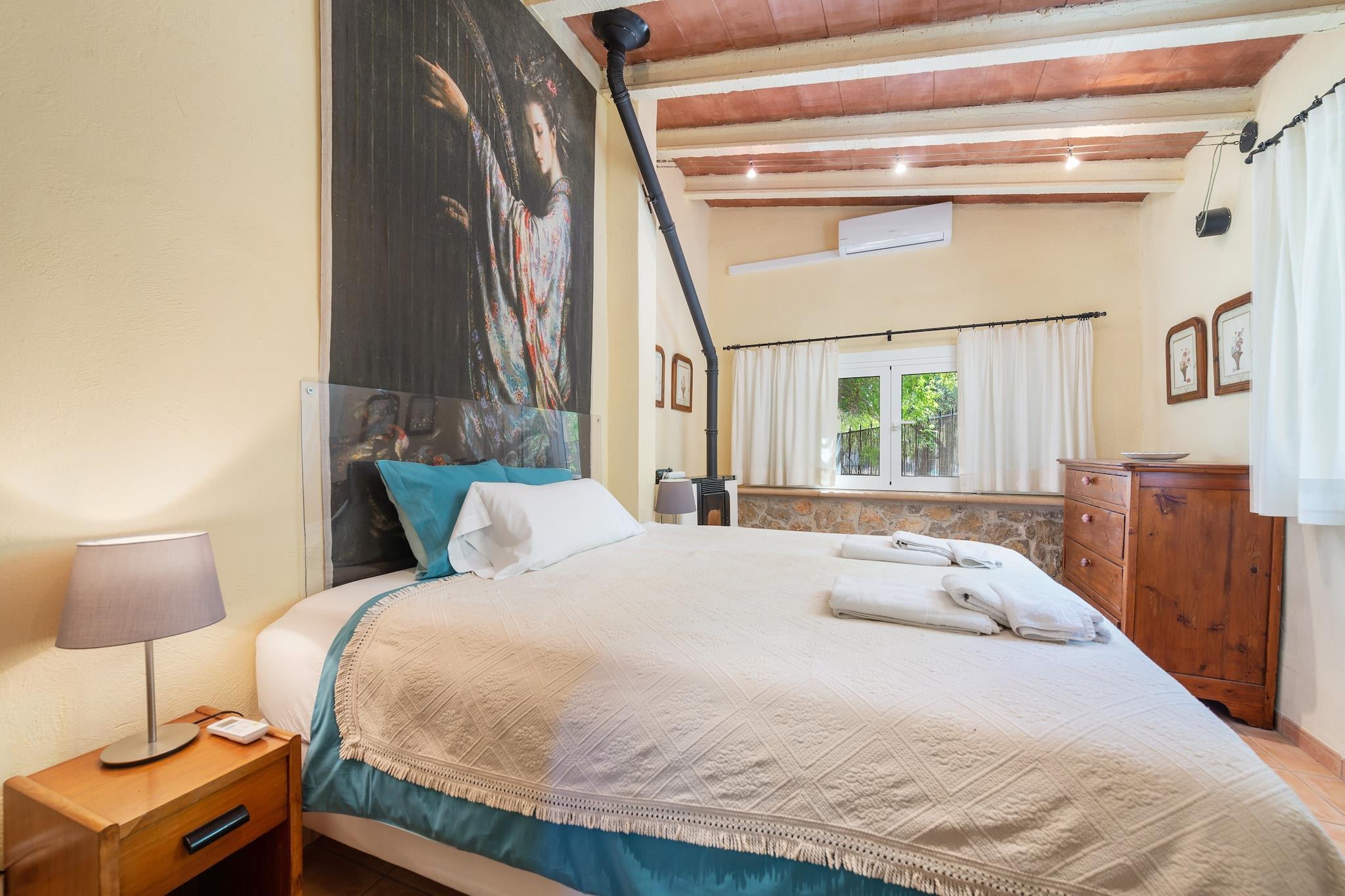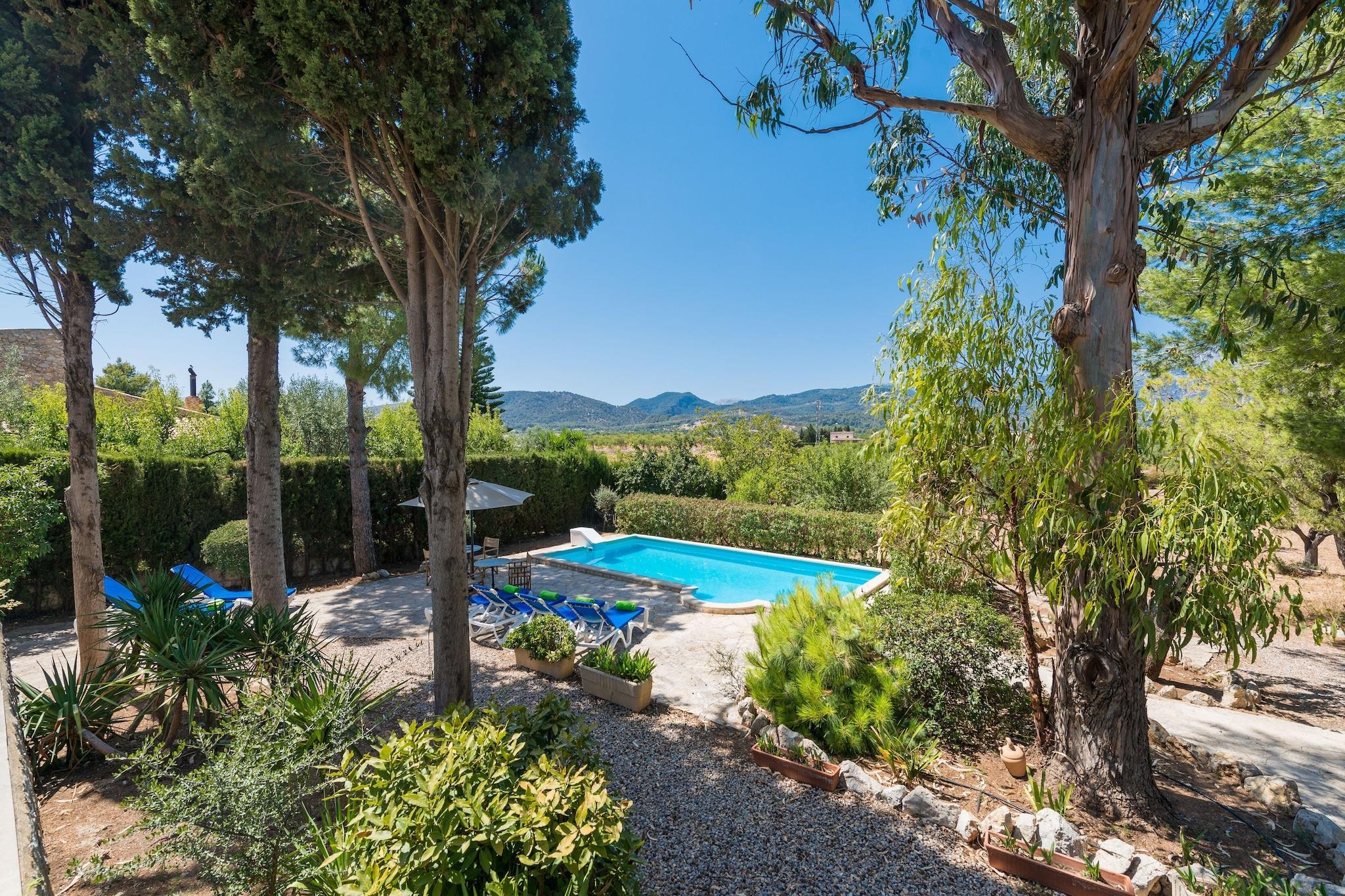 Dit fantastische huis heeft een prachtige buitenkant die een spectaculair uitzicht op de bergen biedt. Zij zullen kunnen genieten van een privé chloorzwembad van 8 x 4 m en met een diepte van 1 tot 2 m. Rondom zonnebaadt u op 6 ligstoelen. Een gemeubileerd terras en veranda nodigen u uit om buiten te genieten van de beste aperitieven, lunches of diners, vooral die bereid op de barbecueplaats. Het perceel is omheind en er zijn directe buren. Het huis is heel eenvoudig en functioneel. Het heeft een grote woon-eetkamer met airconditioning en open haard, waar u ontspannen kunt kijken naar satelliettelevisie of een goed boek kunt lezen. De keuken is inductie. De wasruimte beschikt over een wasmachine, strijkijzer en strijkplank. Er zijn twee slaapkamers met twee eenpersoonsbedden, airconditioning en kledingkast. Eén ervan heeft ook een pelletkachel en een eigen badkamer met douche. Er is een tweede badkamer met ligbad in het huis. Er is 1 kinderbedje, 1 kinderstoel, 3 radiatoren en 3 ventilatoren. Het huis ligt op 1 km van Inca, een kleine stad in het centrum van het eiland, met veel charme, rust en een grote verscheidenheid aan winkels, restaurants, enz. In het centrum, op slechts 2 km afstand, kunt u typische Mallorcaanse gerechten proeven in de bekende "cellers", traditionele restaurants. Ook is het elke donderdagochtend marktdag, die al ruim 7 eeuwen onafgebroken gevierd wordt. Het strand ligt op ongeveer 28 km of 20 minuten met de auto, het dichtstbijzijnde is Puerto de Alcúdia. Voor eventuele extra kosten kunt u contact opnemen met de adverteerder. Wij accepteren geen huisdieren. Het vieren van evenementen is niet toegestaan. Er is buiten parkeergelegenheid voor 5 auto's. Afstanden Strand: 28 km - Puerto de Alcúdia Luchthaven: 38 km - Son Sant Joan Golfbaan: 24,4 km - Golf de Pollença Stad: 2 km - Inca Treinstation: 4 km - Inca Bushalte: 4 km - Inca Veerboot: 29,1 km - Puerto de Alcúdia Ziekenhuis: 3,8 km - Regionaal ziekenhuis van Inca Toeristenvergunning: ETV/4530Bij de ingang dient u de Ecotasa (toeristenbelasting van de Balearen) contant te betalen. Het bedrag varieert tussen EURO 0,55 / per nacht per persoon in het laagseizoen en EURO 2,2 / per nacht per persoon in het hoogseizoen. Vanaf de negende dag wordt het met de helft verminderd. Personen onder de 16 jaar uitgesloten.