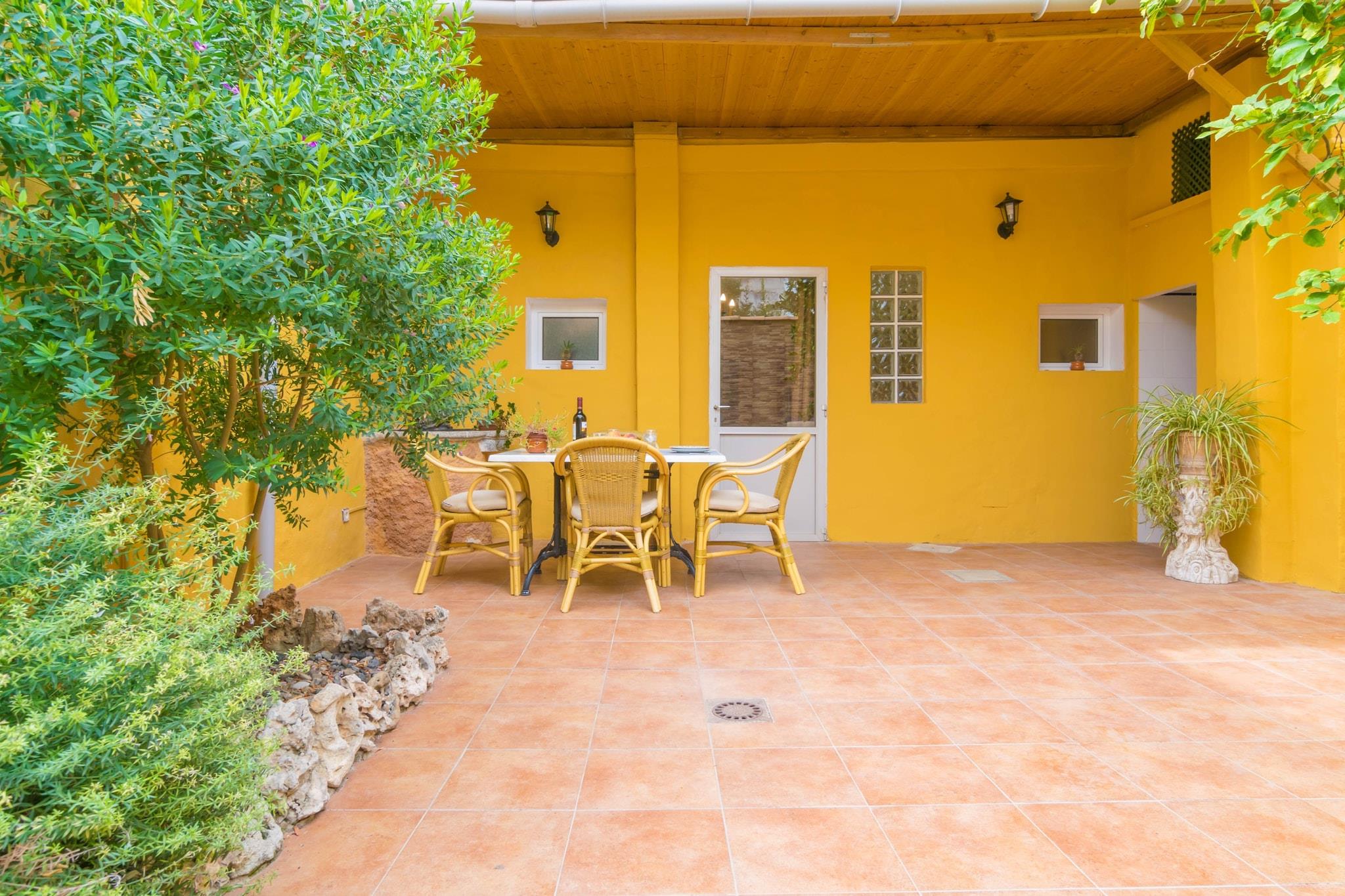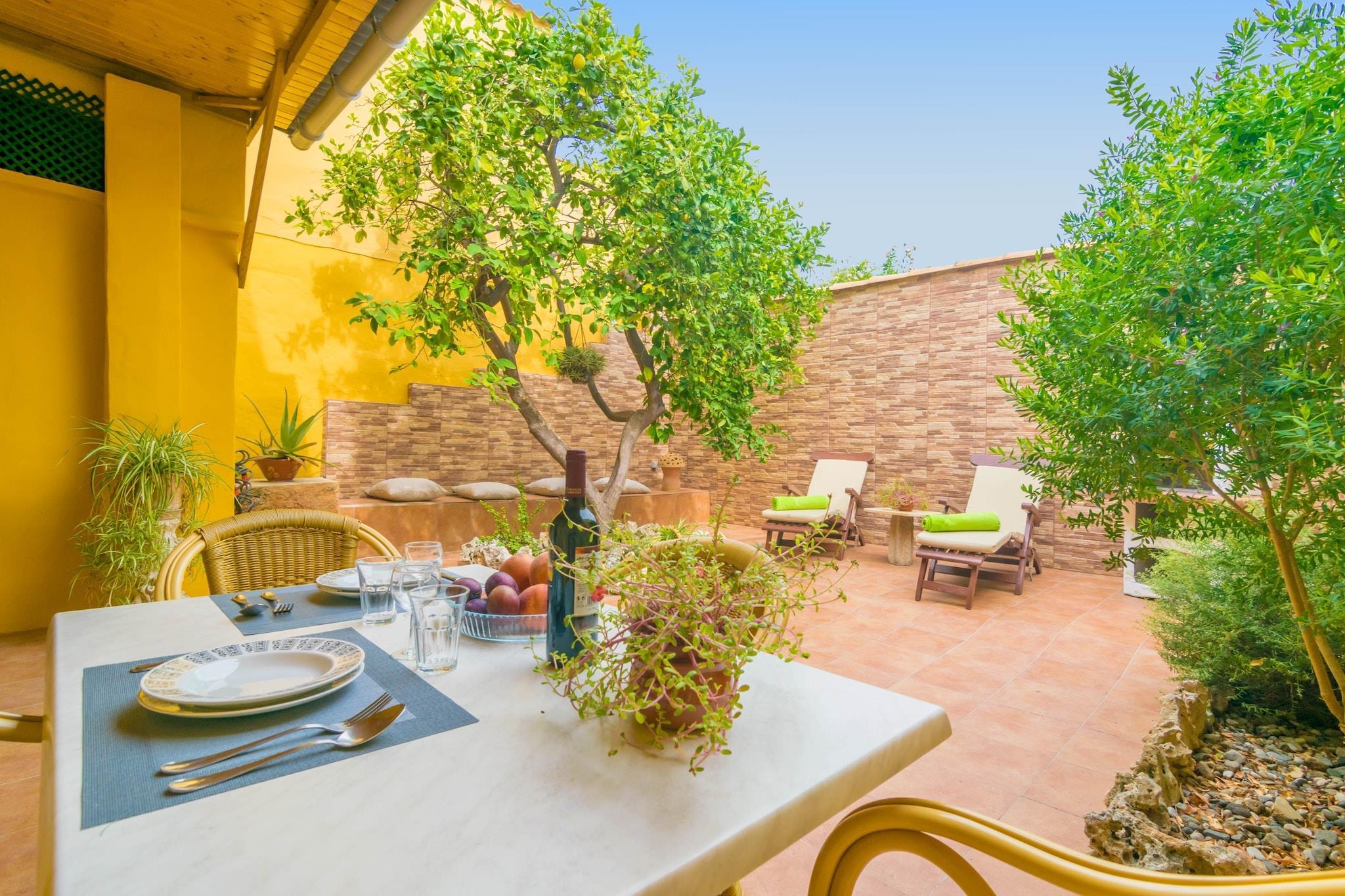Dette er et fantastisk byhus, som ligger i stueetagen i en to-etagers bygning, og bliver derefter et familieligt, roligt og tæt hjørne for at gøre dine drømme til virkelighed på øen. Terrassen er smuk, fordi den er smagfuldt indrettet og møbleret. Kombinationen af stenvæggene med de livlige farver, træerne, de to liggestole til at nyde et stykke tid under solen, den indbyggede bænk til at nyde en god læsning og, det bedste af det hele, grillen til den ægte professionelle kokke af måltider alfresco. Du kan lave mad og nyde de lækre opskrifter under den hyggelige lille veranda. Indenfor er der en indbydende stue med sofa, to lænestole og aircondition, som er det perfekte hjørne til at se satellit-tv, læse en af husets bøger eller bare hvile. Stuen er åben til spisestuen, som er udstyret med et bord med stole og fører på den ene side til terrassen og på den anden side til køkkenet. Denne byder på keramisk kogeplade, ovn, køleskab, opvaskemaskine, kaffemaskine og meget mere, så du kan lave mad, som var du hjemme. Der er et soveværelse til hvile i huset, og det har en dobbeltseng, et klædeskab, en ventilator og plads til at forberede en barneseng, hvis du rejser med din baby. Endelig er der brusebadeværelse til hele boligen. Huset ligger cirka 200 meter fra centrum af denne dejlige og fascinerende by, så du kan tage en skøn tur gennem de charmerende gader fyldt med alle slags butikker: mode, mad, sko, barer, caféer og specielt mallorcanske restauranter, hvor du kan prøv vores bedste retter. Turistlicens: ETVPL/12686 Som reaktion på Coronavirus (COVID-19) er yderligere sikkerheds- og sanitære foranstaltninger i kraft på denne ejendom.