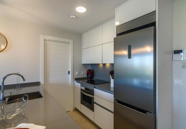 In the vitroceramic open plan kitchen, refrigerator, microwave, oven, freezer, washing machine, dishwasher, dishes/cutlery, kitchen utensils, coffee machine, toaster, kettle and juicer are provided.