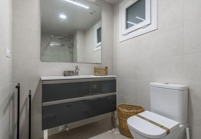 The American kitchen is fully equipped with state-of-the-art appliances, including washing machine, dryer, dishwasher, oven, microwave and a complete set of kitchenware. Additionally, it has WiFi connection and an iron for greater comfort. The accommodation stands out for its 35m² terrace and enclosed garden, perfect for enjoying outdoor moments.
