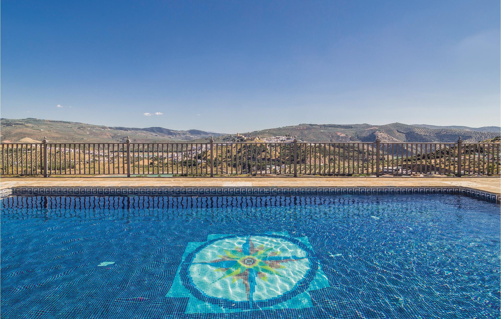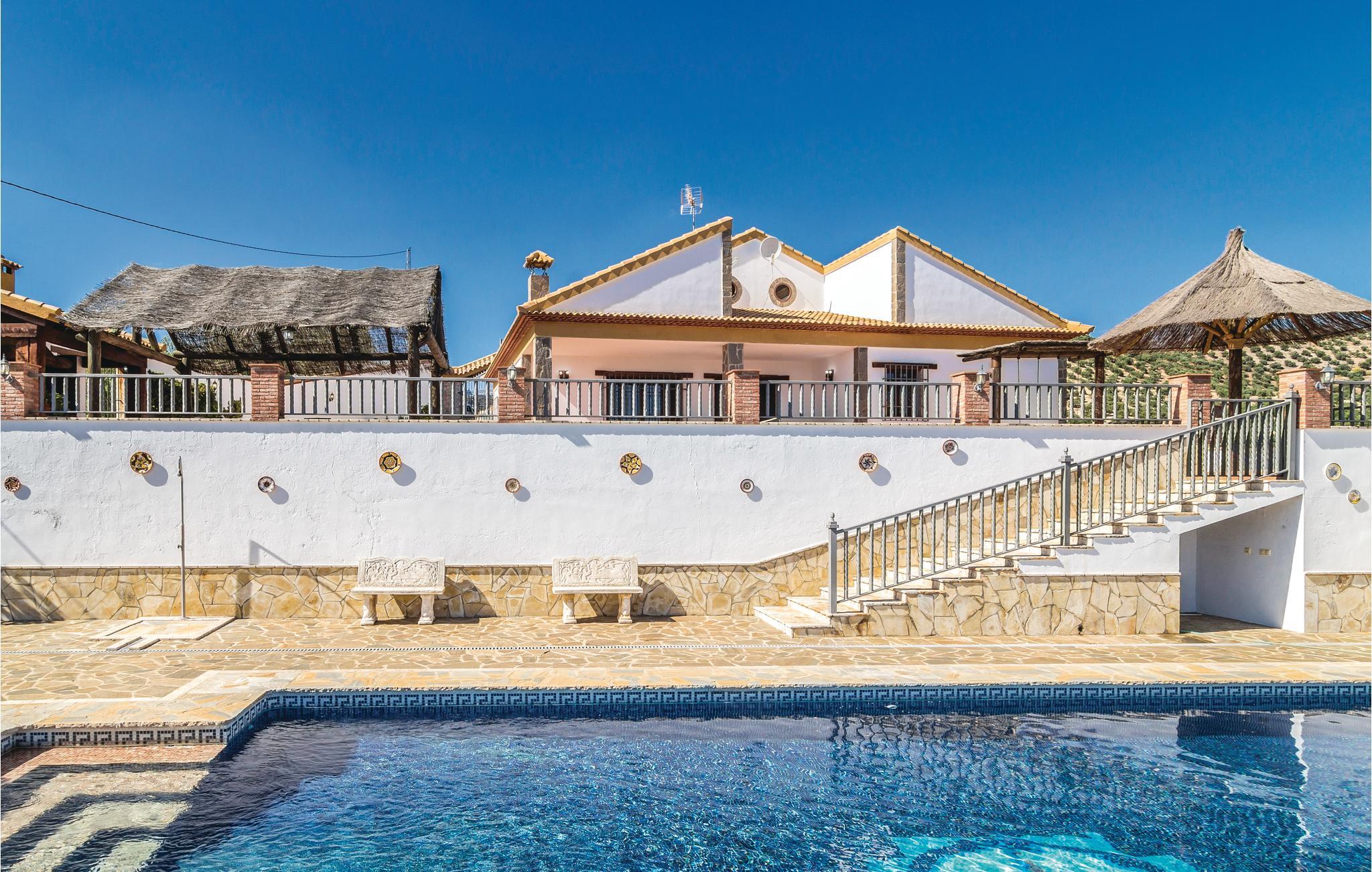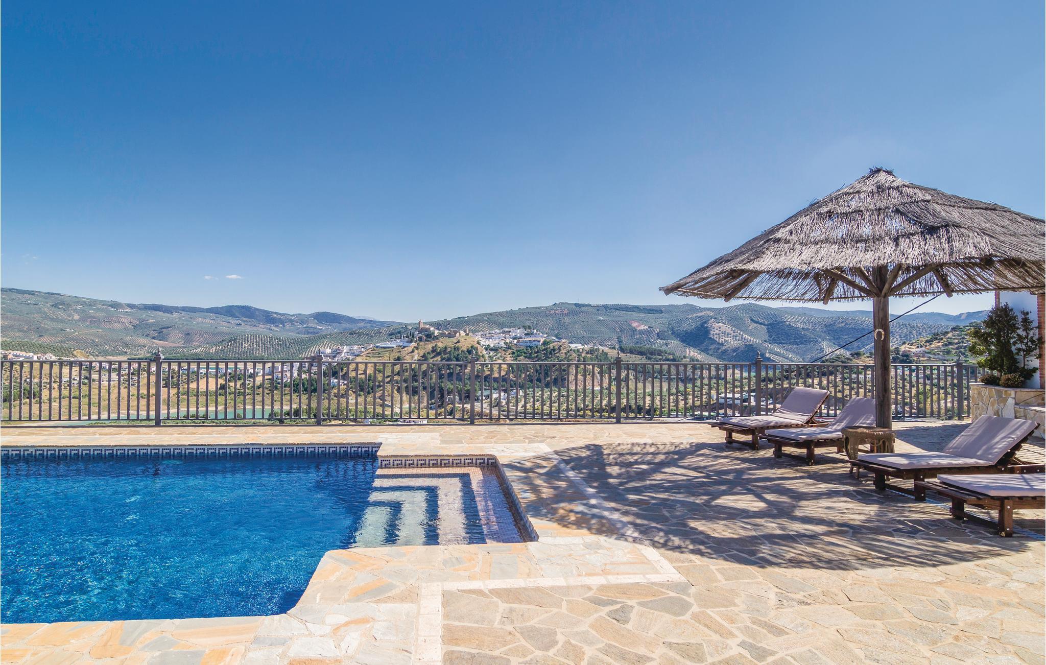Med sin spektakulære panoramaudsigt over søen, bjergene og byen Iznájar tilbyder denne villa det perfekte sted at udforske Andalusien. Huset ligger mellem byerne Cordoba, Malaga, Sevilla og Granada og selvfølgelig er det tæt på mange andre interessante steder som El Torcal de Antequera. Der er også en stor parkeringsplads, som er omgivet af vægge og hegn.