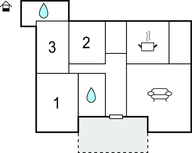 Soveværelse 12m2 (nr. 2) - 1 Soveplads. (Enkeltseng(e)). 2 Sovepladser. (Dobbeltseng(e)).