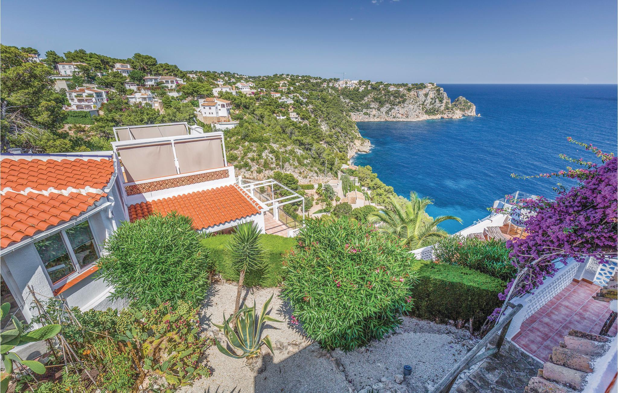 Højt over havet, med en helt utrolig flot panoramaudsigt ligger dette anlæg, hvor vi udlejer i alt seks huse. Hvert hus har både separat indgang og sin helt egen terrasse. Den dejlige pool, som er opvarmet af solenergi, og udeområdet bliver alene benyttet af lejerne. I et af husene bor viceværten, som tager imod jer, når I ankommer, samt sørger for, at poolen er ren og haven velplejet. Husene ligger på en lille privatvej i absolut rolige omgivelser. Når det er weekend, kan man være heldig at se de mange lystsejlere. Mod syd i retning af Javea er der mange gode restauranter og naturligvis især Javea med sin skønne strand, mange kulinariske lækkerier og kulturelle tilbud af mange slags. Spørg om børneseng. Alle gæster får en velkomstpakke.