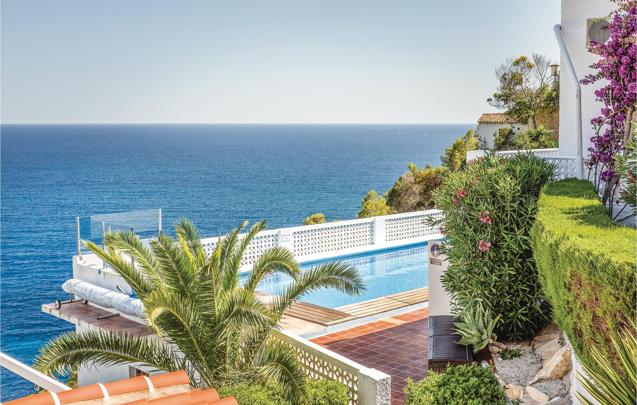 Højt over havet, med en helt utrolig flot panoramaudsigt ligger dette anlæg, hvor vi udlejer i alt seks huse. Hvert hus har både separat indgang og sin helt egen terrasse. Den dejlige pool, som er opvarmet af solenergi, og udeområdet bliver alene benyttet af lejerne. I et af husene bor viceværten, som tager imod jer, når I ankommer, samt sørger for, at poolen er ren og haven velplejet. Husene ligger på en lille privatvej i absolut rolige omgivelser. Når det er weekend, kan man være heldig at se de mange lystsejlere. Mod syd i retning af Javea er der mange gode restauranter og naturligvis især Javea med sin skønne strand, mange kulinariske lækkerier og kulturelle tilbud af mange slags. Spørg om børneseng. Alle gæster får en velkomstpakke. Det er muligt at oplade elbil i anlægget.