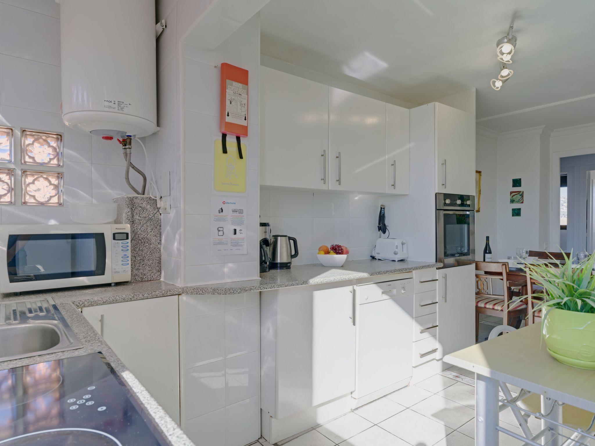 4-room apartment 75 m2 on 5th floor. Bright, practical and comfortable furnishings: living room with satellite TV, digital TV, DVD and air conditioning. Exit to the balcony. 1 room with 2 pull-out beds and fan. Exit to the balcony. 2 rooms, each room with 1 french bed (160 cm, length 200 cm), fan. Kitchen-/living room (oven, dishwasher, 3 ceramic glass hob hotplates, microwave, freezer). Bath/bidet/WC, shower/WC. Air-conditioning, forced-air heating. No heating option Heating not available in all rooms. Balcony 8 m2. Balcony furniture. Side view of the sea and the countryside. Facilities: washing machine, iron, hair dryer. Internet (WiFi, free). Parking space n 10 (roofed, fenced). Please note: non-smokers only. Maximum 1 pet/ dog allowed. TV only ES, EN. AT-465307-A // Reg. Nr.: ESFCTU00000307100031893500000000000000000000000000000