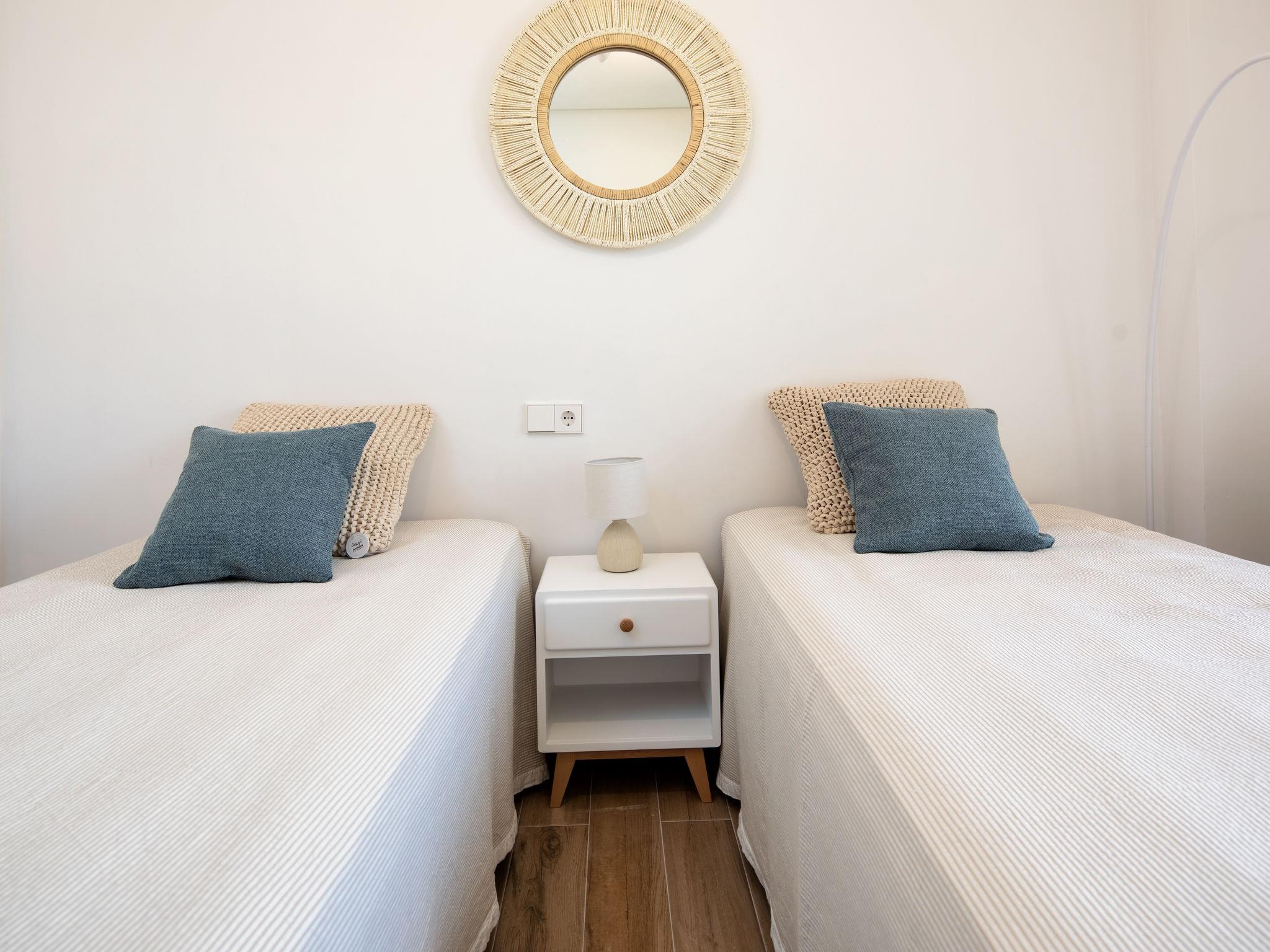 "Javea Marmara SunSea", 3-room apartment 80 m2 on 1st floor. Spacious and bright, fully renovated in 2019, very beautiful and luxurious furnishings: living/dining room with satellite TV, digital TV, air conditioning and forced-air heating. Exit to the terrace. 1 room with 1 french bed (160 cm, length 200 cm), shower/WC, air conditioning and forced-air heating. Exit to the terrace. 1 room with 2 beds (90 cm, length 200 cm), air conditioning and forced-air heating. Large kitchen (oven, dishwasher, 3 induction hot plates, toaster, kettle, microwave, freezer, electric coffee machine). Shower/WC. Large terrace. Terrace furniture. View of the swimming pool and the garden. Facilities: washing machine, iron, baby cot, hair dryer. Internet (WiFi, free). Parking space n 28. VT-495217-A // Reg. Nr.: ESFCTU00000307100059053900000000000000000VT-495217-A1