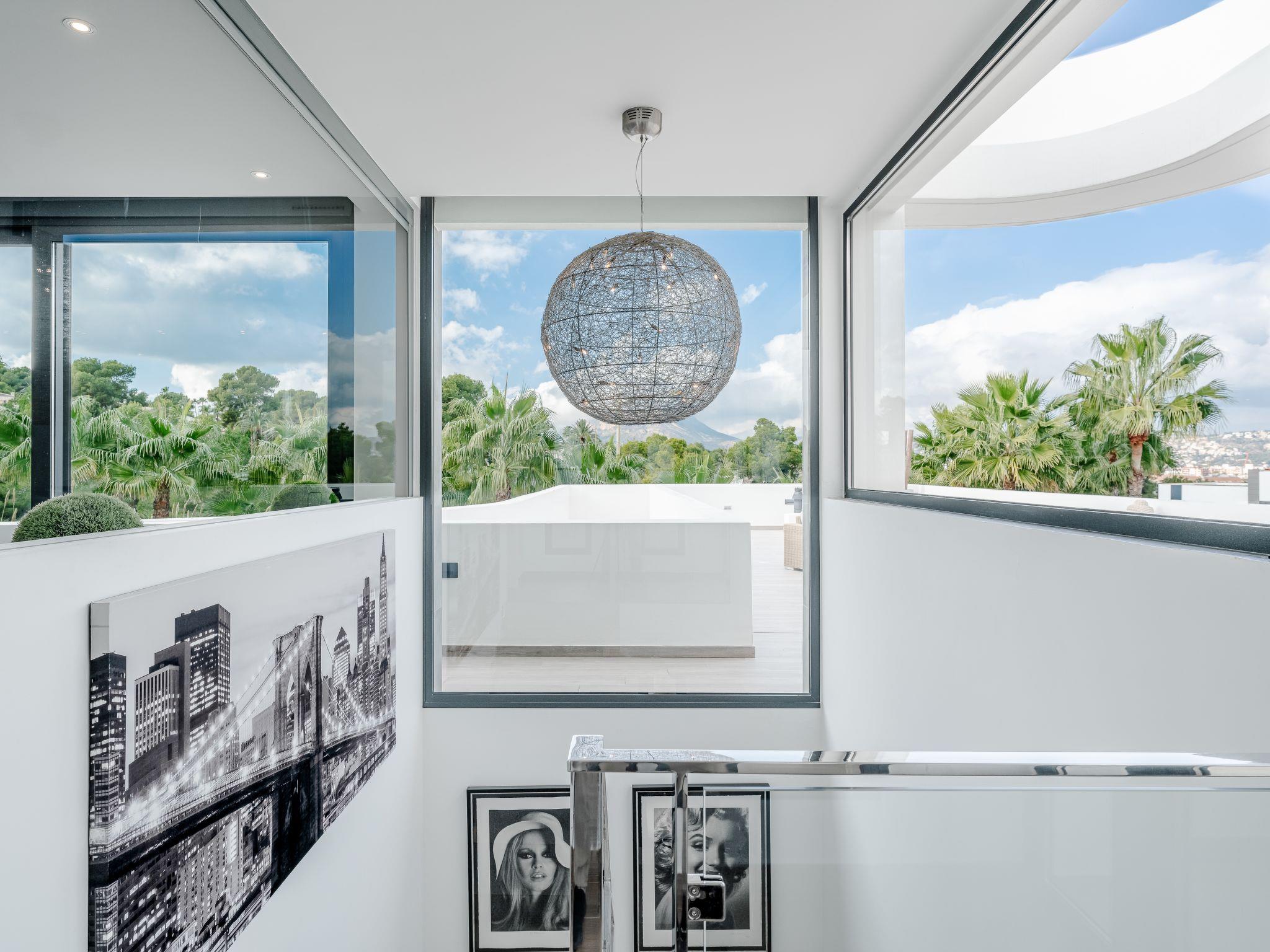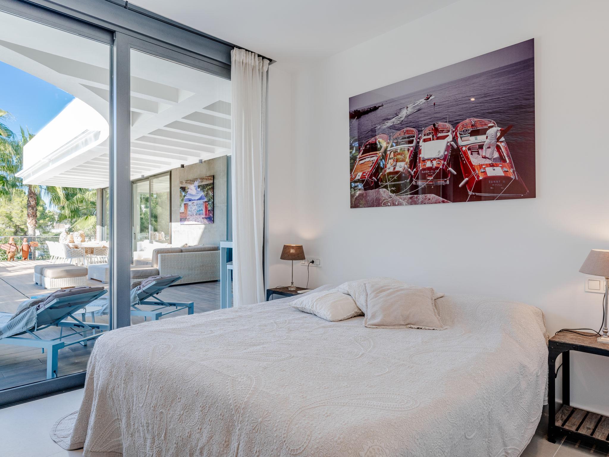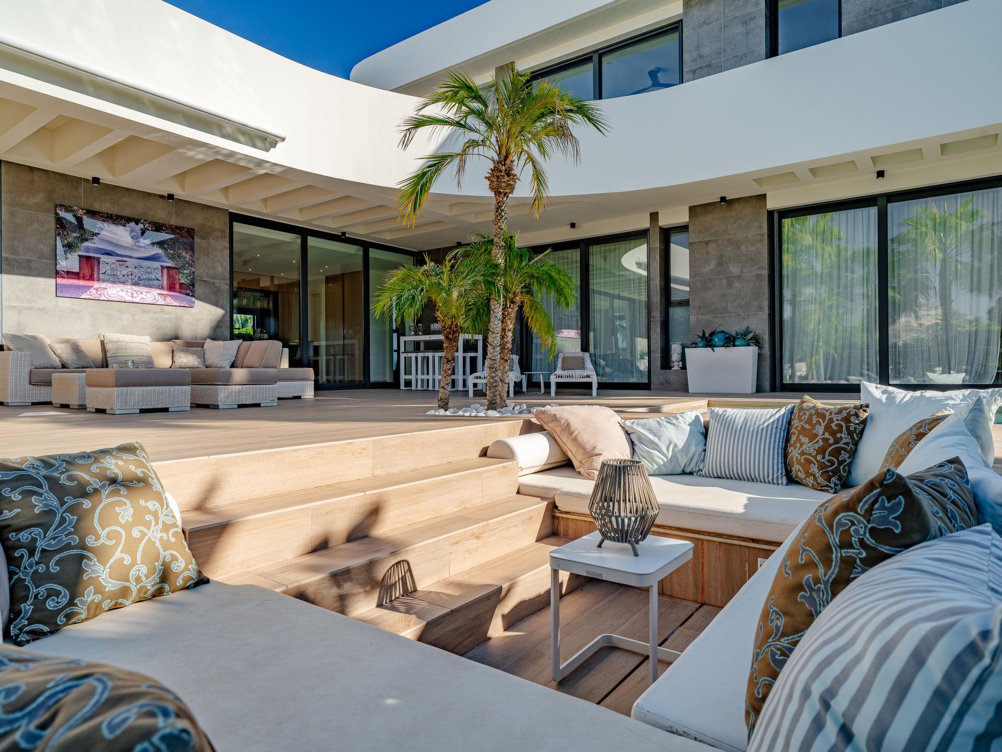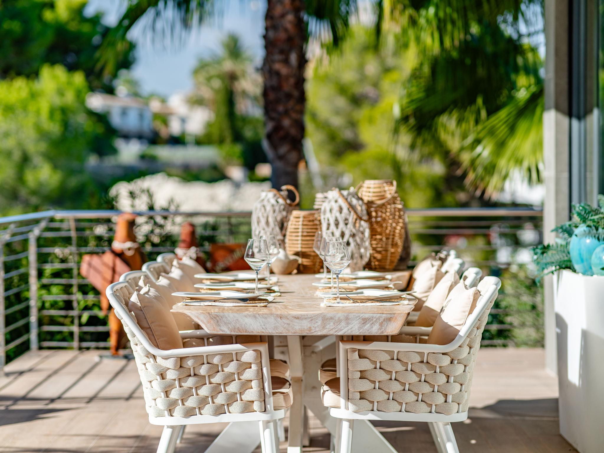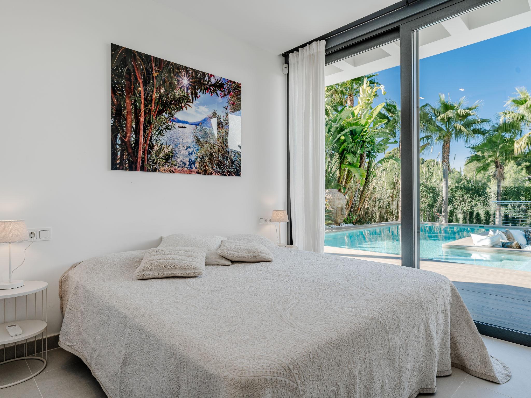 Very large, very modern, luxurious villa "Essence", 2 storeys. In the district of Adsubia, in the resort 1.3 km from the centre of Playa del Arenal Javea, in a quiet, sunny position, 1.3 km from the sea. Private: large, beautiful, well-kept terraced garden, swimming pool angular (9 x 4 m, depth 40 - 250 cm, seasonal availability: 01.Jan. - 31.Dec.) with internal staircase. Outdoor shower, garden furniture, barbecue, parking on the premises. Shop 1.3 km, supermarket 210 m, restaurant 300 m, café 600 m, bus stop 950 m, sandy beach "Arenal" 1.3 km, rocky beach "Cala Blanca" 1.7 km. Sports harbour 1.5 km, golf course (18 hole) 5 km, surf school 1.5 km, tennis 1.6 km. The owner does not accept any youth groups.