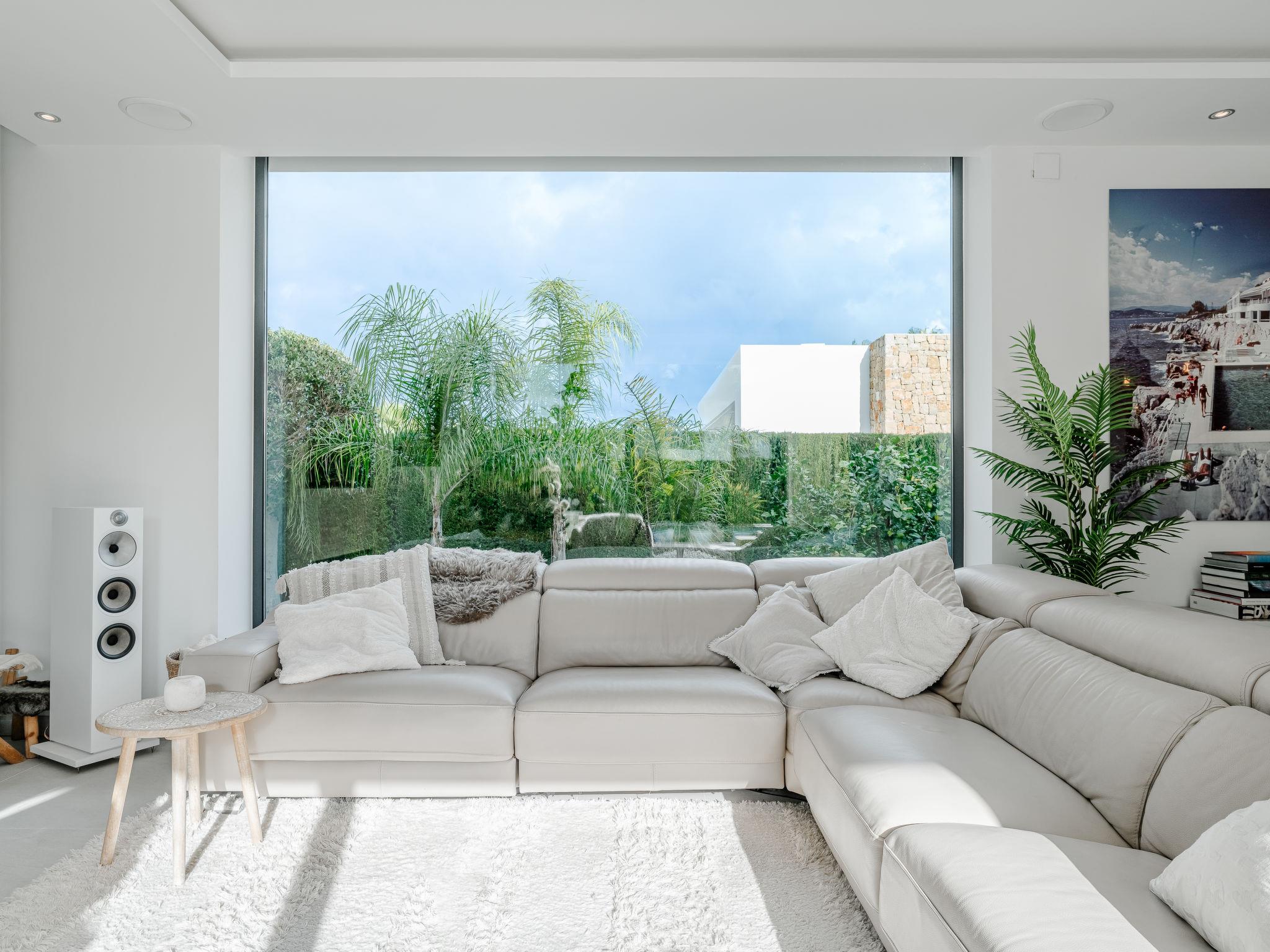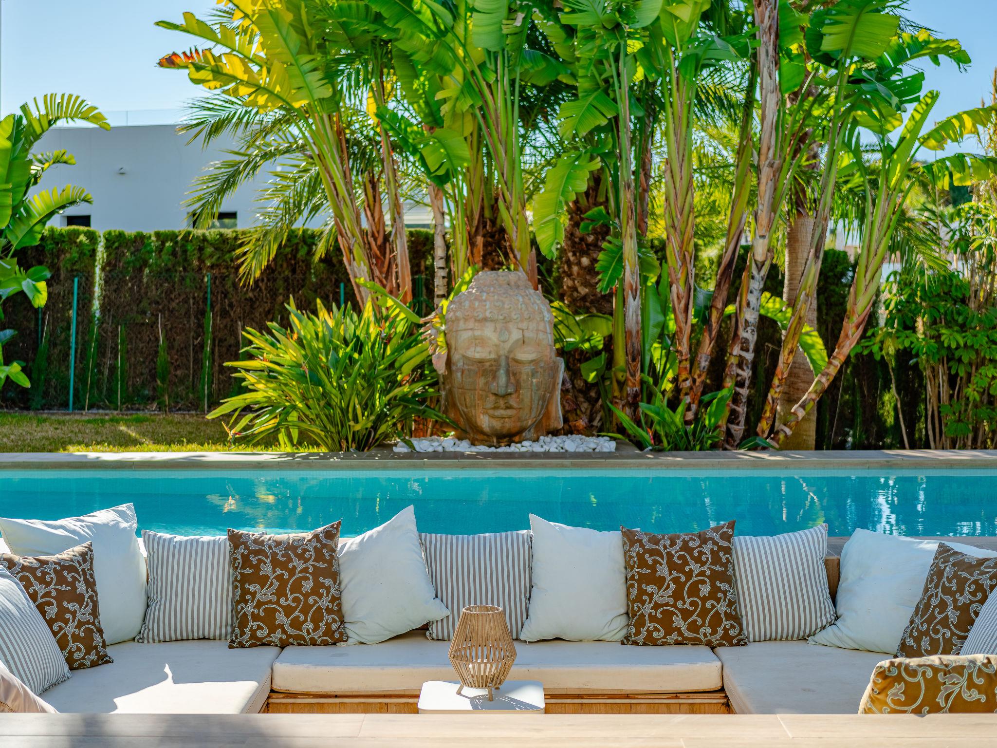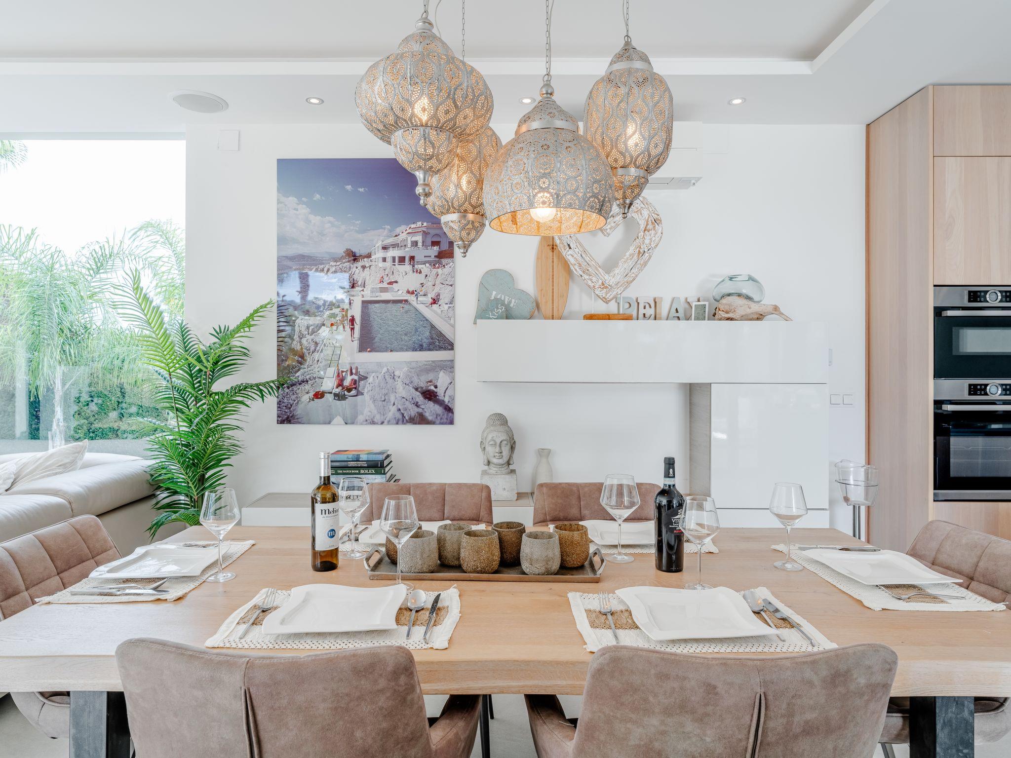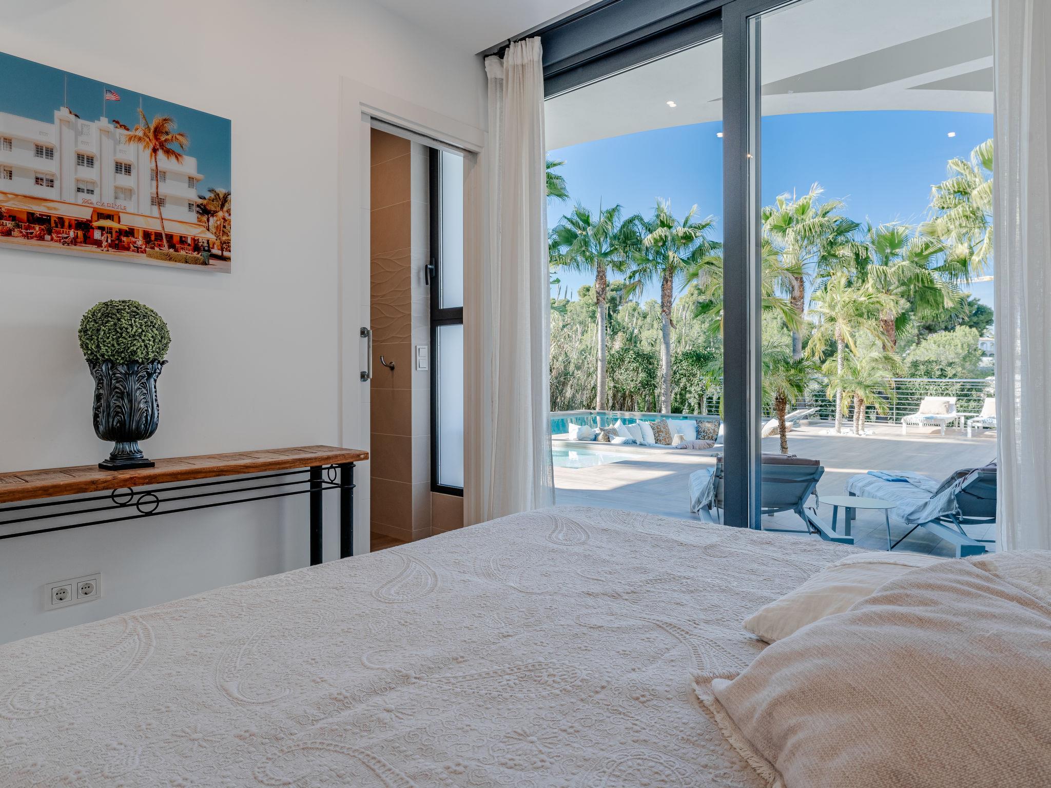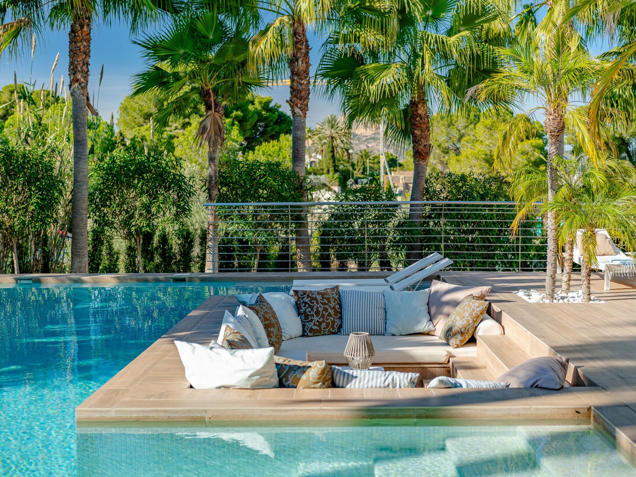 Very large, very modern, luxurious villa "Essence", 2 storeys. In the district of Adsubia, in the resort 1.3 km from the centre of Playa del Arenal Javea, in a quiet, sunny position, 1.3 km from the sea. Private: large, beautiful, well-kept terraced garden, swimming pool angular (9 x 4 m, depth 40 - 250 cm, seasonal availability: 01.Jan. - 31.Dec.) with internal staircase. Outdoor shower, garden furniture, barbecue, parking on the premises. Shop 1.3 km, supermarket 210 m, restaurant 300 m, café 600 m, bus stop 950 m, sandy beach "Arenal" 1.3 km, rocky beach "Cala Blanca" 1.7 km. Sports harbour 1.5 km, golf course (18 hole) 5 km, surf school 1.5 km, tennis 1.6 km. The owner does not accept any youth groups.