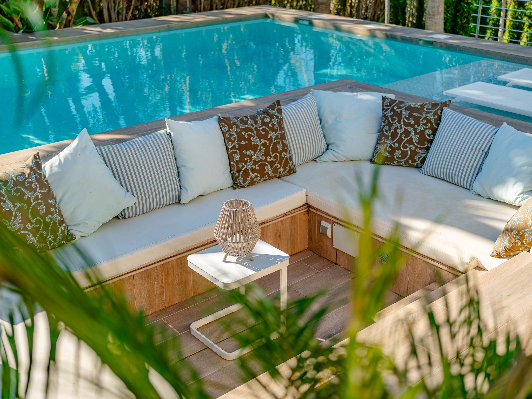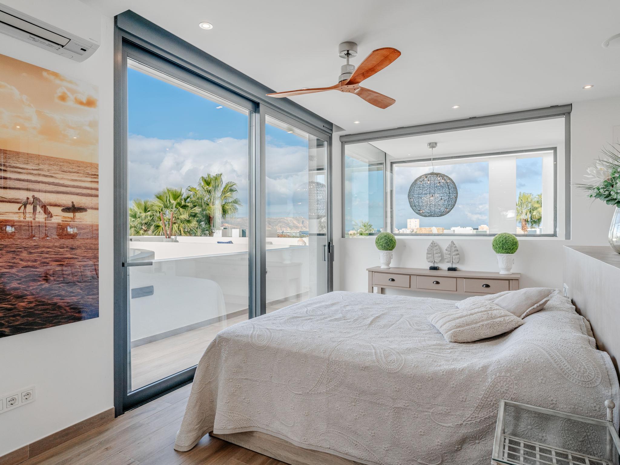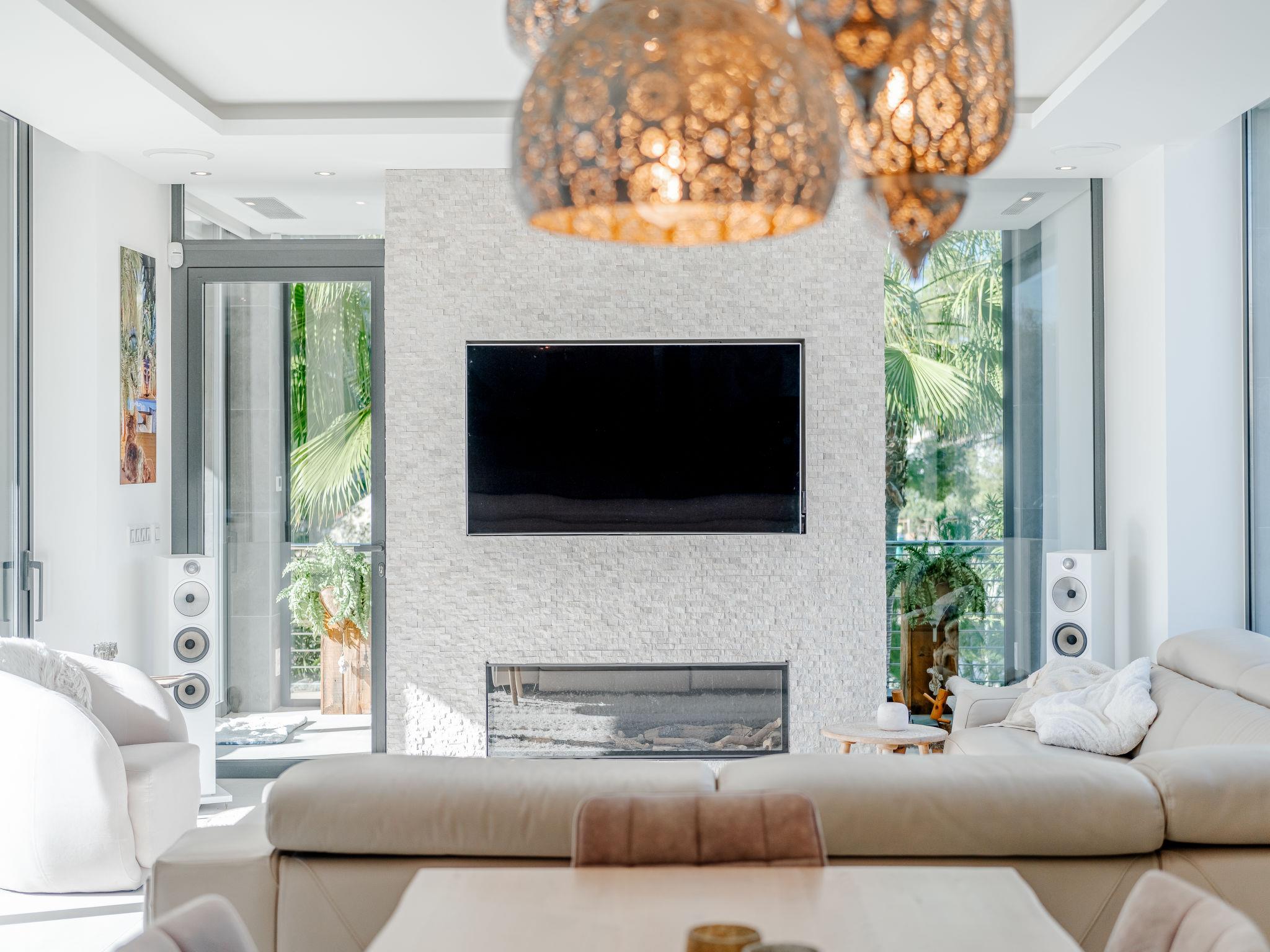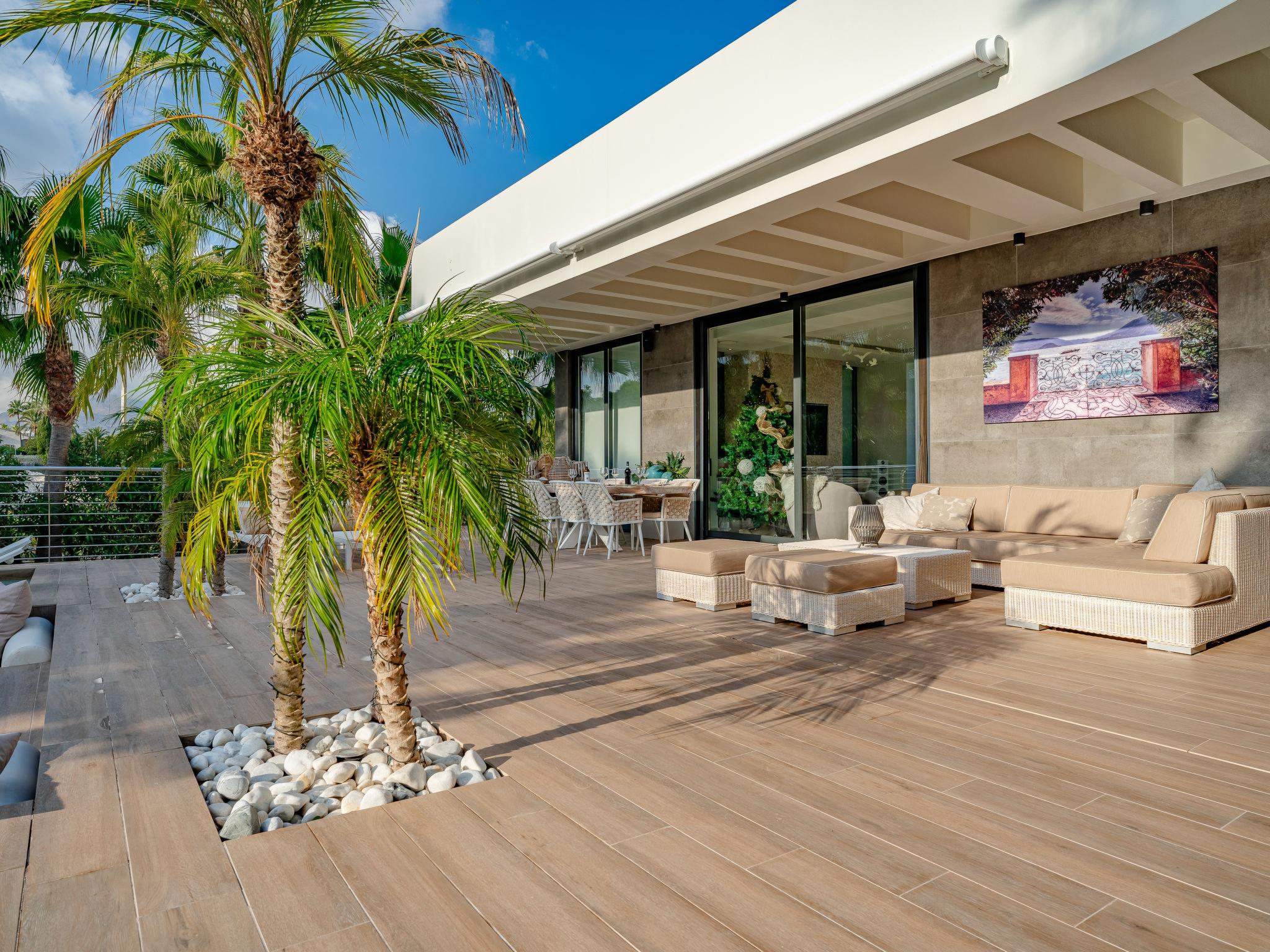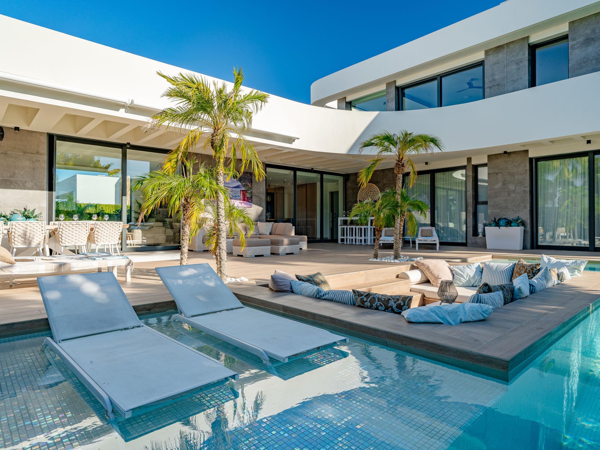 Very large, very modern, luxurious villa "Essence", 2 storeys. In the district of Adsubia, in the resort 1.3 km from the centre of Playa del Arenal Javea, in a quiet, sunny position, 1.3 km from the sea. Private: large, beautiful, well-kept terraced garden, swimming pool angular (9 x 4 m, depth 40 - 250 cm, seasonal availability: 01.Jan. - 31.Dec.) with internal staircase. Outdoor shower, garden furniture, barbecue, parking on the premises. Shop 1.3 km, supermarket 210 m, restaurant 300 m, café 600 m, bus stop 950 m, sandy beach "Arenal" 1.3 km, rocky beach "Cala Blanca" 1.7 km. Sports harbour 1.5 km, golf course (18 hole) 5 km, surf school 1.5 km, tennis 1.6 km. The owner does not accept any youth groups.