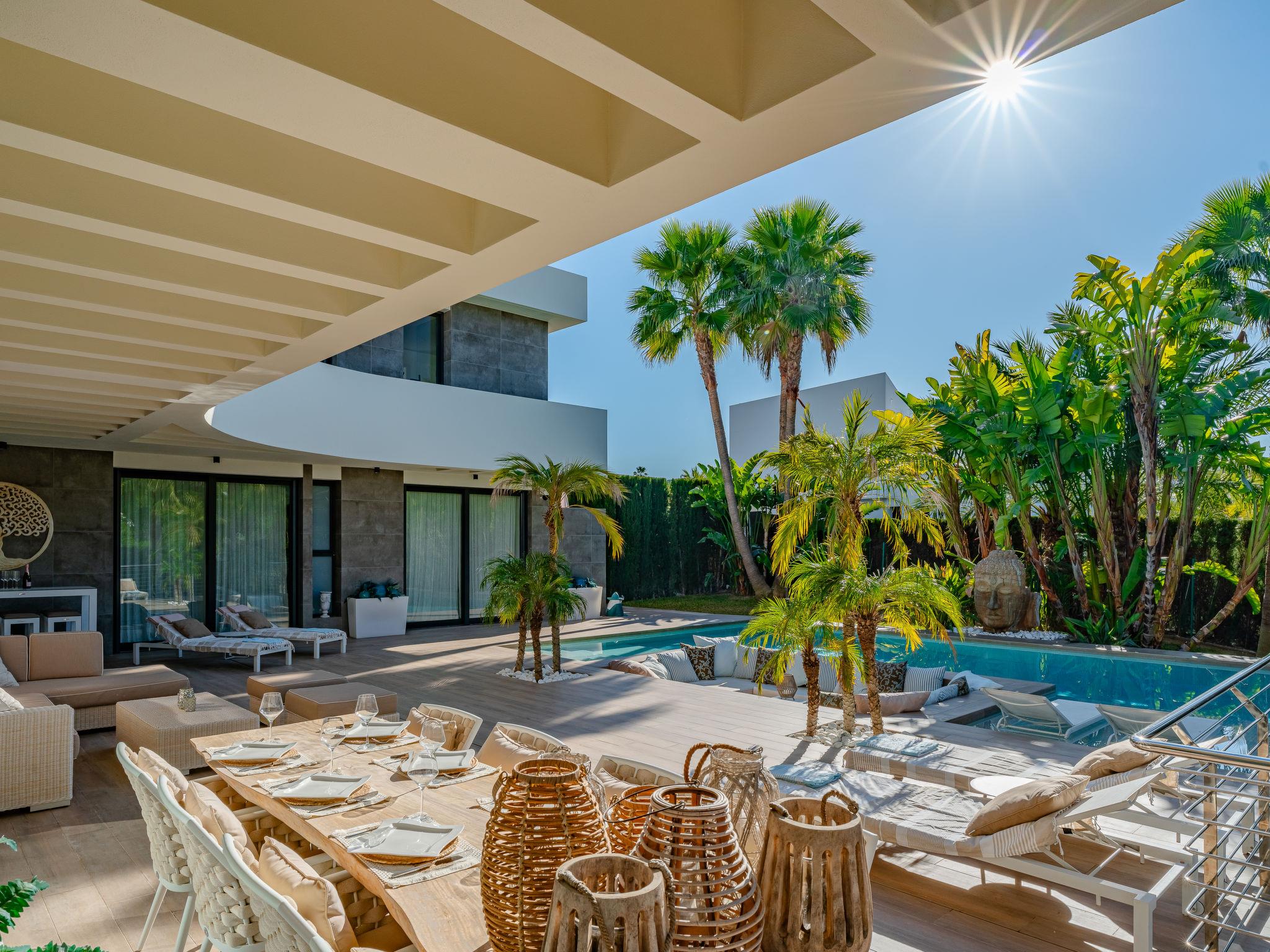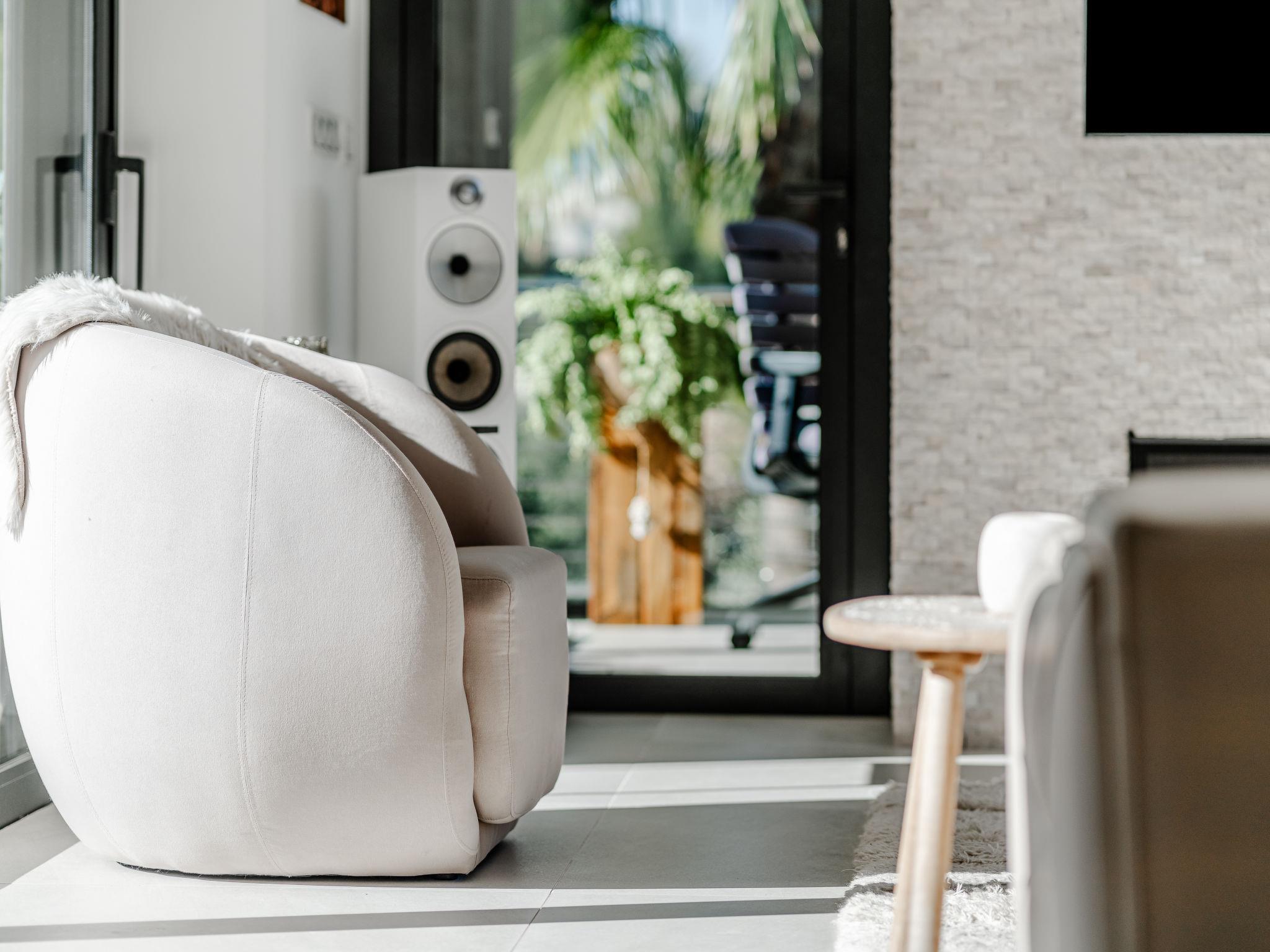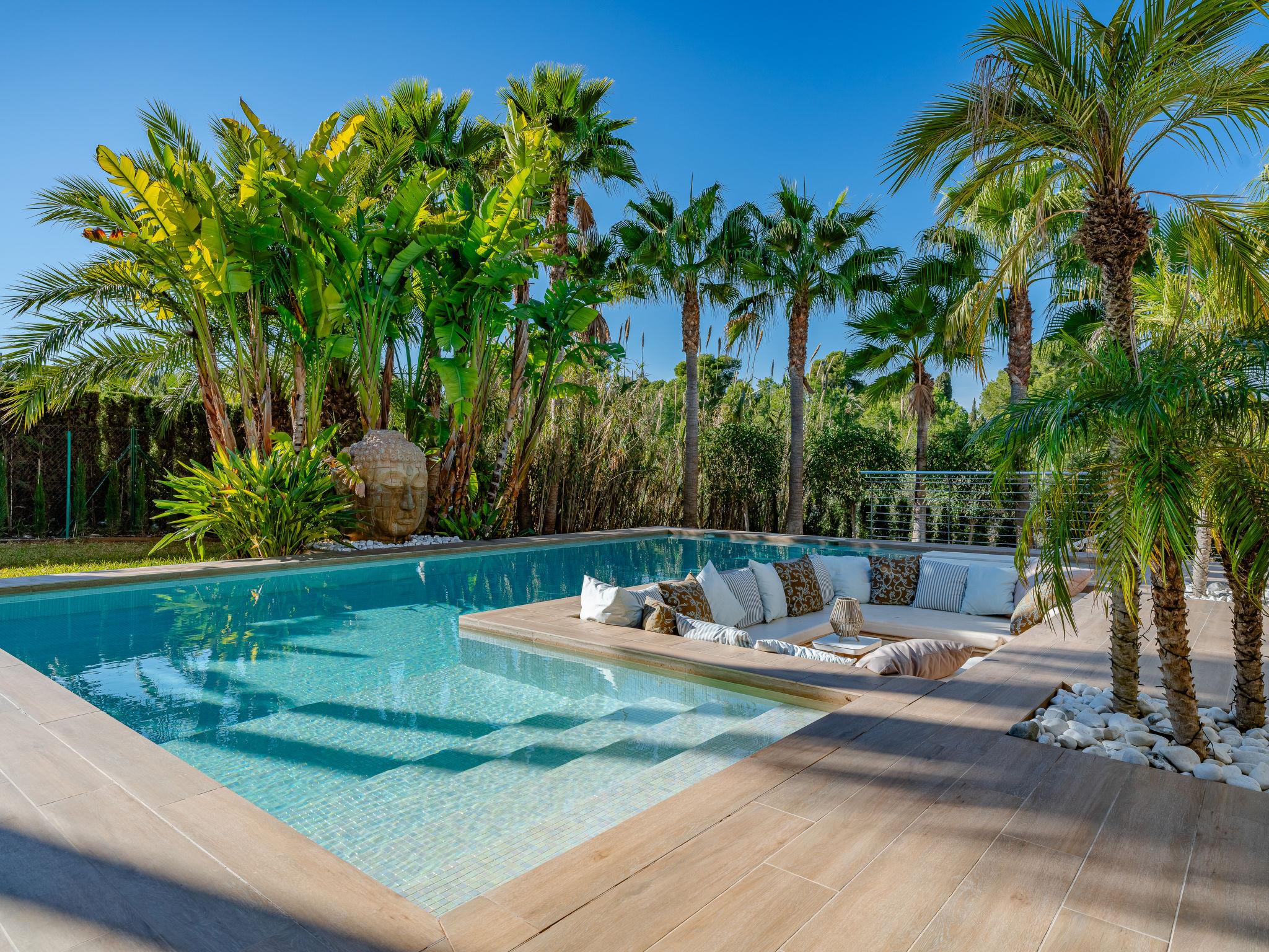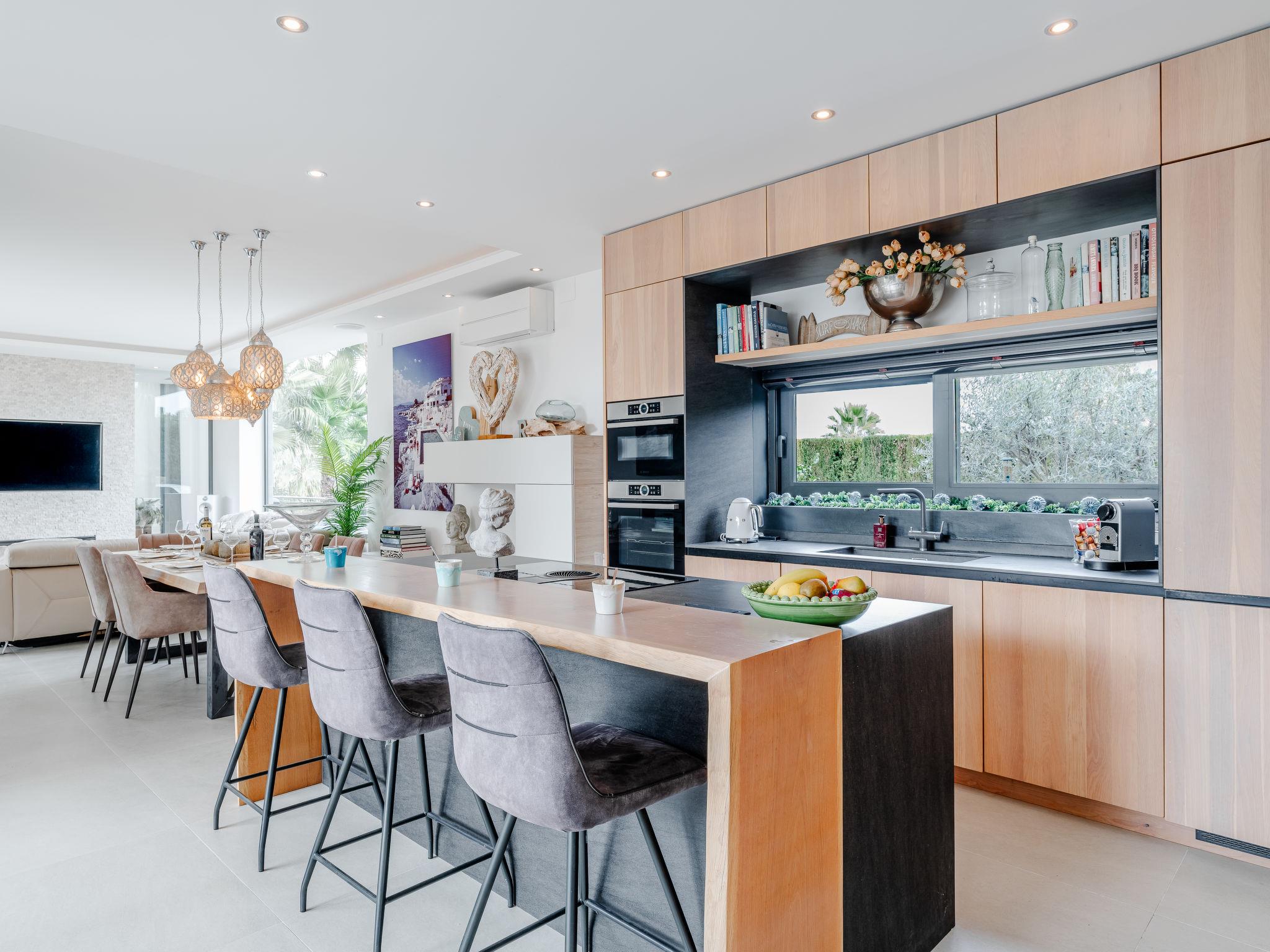 "Villa Essence", 4-room villa 220 m2 on 2 levels. Spacious and bright, very modern and stylish furnishings: living/dining room with satellite TV, air conditioning and forced-air heating. Exit to the terrace, to the swimming pool. 1 room with 1 french bed (2 x 90 cm, length 200 cm), shower/WC, air conditioning, fan and forced-air heating. Exit to the terrace, to the swimming pool. 1 room with 1 double bed (2 x 90 cm, length 200 cm), bath/shower/WC, air conditioning, fan and forced-air heating. Exit to the terrace, to the swimming pool. Large, open kitchen (oven, dishwasher, 5 induction hot plates, toaster, kettle, microwave, freezer, electric coffee machine, cooking island) with air conditioning and forced-air heating. Exit to the patio, to the swimming pool. Upper floor: 1 room 100 m2 with Dressing room with 1 french bed (180 cm, length 200 cm), separate WC, shower, air conditioning, fan and forced-air heating. Exit to the terrace. Large terrace, large garden. Terrace furniture, barbecue, deck chairs, sitting area. Very beautiful view of the mountains, the swimming pool and the garden. Facilities: washing machine, dryer, iron, children's high chair, baby cot, hair dryer. Internet (WiFi, free). Parking. VT-498490-A // Reg. Nr.: ESFCTU00000307100093229200000000000000000VT-498490-A1