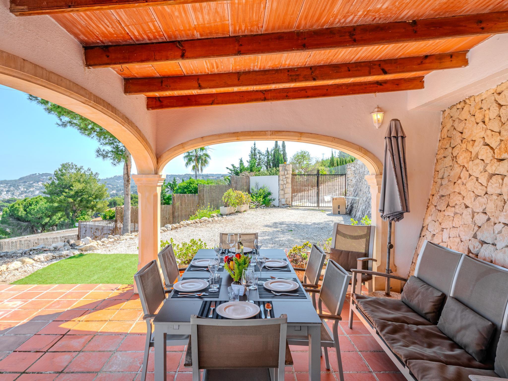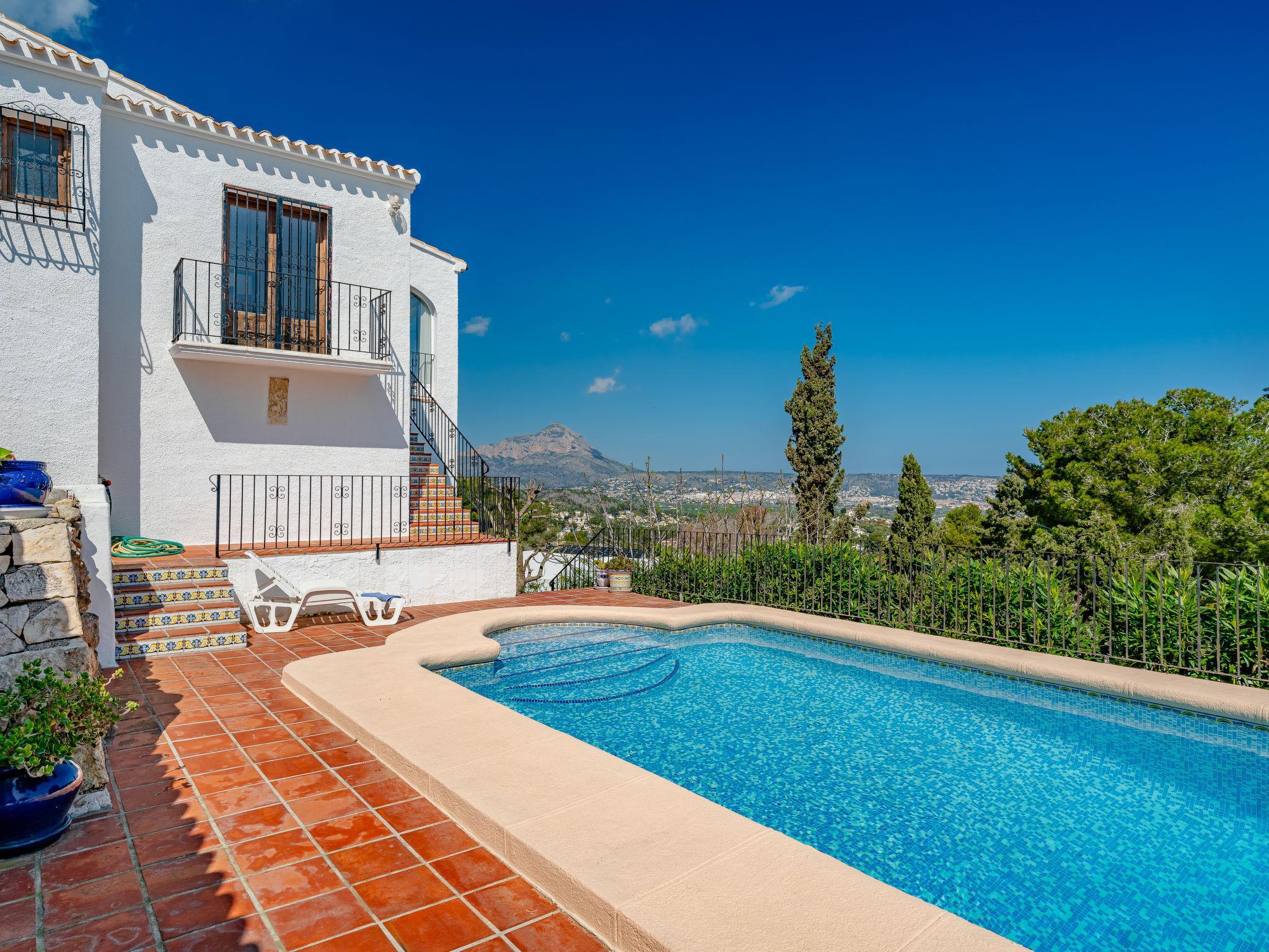 Large, very beautiful, cosy house "Tosalans". In the district of Adsubia, in the resort 3 km from the centre of Javea - El Arenal, in a quiet, sunny position, 3 km from the sea, 3 km from the beach. Private: large, beautiful, well-kept terraced garden with wildlife garden and trees, swimming pool angular (8 x 4 m, depth 40 - 210 cm, seasonal availability: 01.Jan. - 31.Dec.) with internal staircase. Pergola, garden furniture, parking on the premises. Supermarket 2.1 km, restaurant 1.5 km, bus stop 2.5 km, sandy beach "El Arenal" 3 km, rocky beach "Cala Blanca" 3 km. Sports harbour 3.2 km, marina 3.2 km, surf school 3.2 km, sailing school 3.2 km, tennis 3.1 km. The owner does not accept any youth groups.