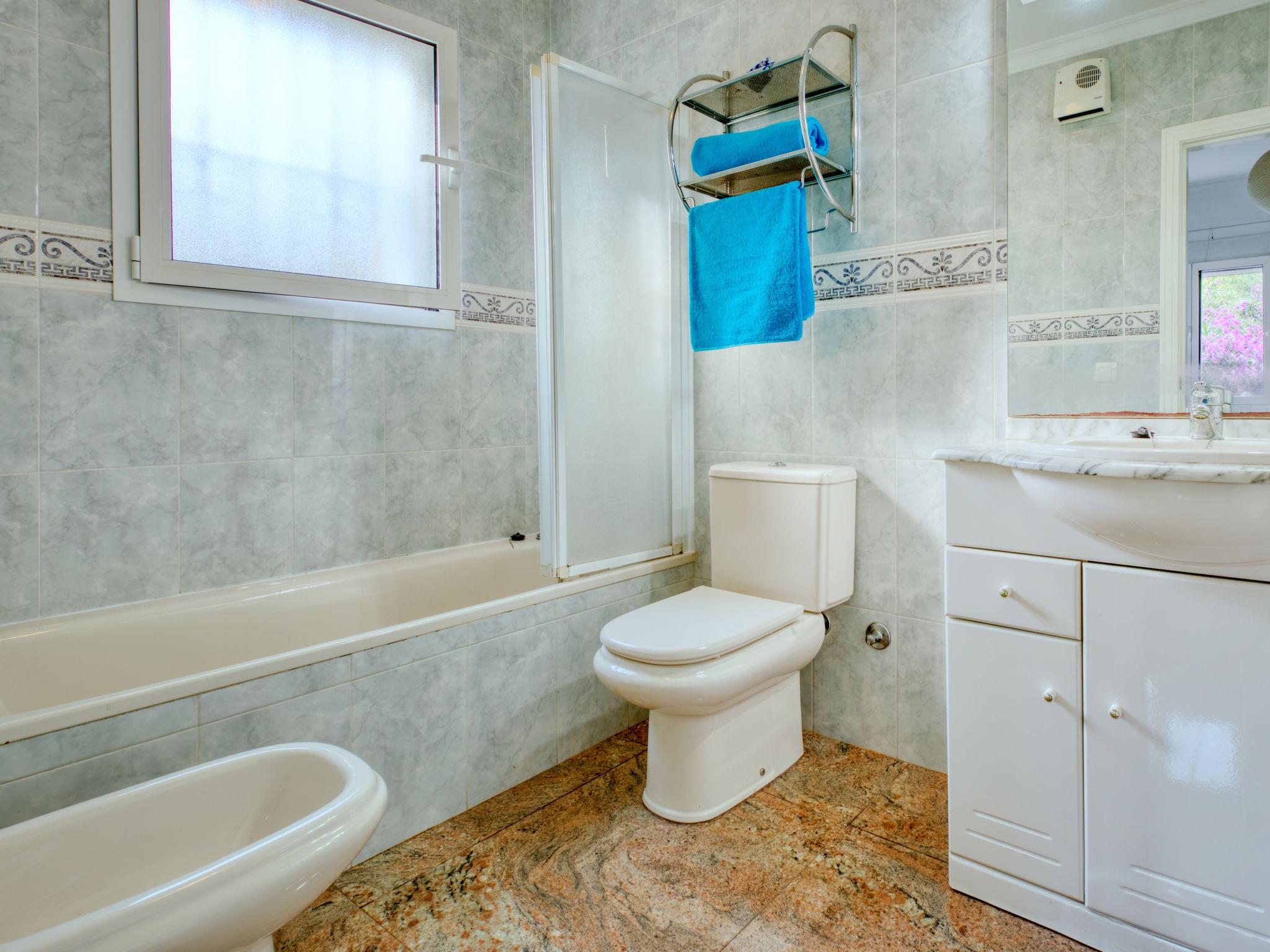 Beautiful villa "Eucaliptus", built in 2001. In the district of Tosalet, 3.8 km from the sea. Private: garden 780 m2 (fenced) with wildlife garden and flowers, swimming pool (4 x 8 m, seasonal availability: 01.Jan. - 31.Dec.) with internal staircase. Outdoor shower. In the house: air conditioning. Stepped path to the house. Public parking on the road. Shop 3.8 km, supermarket 2 km, bus stop 4 km, sandy beach "Arenal" 3.8 km. The owner does not accept any youth groups. Neighbourhood highly sensitive to noise. Quietness and good behaviour expected.