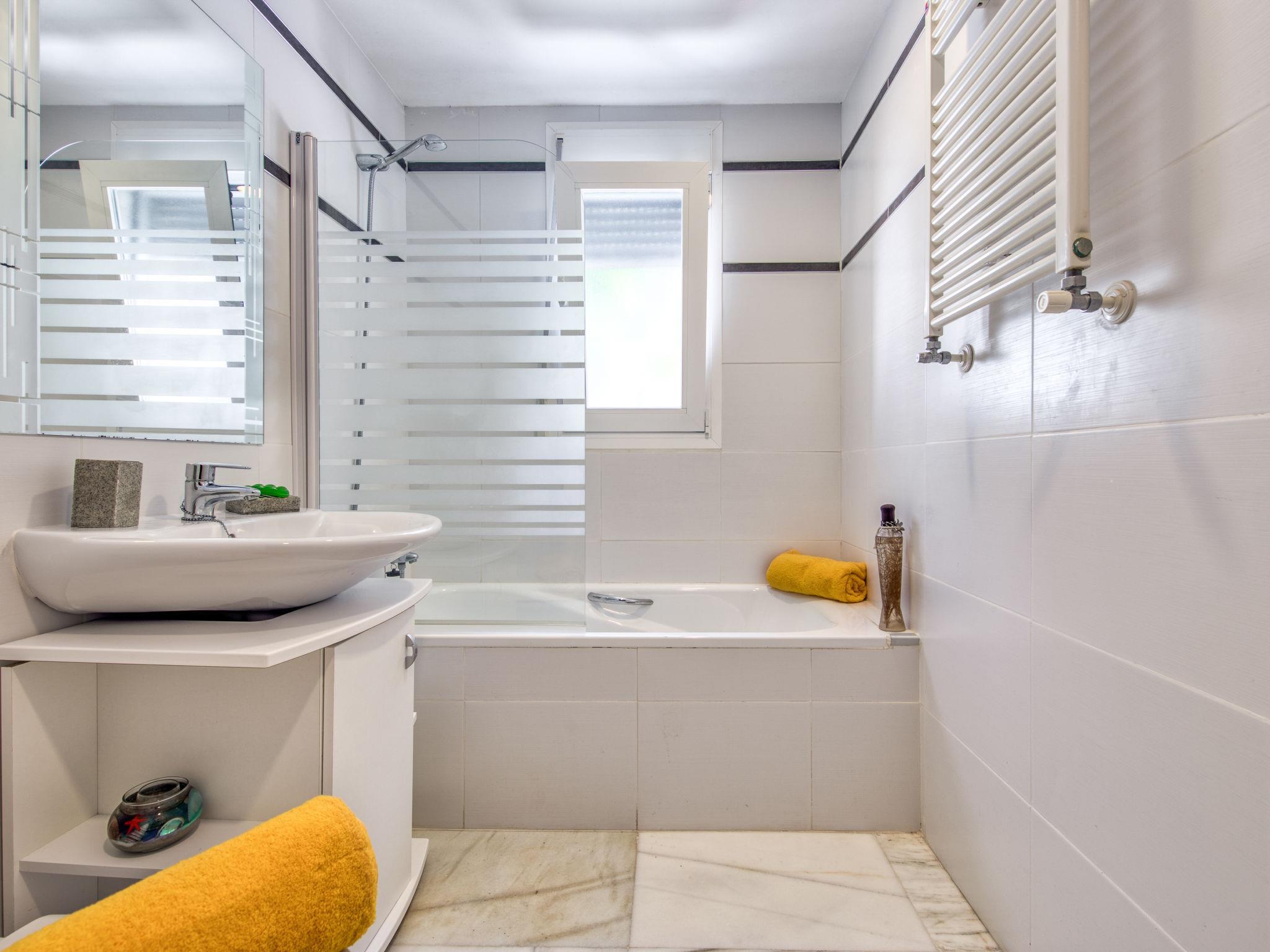4-room villa 180 m2 on 2 levels. Spacious, comfortable and tasteful furnishings: living/dining room with TV and air conditioning. Exit to the terrace. Kitchen-/living room (oven, dishwasher, 4 ceramic glass hob hotplates, microwave, freezer, electric coffee machine) with air conditioning. Exit to the terrace. Sep. WC. On the lower ground floor: 1 room with 1 french bed (150 cm, length 200 cm), bath/shower/WC and air conditioning. Exit to the patio. 2 rooms, each room with 2 beds (90 cm, length 190 cm). Bath/WC. 2 terraces. Terrace furniture, barbecue (portable), deck chairs (4). Facilities: washing machine. Internet (WiFi, free). Parking (fenced 2 cars) at the house. Please note: non-smoking house. 1 small pet/ dog allowed. AT-471491-A // Reg. Nr.: ESFCTU00000307100021536400000000000000000AT-471491-A8