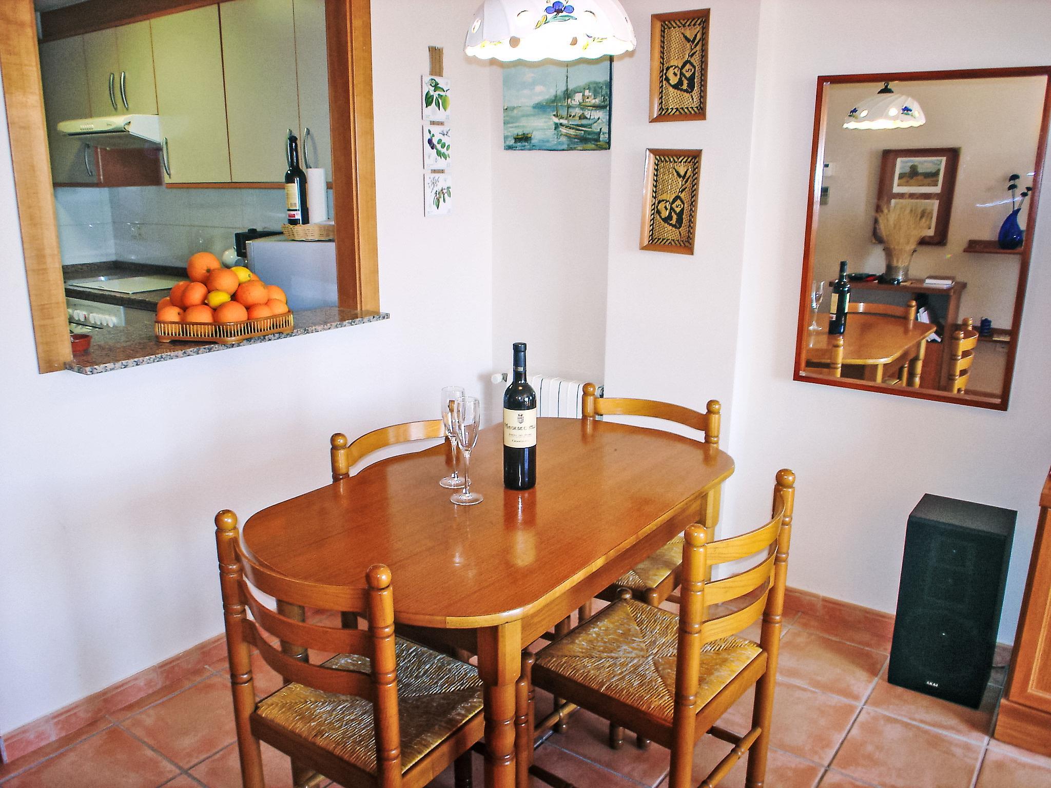 2-room apartment 50 m2 on 2nd floor. Beautiful furnishings: living/dining room with 1 sofabed, digital TV, video and hi-fi system. Exit to the balcony. 1 room with 1 french bed (150 cm, length 190 cm). Exit to the balcony. Open kitchen (oven, microwave, freezer, electric coffee machine) with air conditioning. Shower/bidet/WC. No heating option. Balcony 15 m2. Terrace furniture. View of the swimming pool. Facilities: washing machine. Internet (WiFi, free). Garage. Please note: maximum 1 pet/ dog allowed. TV only ES. AT-424725-A // Reg. Nr.: ESFCTU00000307100045437400000000000000000AT-424725-A2