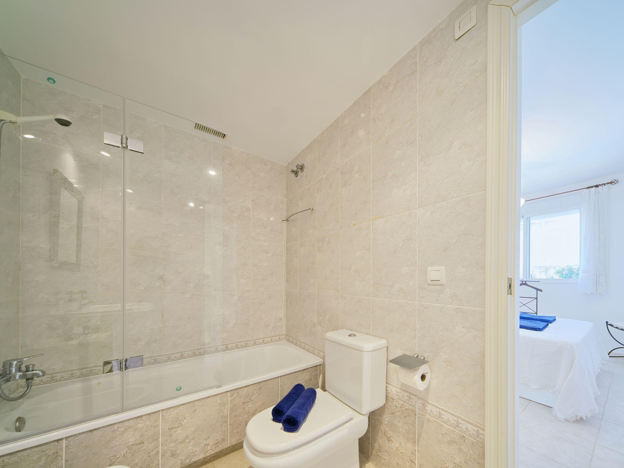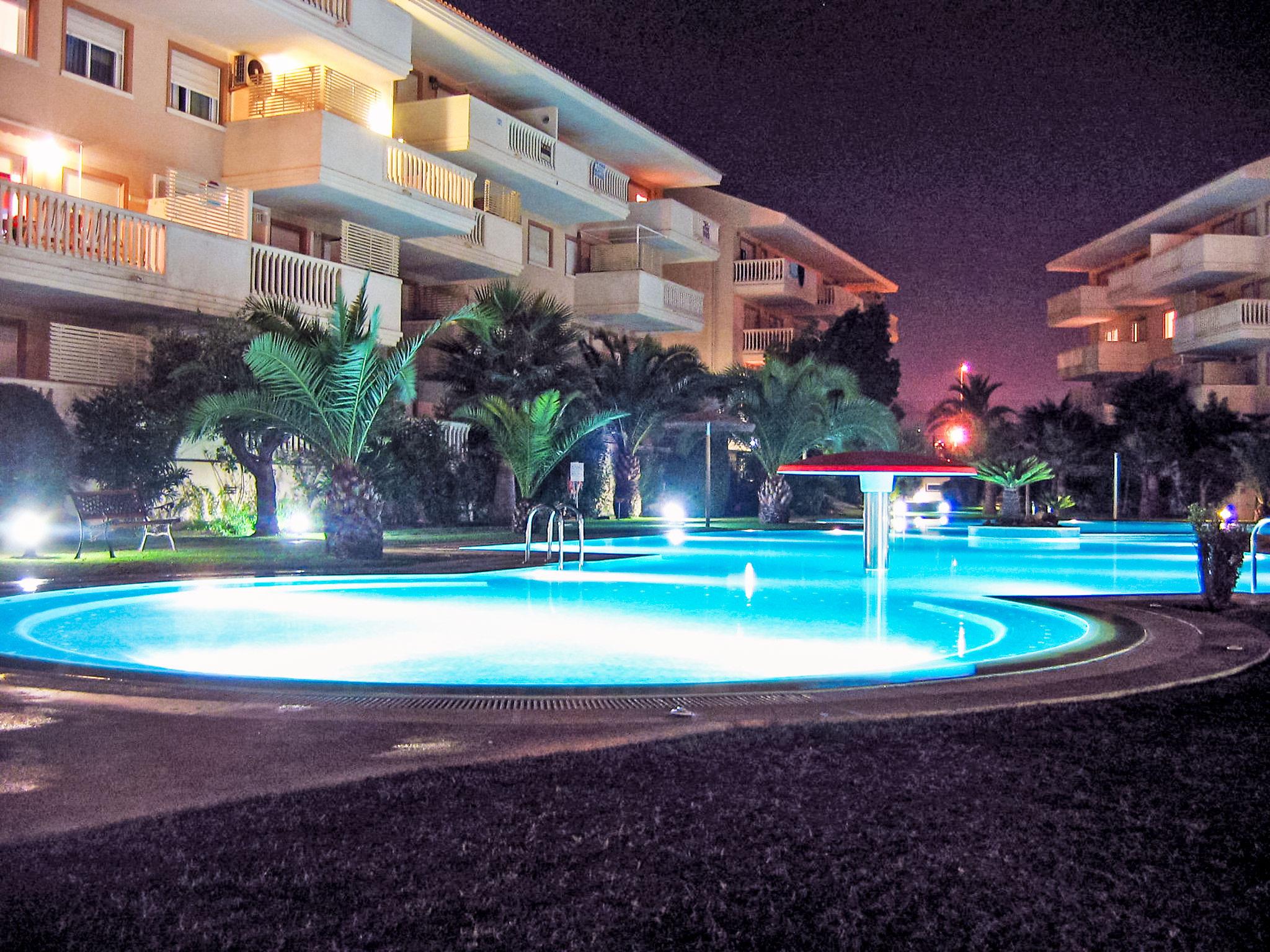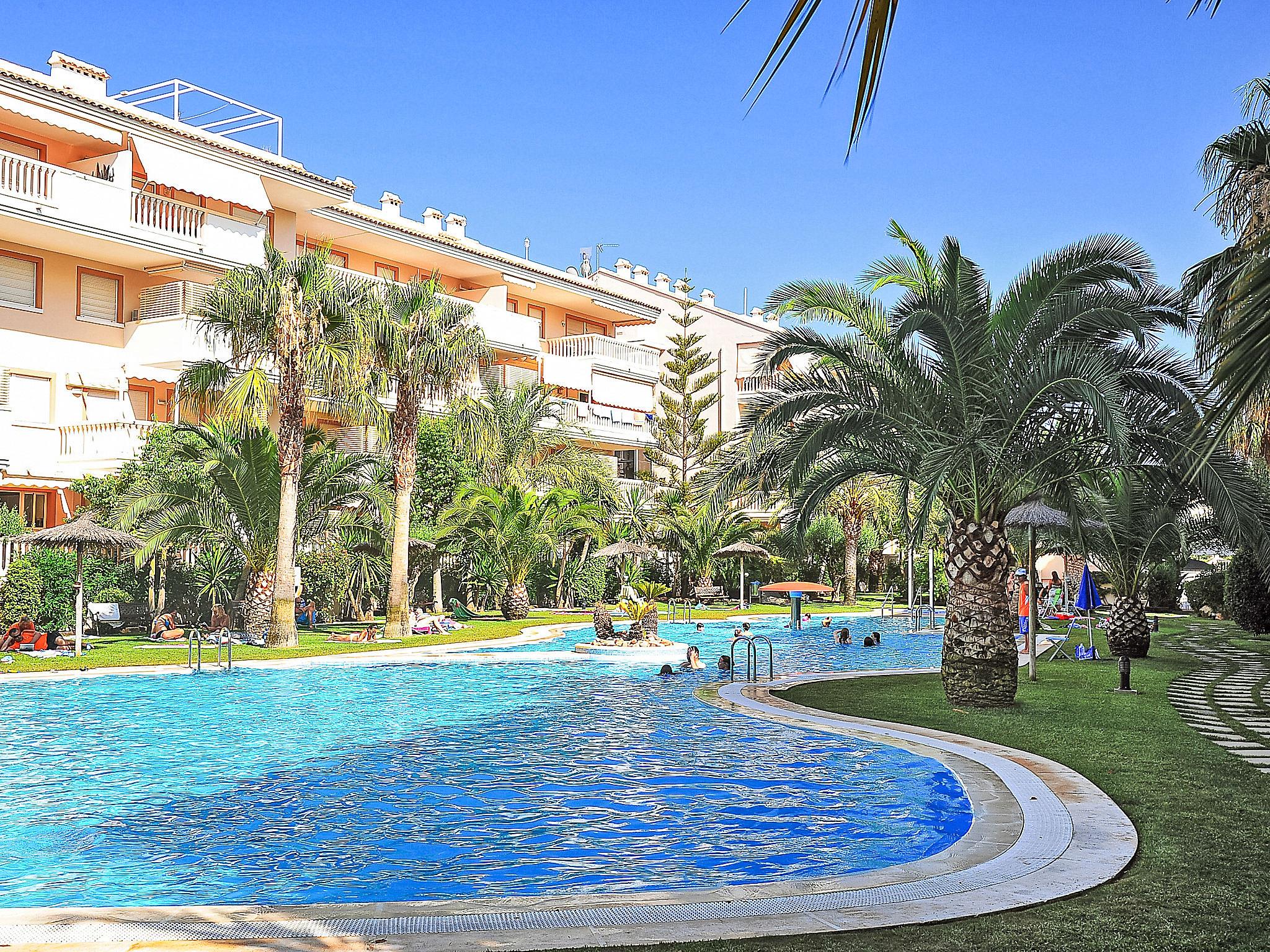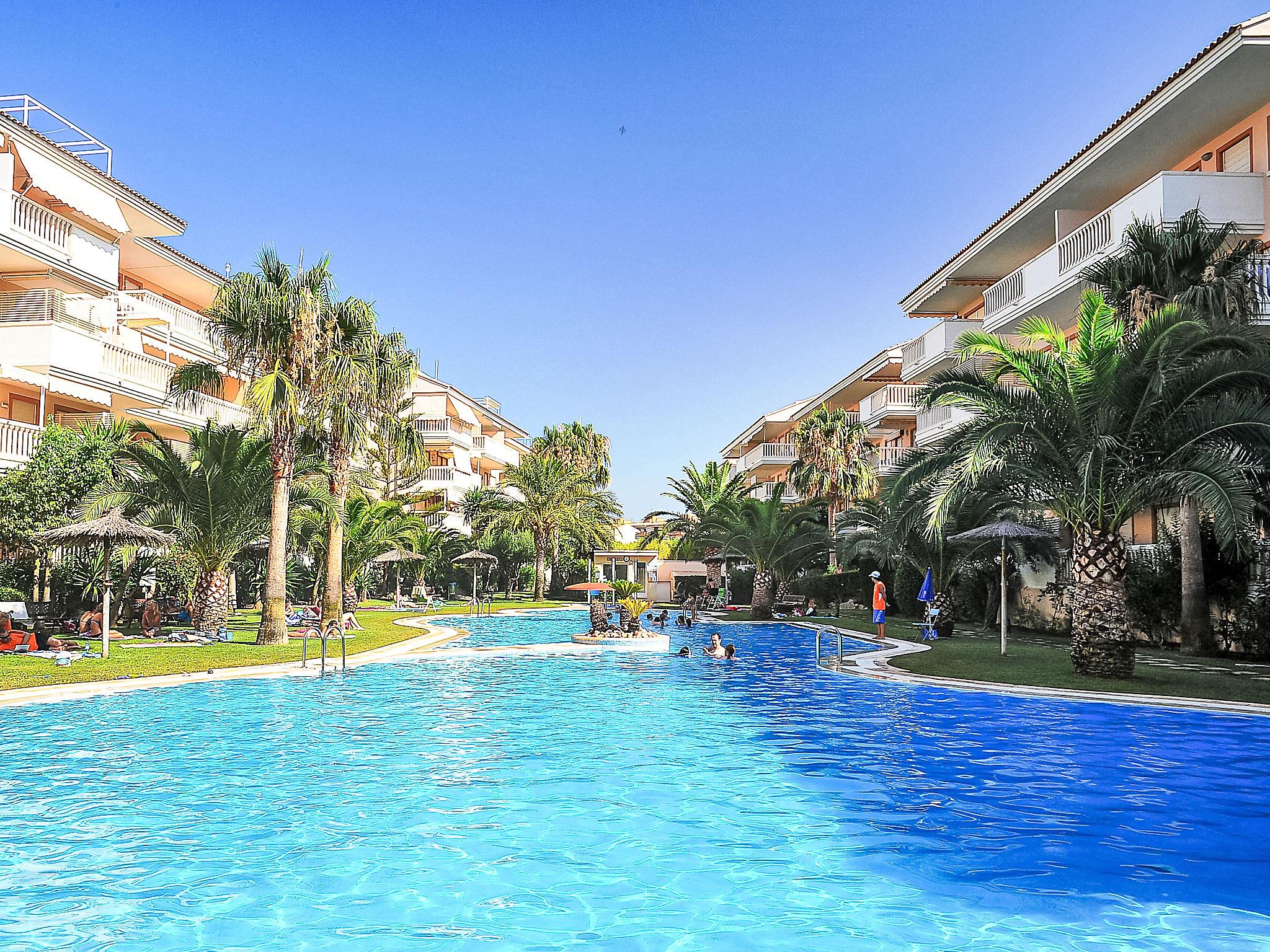 "Nou Fontana", 3-room apartment 60 m2. Comfortable and stylish furnishings: living/dining room with digital TV, air conditioning and forced-air heating. Exit to the terrace. 1 room with 1 french bed (150 cm, length 200 cm), bath/bidet/WC, air conditioning and forced-air heating. 1 room with 1 x 2 bunk beds (80 cm, length 190 cm). Open kitchen (dishwasher, 4 ceramic glass hob hotplates, toaster, kettle, microwave, freezer, electric coffee machine). Shower/WC. Large terrace 12 m2. Terrace furniture. View of the swimming pool and the garden. Facilities: washing machine, iron, hair dryer. Internet (WiFi, free). Parking space n 29 (roofed, fenced 1 car). Please note: TV only ES. VT-512940-A // Reg. Nr.: ESFCTU00000307100048420300000000000000000VT-512940-A4