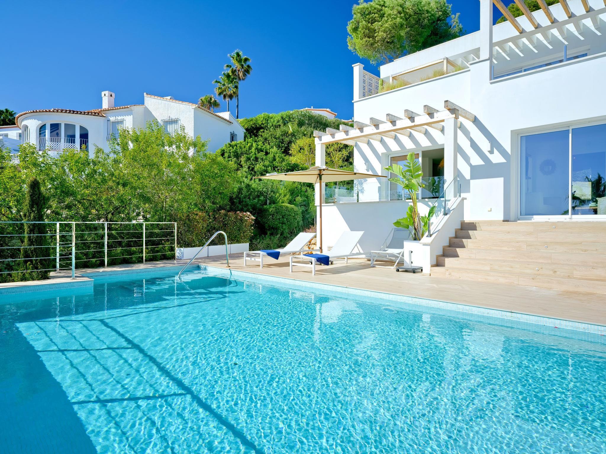 "Villa Ola", 5-room villa 300 m2 on 3 levels. Spacious and bright, very beautiful and stylish furnishings: living/dining room with air conditioning. Exit to the terrace, to the swimming pool. 1 room with Dressing room with 1 double bed (2 x 90 cm, length 200 cm), shower/WC and air conditioning. Exit to the terrace. 1 room with 1 double bed (2 x 90 cm, length 200 cm), shower/WC and air conditioning. Exit to the terrace. Large, open kitchen (oven, dishwasher, 4 induction hot plates, toaster, kettle, microwave, freezer, electric coffee machine). Underfloor heating. On the lower ground floor: (exterior staircase), 1 room with 1 double bed (2 x 90 cm, length 200 cm), shower/WC and air conditioning. Exit to the terrace. Underfloor heating. Upper floor: 1 room with 1 double bed (2 x 90 cm, length 200 cm), bath/shower/WC and air conditioning. Exit to the terrace. Underfloor heating. 2 large terraces. Terrace furniture, barbecue, deck chairs (4), covered balcony, sitting area. Marvellous panoramic view of the sea, the mountains, the valley and the garden. Facilities: washing machine, dryer, iron, children's high chair, baby cot, hair dryer. Internet (WiFi, free). Parking. Please note: non-smoking house. VT-474632-A // Reg. Nr.: ESFCTU00000307100025364900000000000000000VT-474632-A7