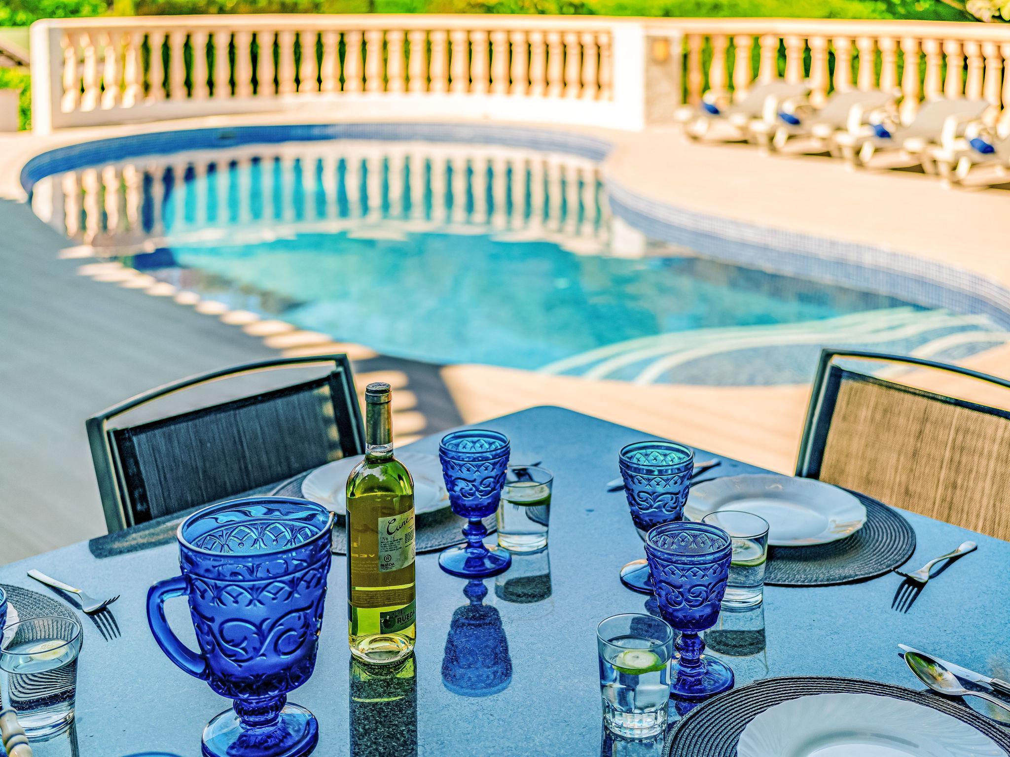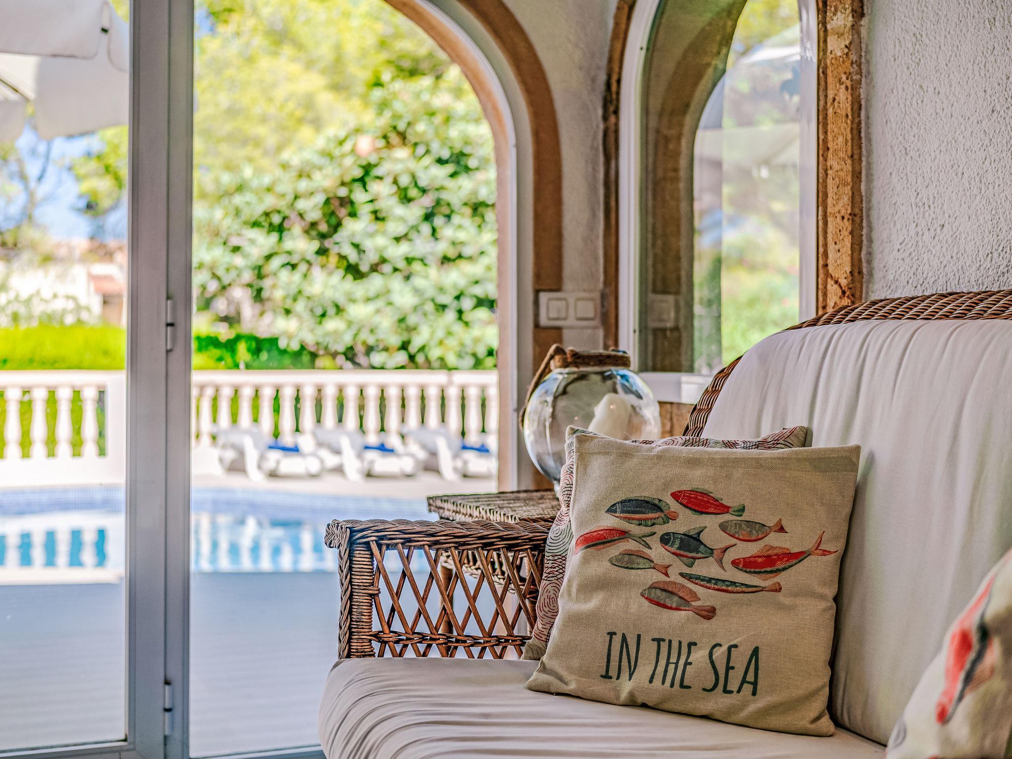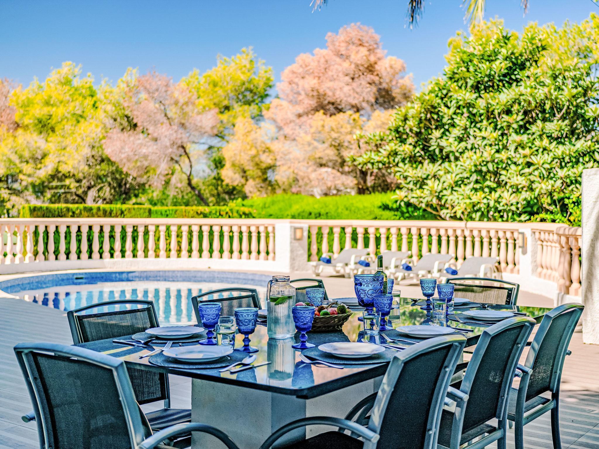 Very large, beautiful house "La Selva", 2 storeys. In the district of Balcón al Mar, in a quiet, sunny position, 2.9 km from the sea, 2.9 km from the beach. Private: terraced garden with wildlife garden, swimming pool kidney shaped (8 x 4 m, depth 40 - 210 cm, seasonal availability: 01.Jan. - 31.Dec.) with internal staircase. Outdoor shower, patio, pergola, garden furniture, barbecue. Stepped path (27 steps) to the house. Parking on the premises, public parking on the road. Supermarket, restaurant 400 m, bus stop "Toscamar" 3.8 km, sandy beach "Arenal" 5.8 km, shingle beach "Portitxol" 2.9 km. Tennis 1 km. The owner does not accept any youth groups.