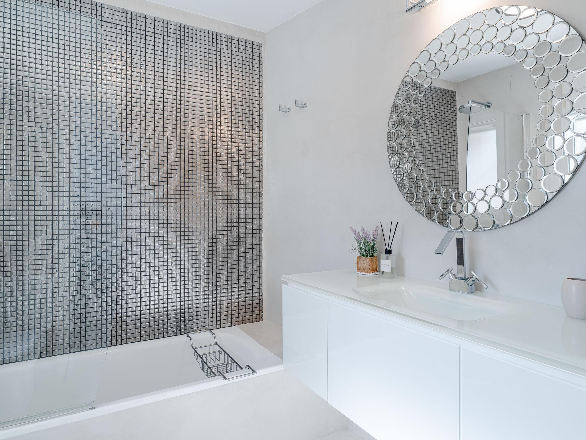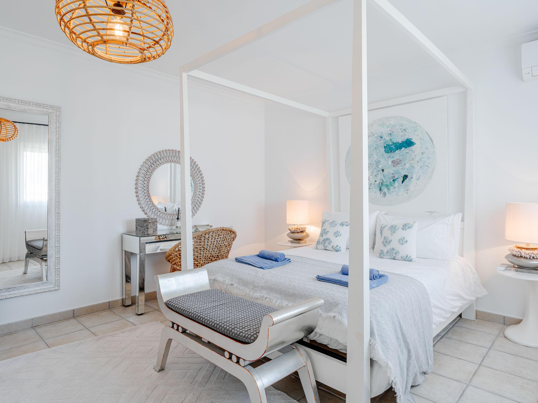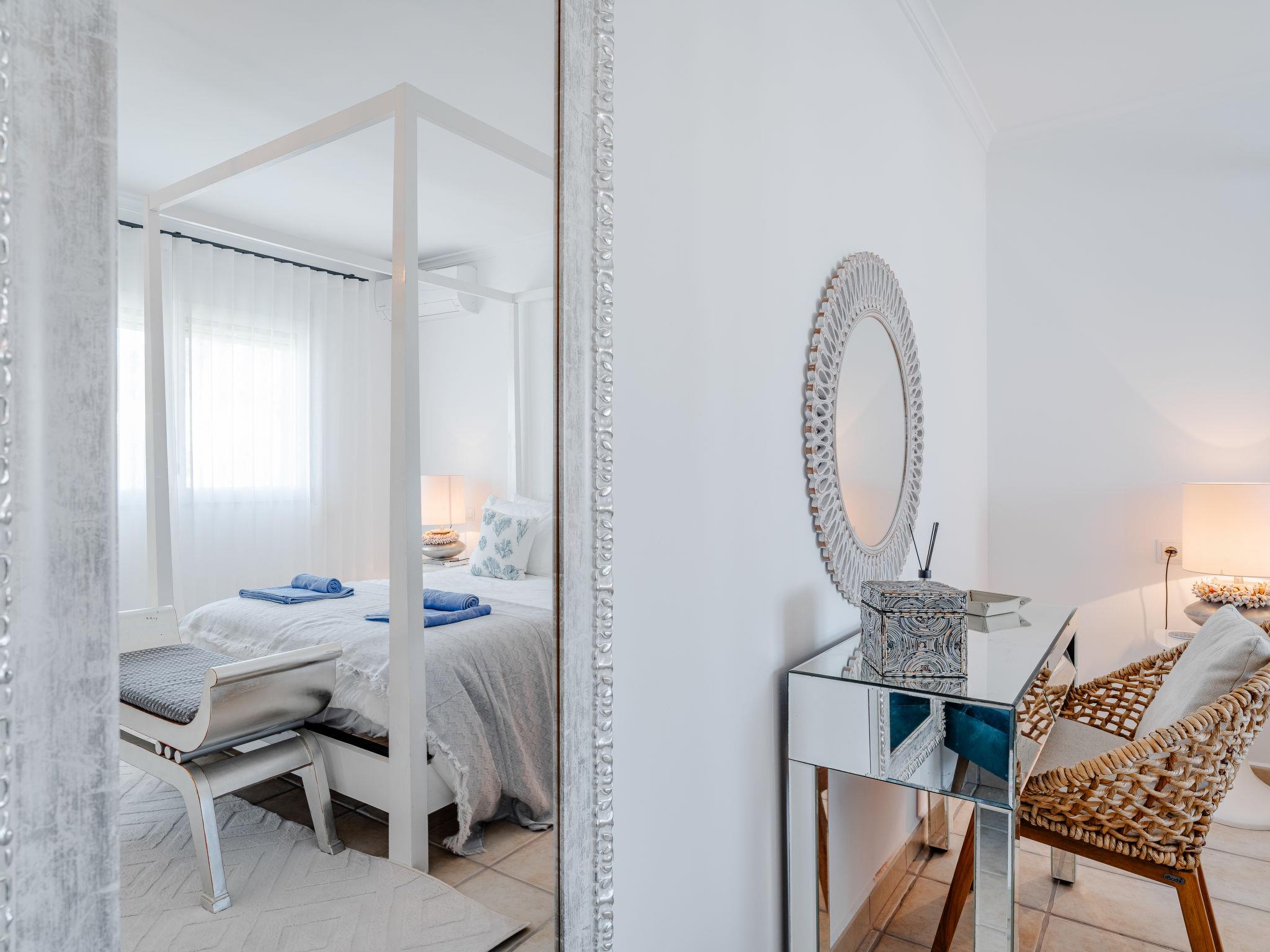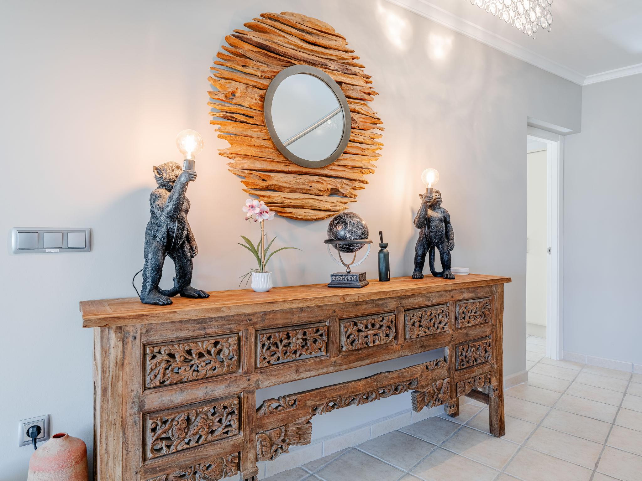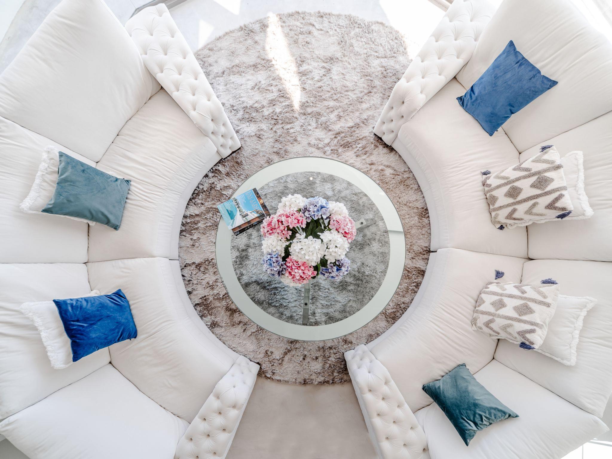 Very large, modern, very luxurious villa "Tintorera Mar Azul", 3 storeys, built in 2021. In the district of Mar Azul - Portitchol, in a quiet, sunny position, 900 m from the sea, 900 m from the beach, in a cul-de-sac. Private: large, beautiful, well-kept terraced garden with wildlife garden and trees, swimming pool kidney shaped, heated (9 x 4 m, depth 110 - 160 cm, seasonal availability: 01.Jan. - 31.Dec.) with internal staircase. Outdoor shower, pergola, terrace, garden furniture, barbecue house. In the house: central heating system, air conditioning, laundry, washing machine, tumble dryer. Parking (for 3 cars) on the premises. Shop 2.7 km, supermarket 3.7 km, restaurant, café 950 m, bus stop "Parada Toscamar" 3.2 km, sandy beach "El Arenal" 5 km, shingle beach "Cala Barraca o Portitxol" 950 m. Surf school 950 m, tennis 3.7 km. Please note: not suitable for small children. The owner does not accept any youth groups.
