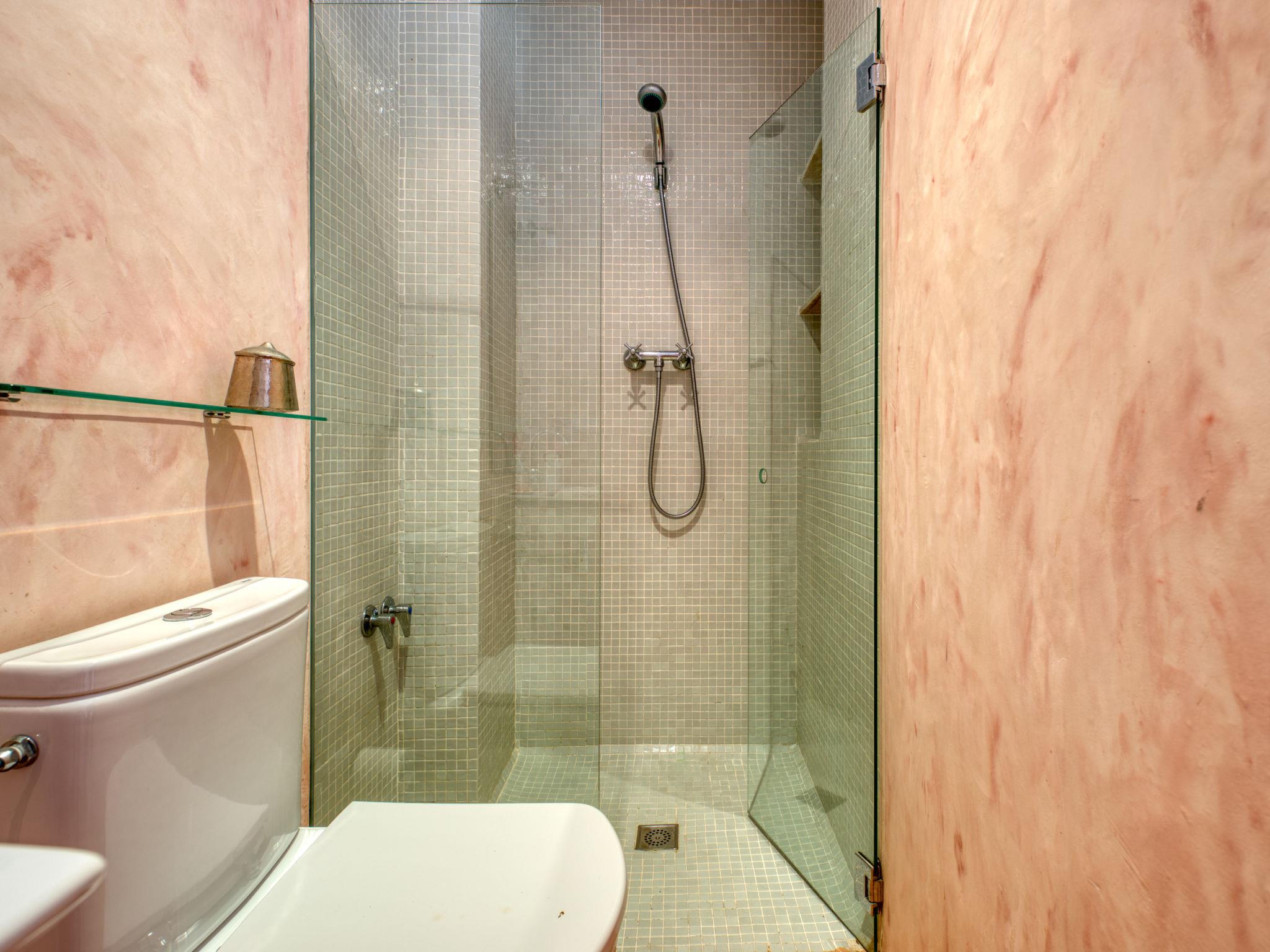"Vista Halcon", 3-room terraced house 120 m2 on 3 levels. Beautiful furnishings: living/dining room. Exit to the terrace. Open kitchen (3 ceramic glass hob hotplates, microwave, electric coffee machine). Shower/WC. No heating option. On the lower ground floor: 1 room with 1 french bed (160 cm, length 190 cm). Walk-through room with 1 bed (90 cm, length 200 cm). Shower/WC, sep. WC. Large terrace. Terrace furniture. Marvellous view of the sea and the valley. Facilities: washing machine, iron, hair dryer. Internet (WiFi, free). En planta Inferior -1: 1 dorm con 1 cama-nido (2 pers. 2x90cm 190 cm) 1 Baño Ducha. VT-487019-A // Reg. Nr.: ESFCTU00000307100027109400000000000000000VT-487019-A4