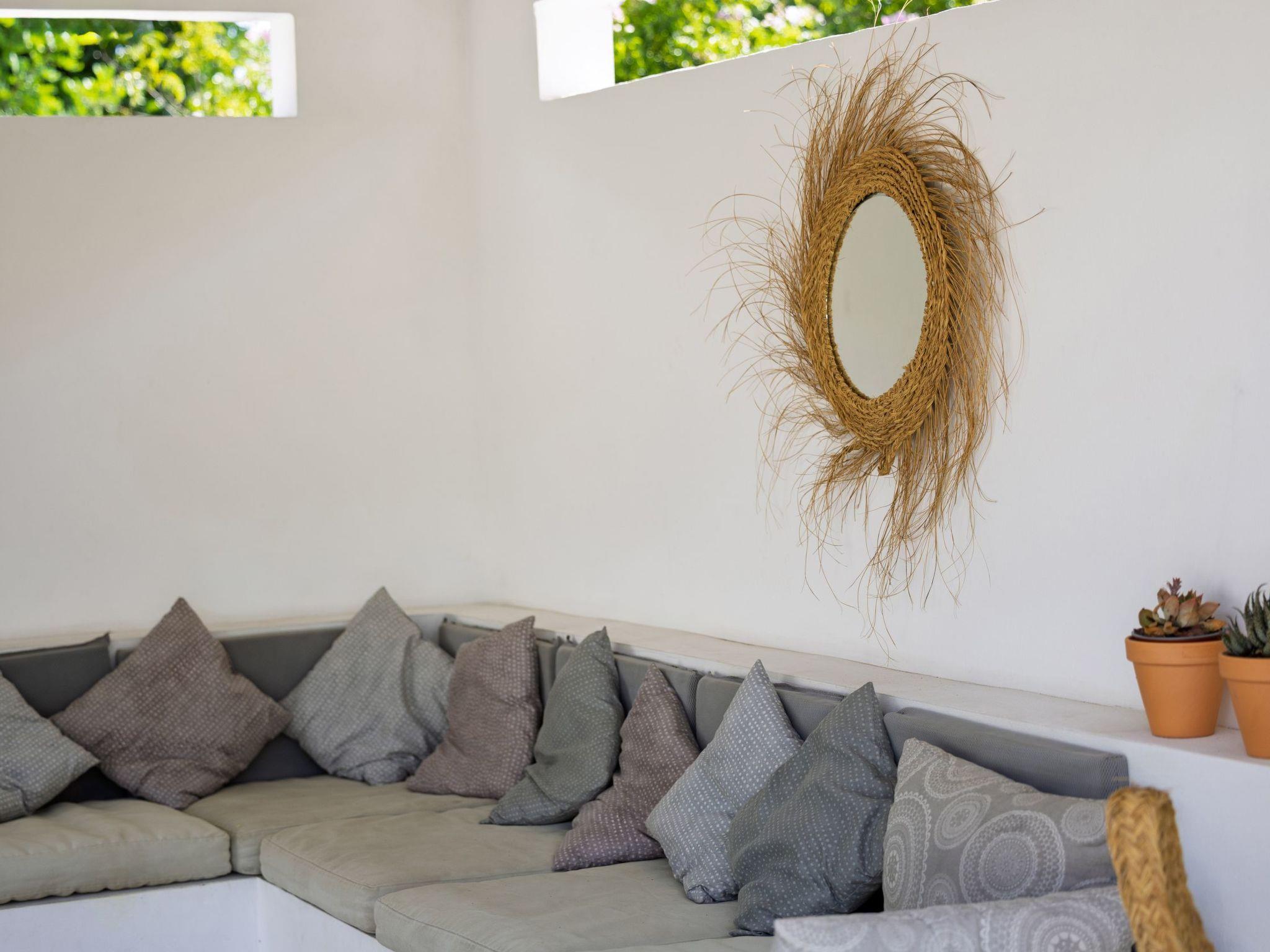 The villa features a light and airy open plan living space with kitchen, dining and office space. There are 6 bedrooms, 3 x double rooms, 2 x twin rooms with 2 x single beds in each and 1 x single room with 1 x single bed. The property features two full bathrooms. one has a bath with shower and the other has a walk in shower. The property has full air con throughout. The living space has double doors that open onto a large shaded Naya with dining table and lounge seating and overlooks the pool and garden.