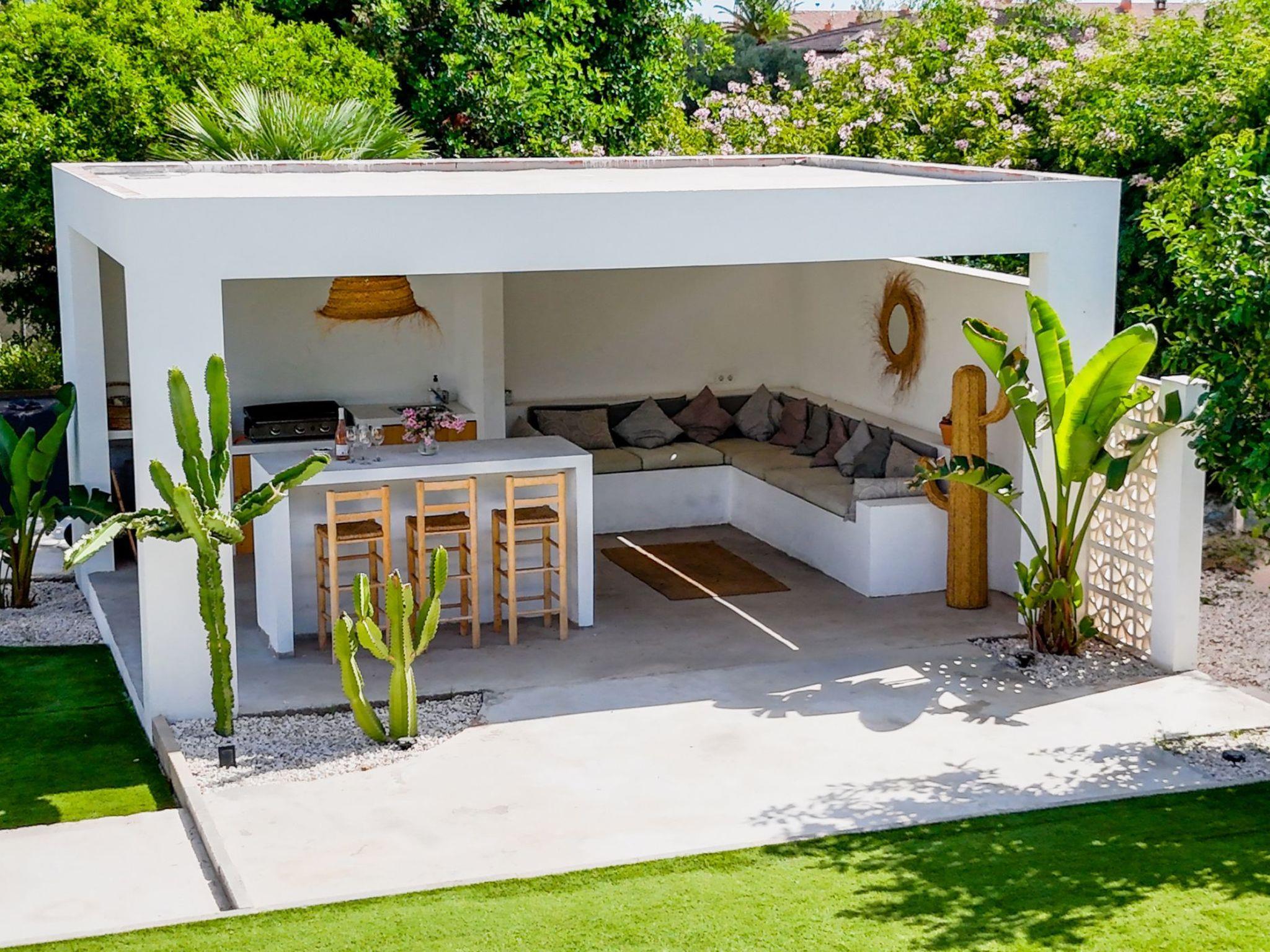 Our favourite feature is the summer house which overlooks the pool and garden, providing shade, lounge and bar seating and an outdoor kitchen BBQ area with gas plancha.