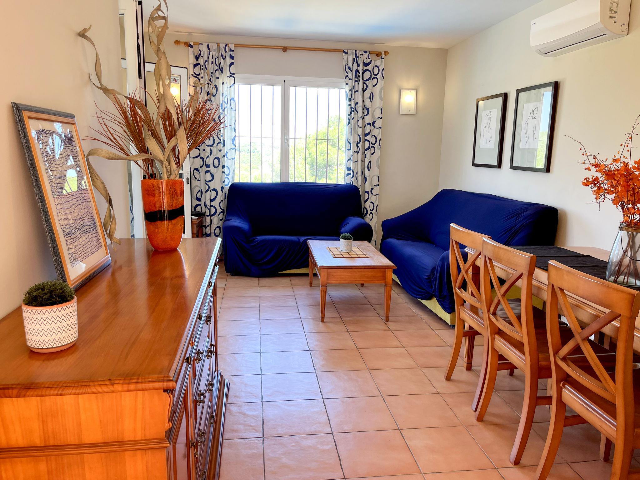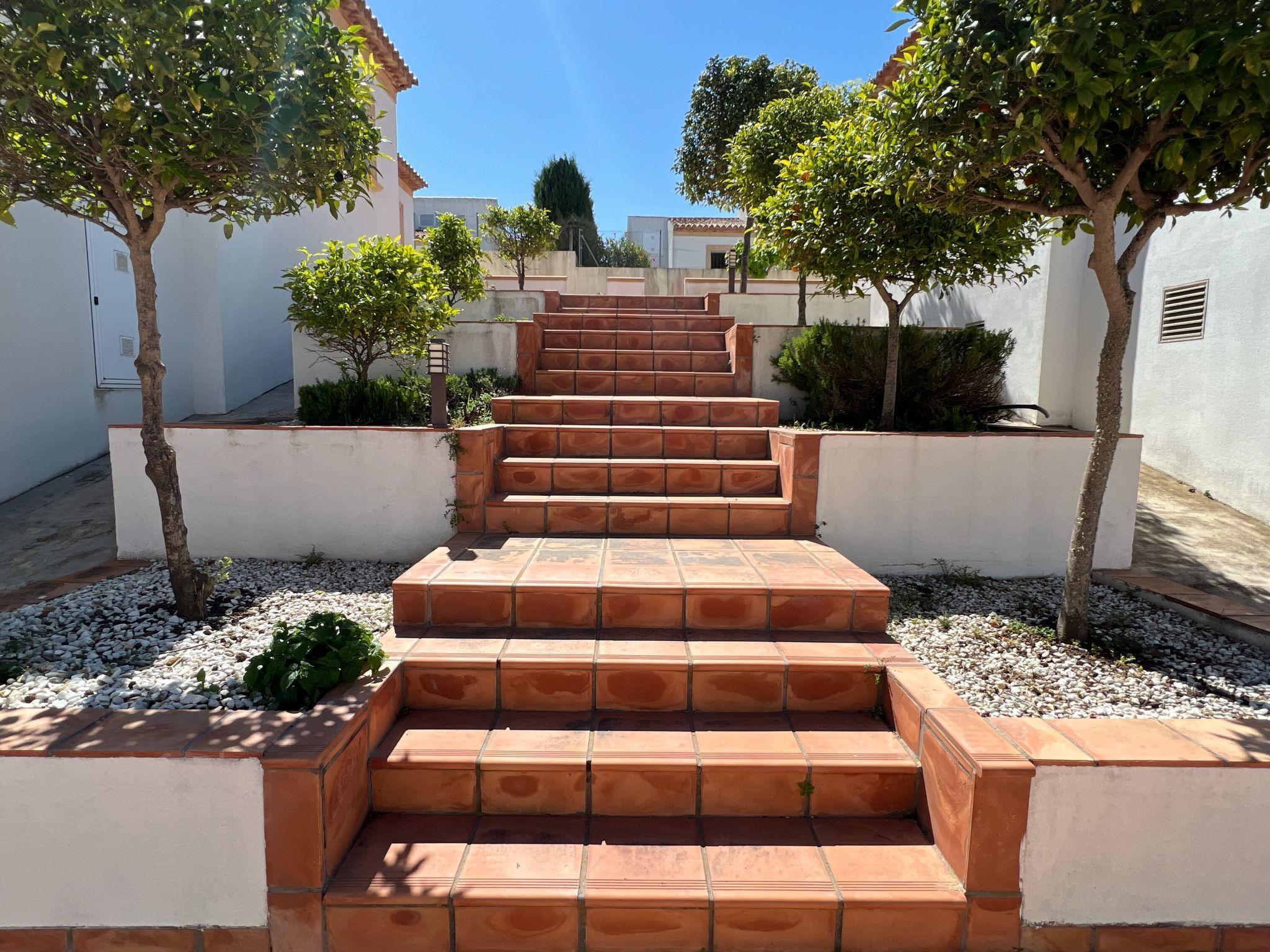 House. 24 houses in the residence. In the district of Monte Javea 5 km from the centre of Jávea-Arenal, on a slope, 3 km from the sea. Private: property (fenced) with wildlife garden and trees, swimming pool (8 x 4 m, depth 120 - 220 cm, seasonal availability: 01.Jan. - 31.Dec.). Public parking on the road. Shop 2.5 km, restaurant 1 km, bus stop "Calablanca" 3.6 km, sandy beach "Arenal" 5 km pebble beach "Granadella" 3 km. Tennis 1 km.