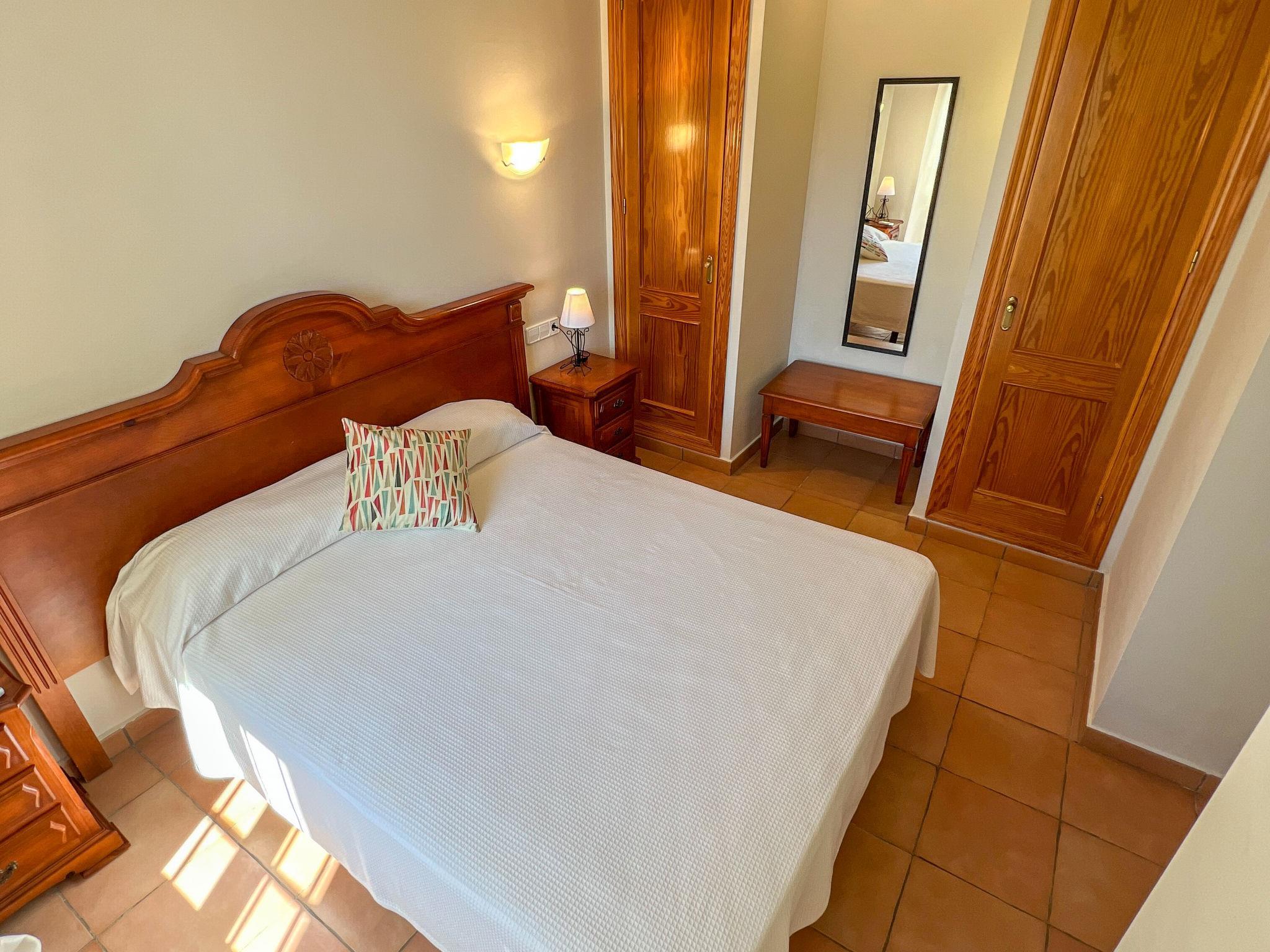 House. 24 houses in the residence. In the district of Monte Javea 5 km from the centre of Jávea-Arenal, on a slope, 3 km from the sea. Private: property (fenced) with wildlife garden and trees, swimming pool (8 x 4 m, depth 120 - 220 cm, seasonal availability: 01.Jan. - 31.Dec.). Public parking on the road. Shop 2.5 km, restaurant 1 km, bus stop "Calablanca" 3.6 km, sandy beach "Arenal" 5 km pebble beach "Granadella" 3 km. Tennis 1 km.