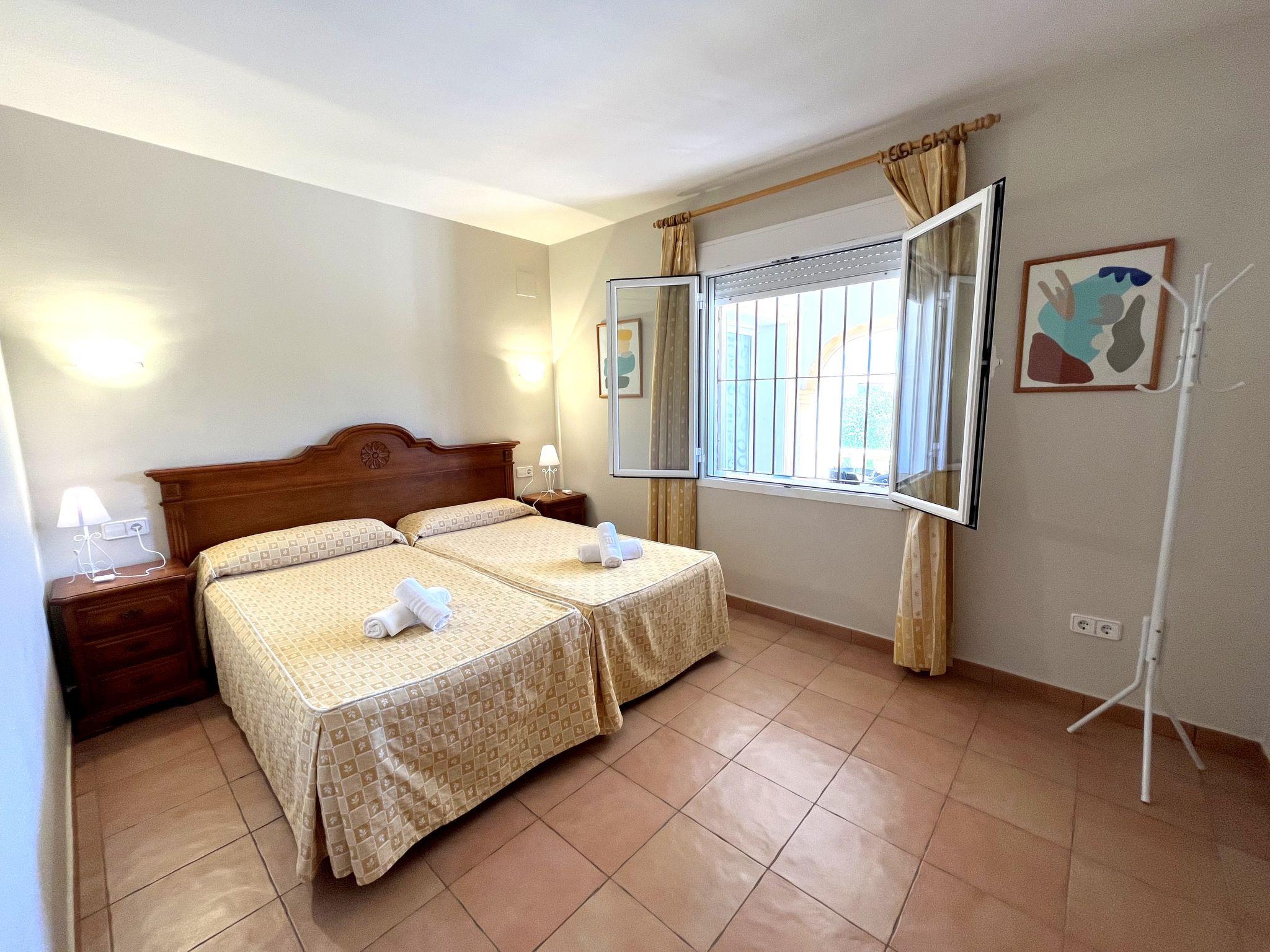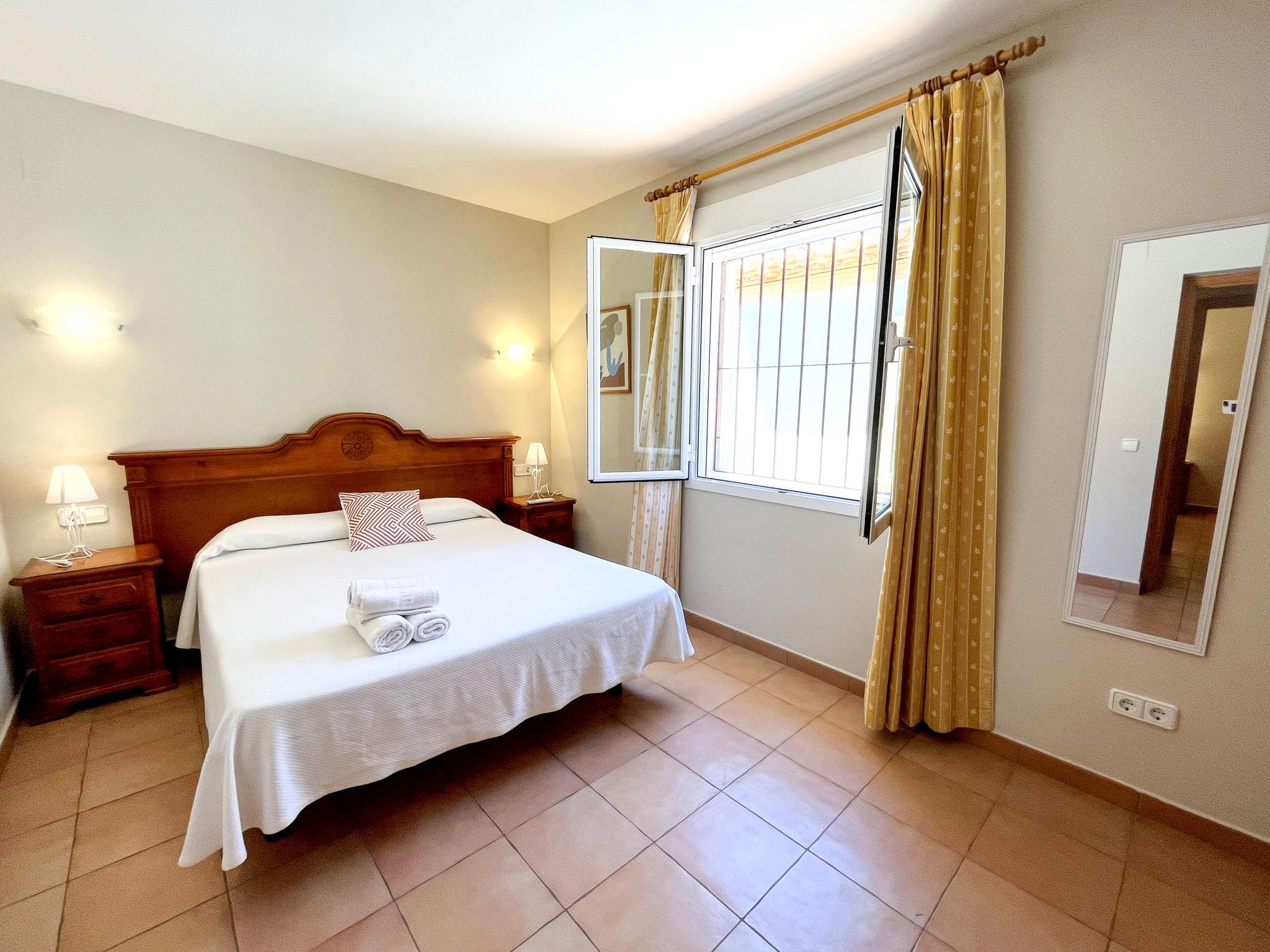 House. 24 houses in the residence. In the district of Monte Javea 5 km from the centre of Jávea-Arenal, on a slope, 3 km from the sea. Private: property (fenced) with wildlife garden and trees, swimming pool (8 x 4 m, depth 120 - 220 cm, seasonal availability: 01.Jan. - 31.Dec.). Public parking on the road. Shop 2.5 km, restaurant 1 km, bus stop "Calablanca" 3.6 km, sandy beach "Arenal" 5 km pebble beach "Granadella" 3 km. Tennis 1 km.